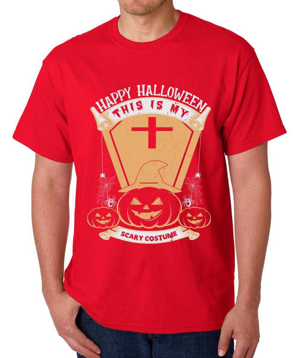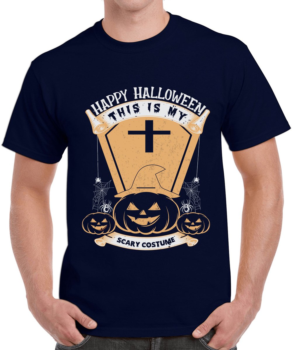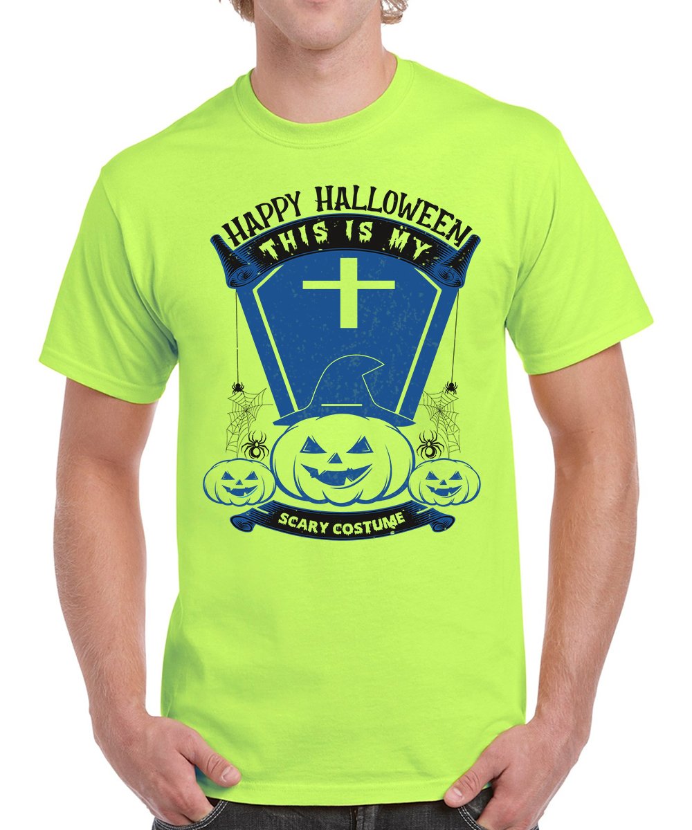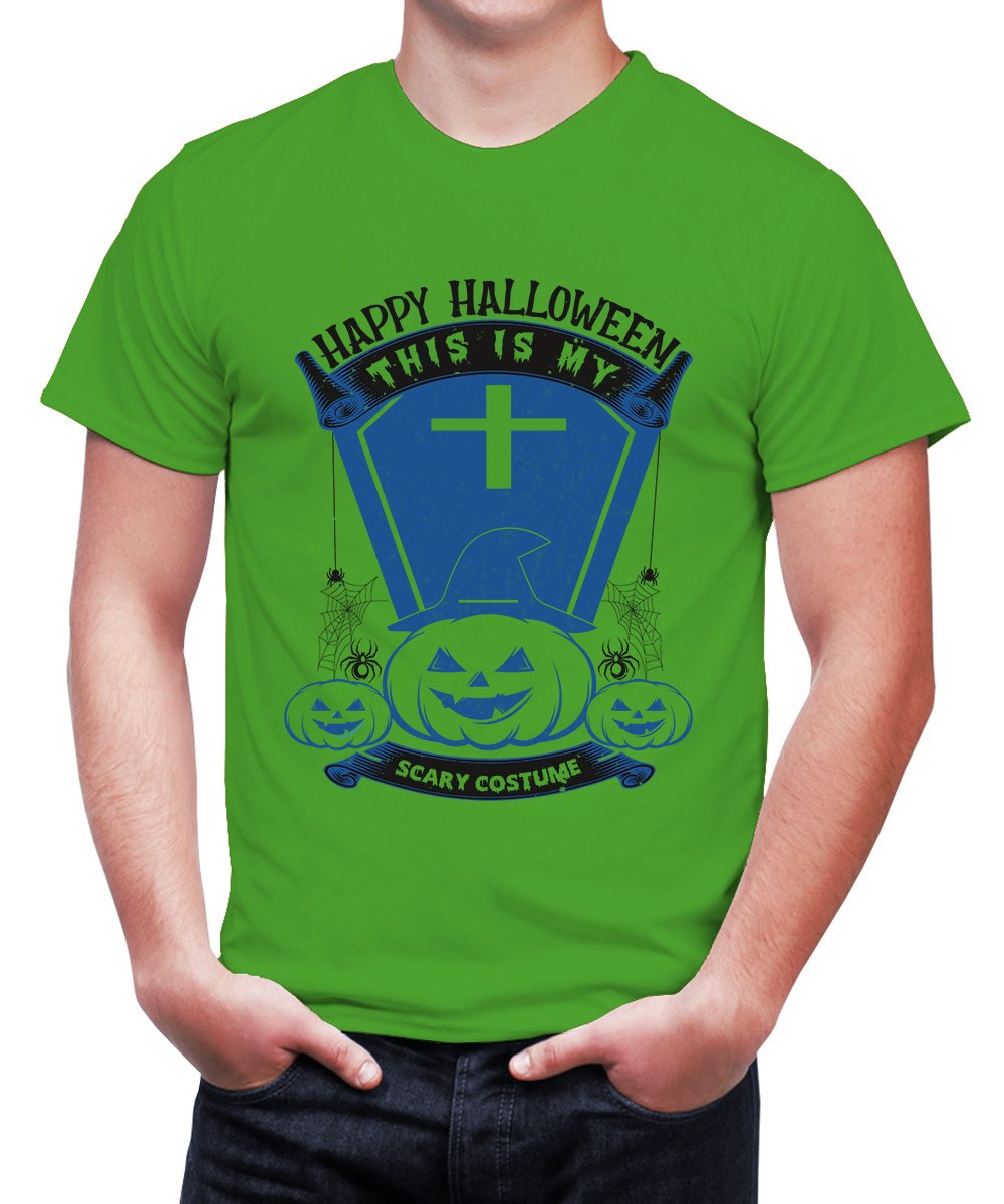 Caseria Men's Round Neck Cotton Half Sleeved T-Shirt With Printed Graphics - Happy My Scary