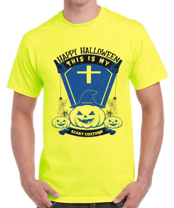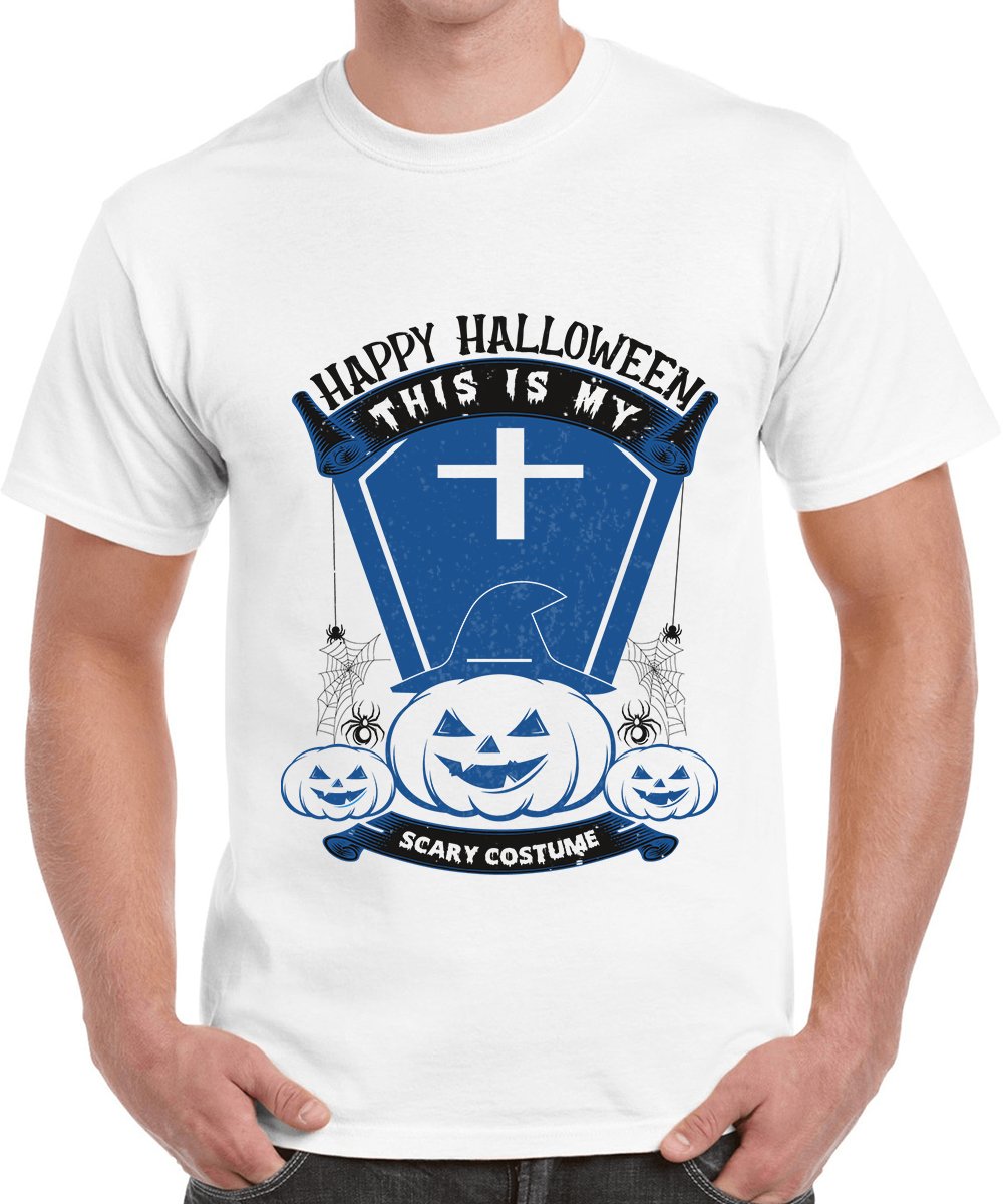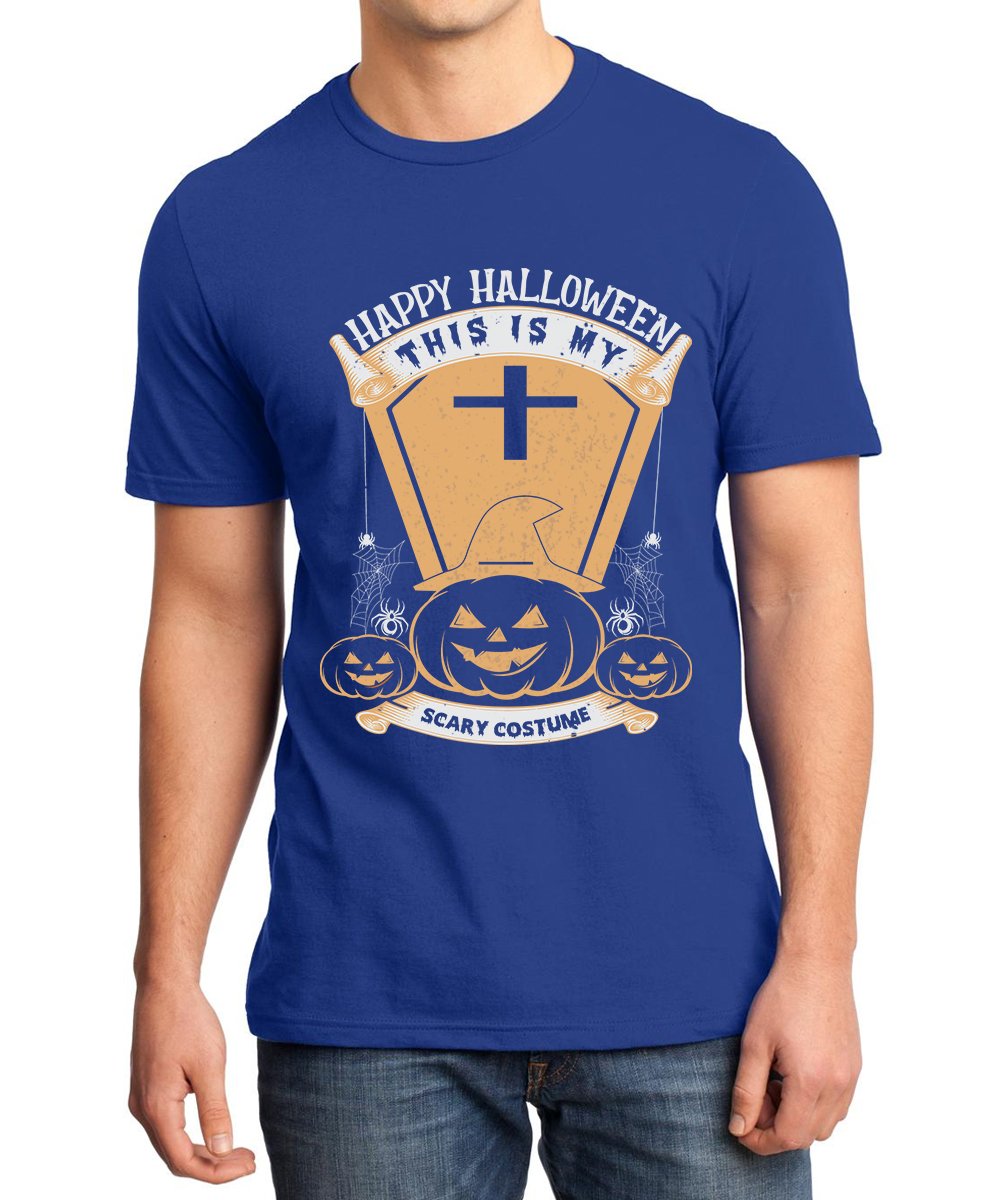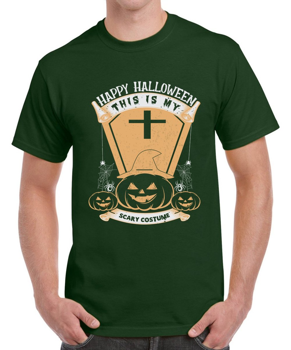 Caseria Men's Round Neck Cotton Half Sleeved T-Shirt With Printed Graphics - Happy My Scary