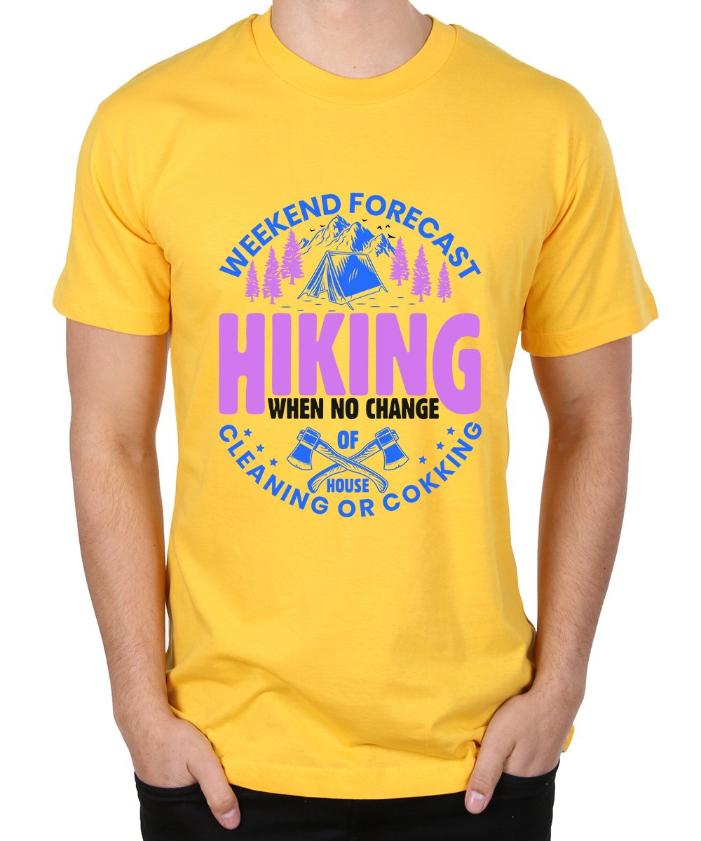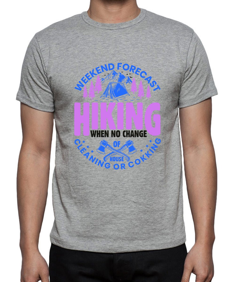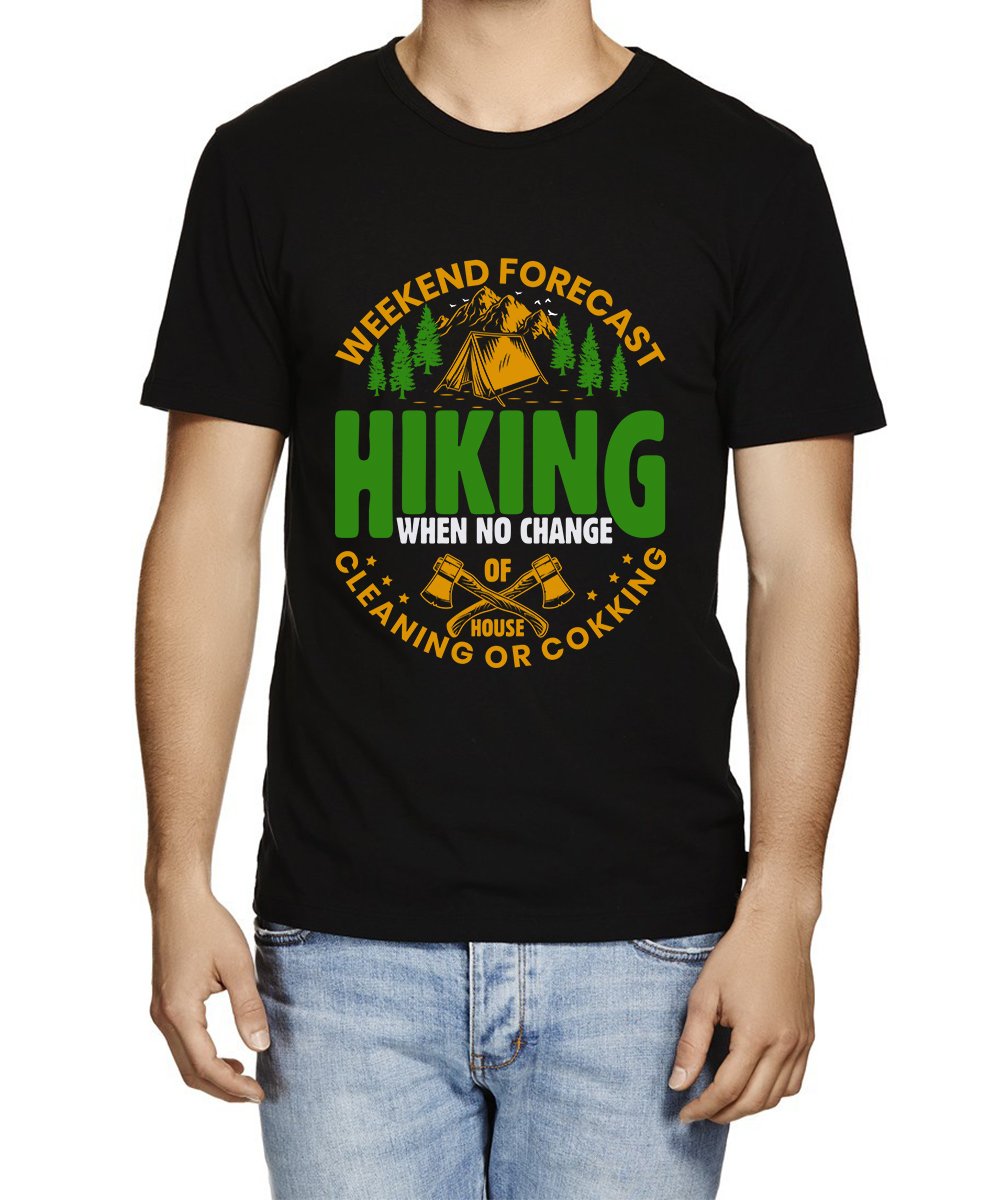 Caseria Men's Round Neck Cotton Half Sleeved T-Shirt With Printed Graphics - Hiking When No