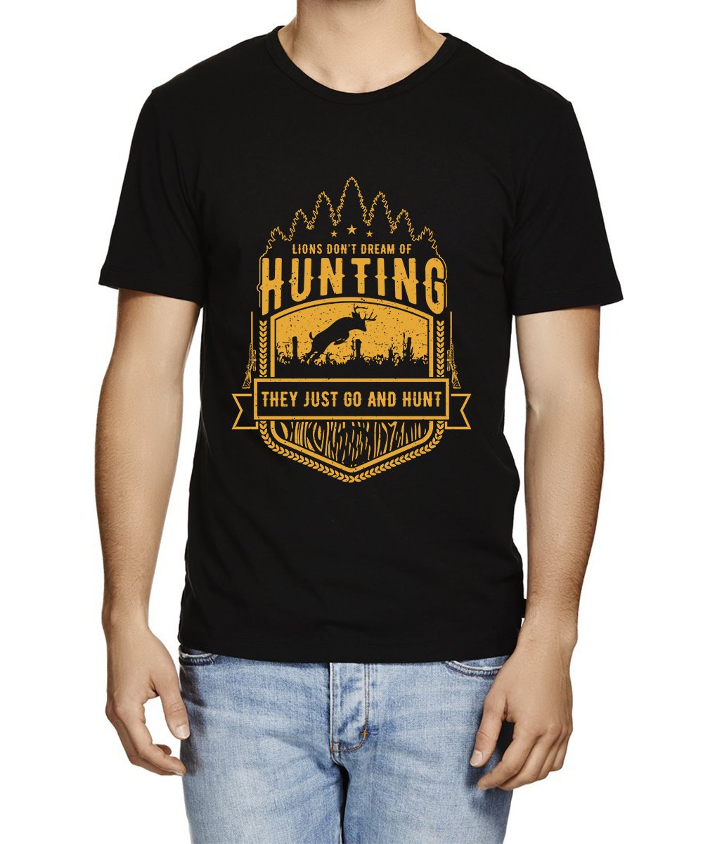 Caseria Men's Round Neck Cotton Half Sleeved T-Shirt With Printed Graphics - Hunting Hunt