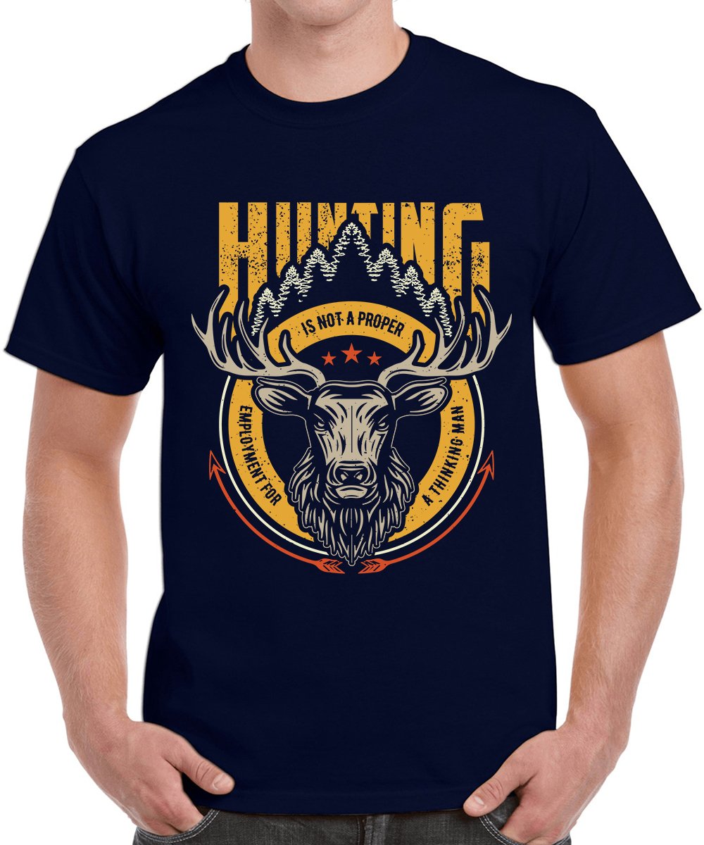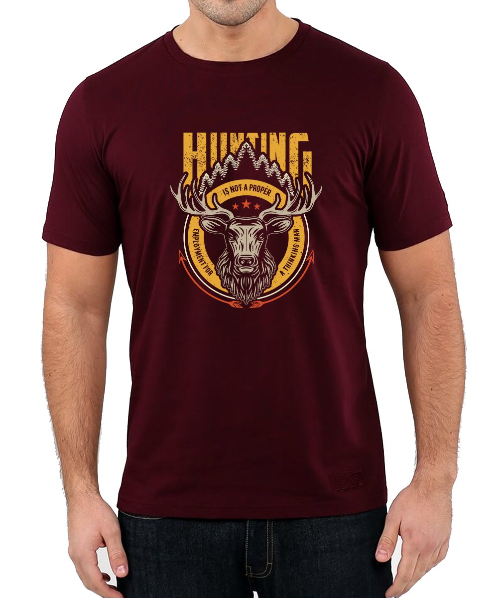 Caseria Men's Round Neck Cotton Half Sleeved T-Shirt With Printed Graphics - Hunting Not Proper
