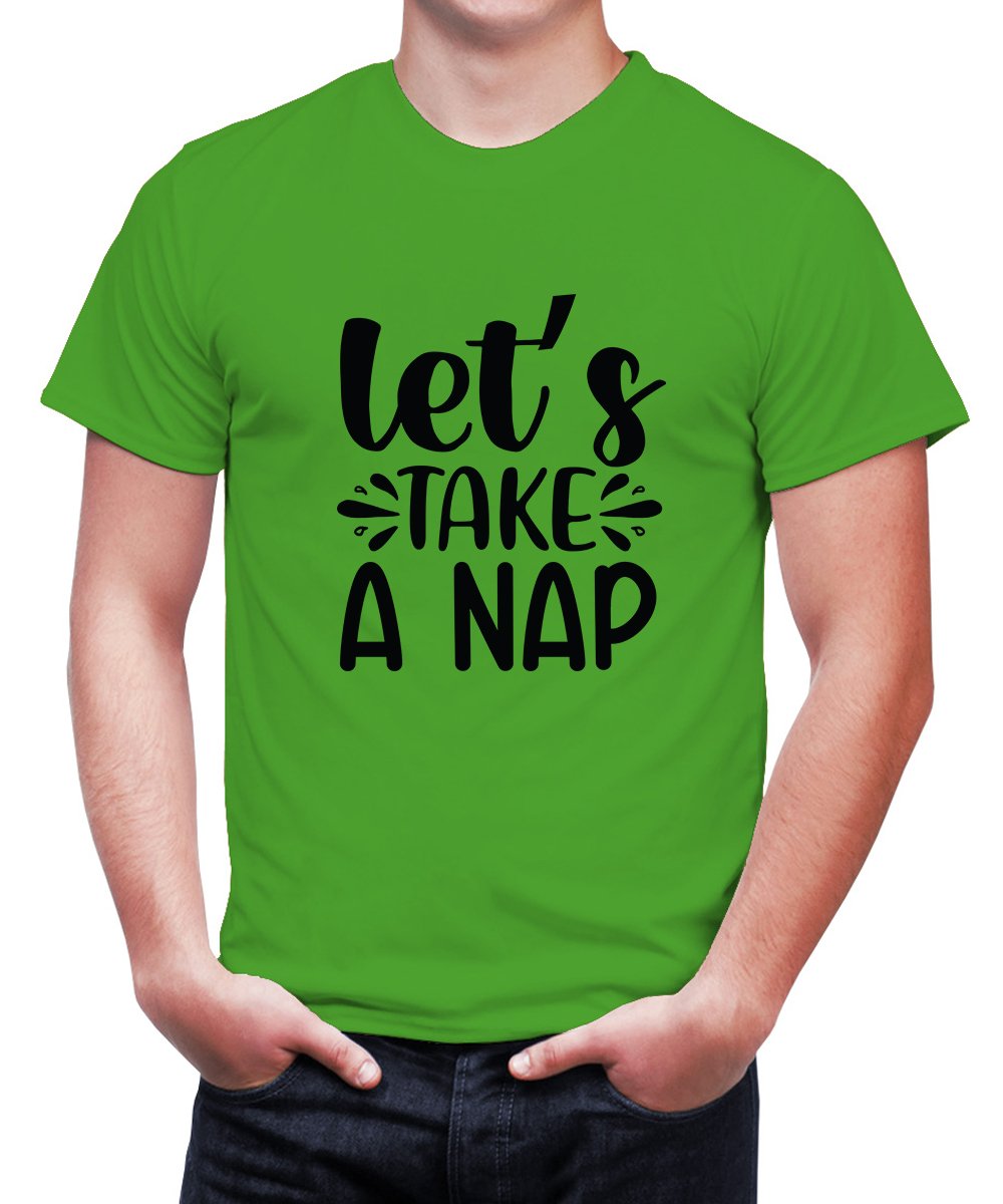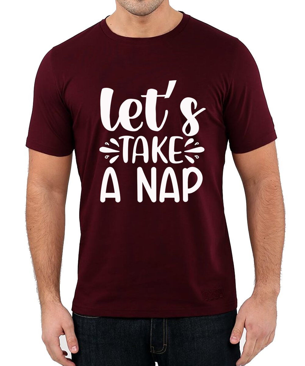 Caseria Men's Round Neck Cotton Half Sleeved T-Shirt With Printed Graphics - Let Take Nap