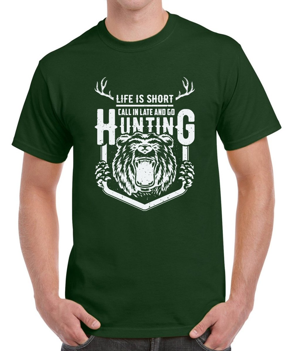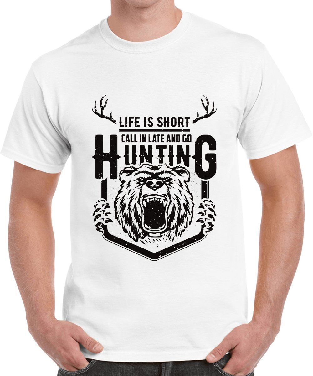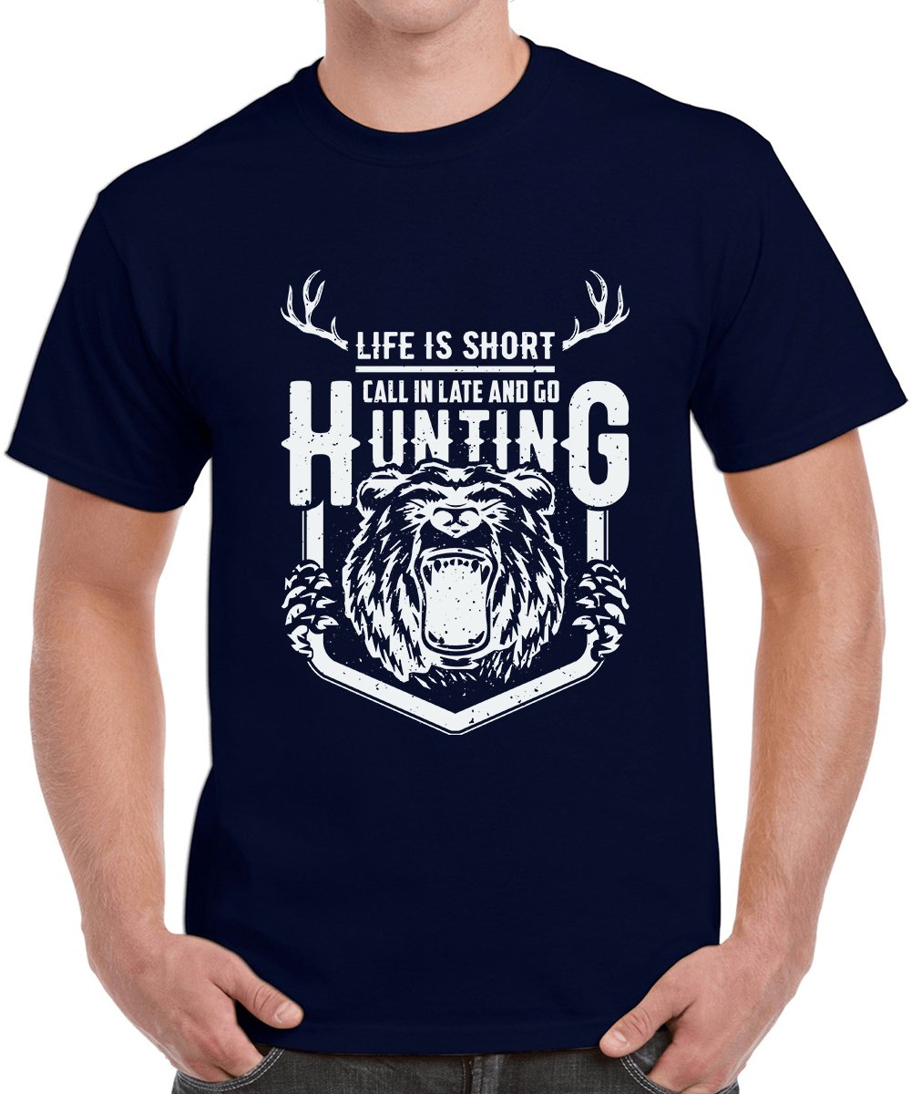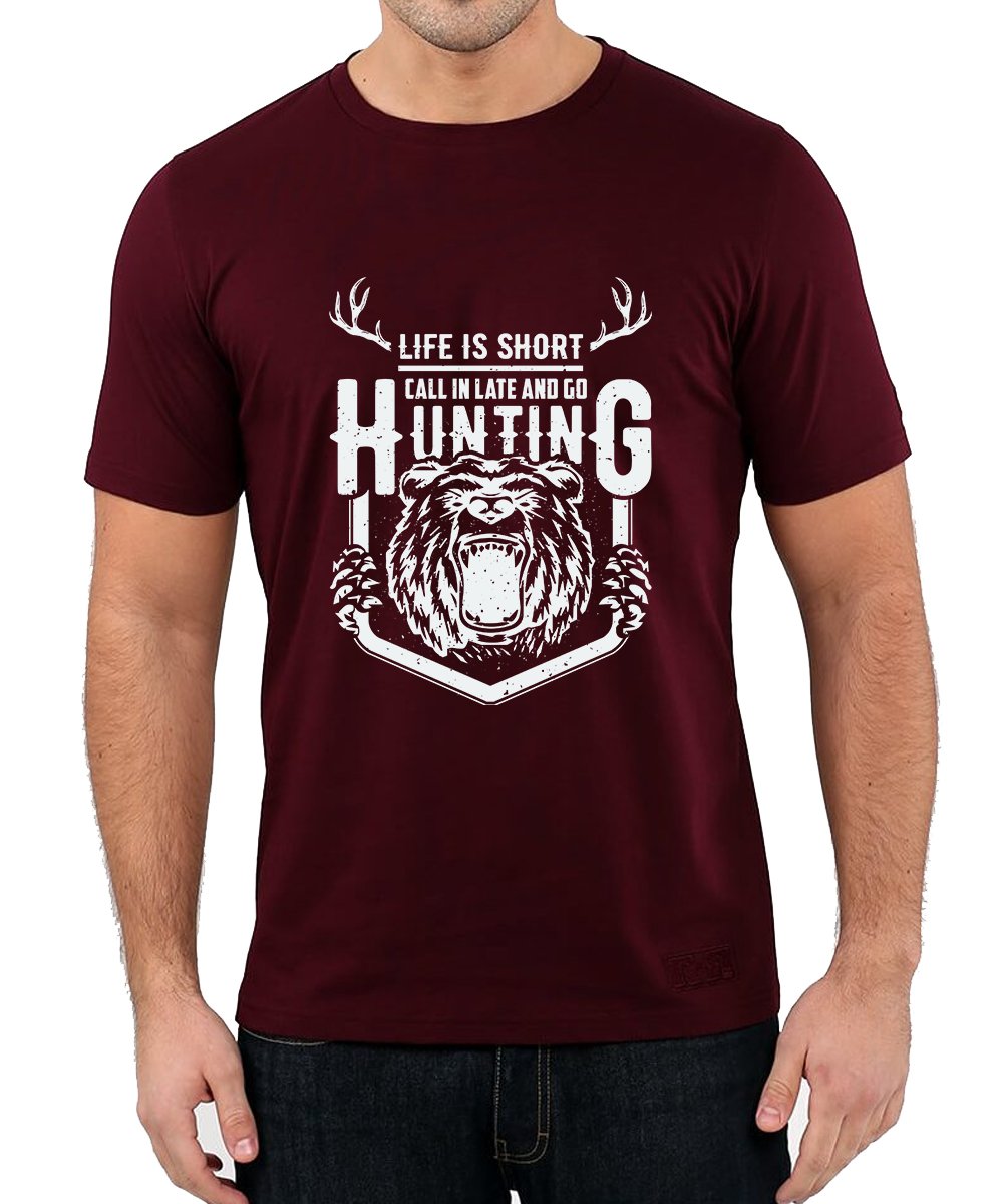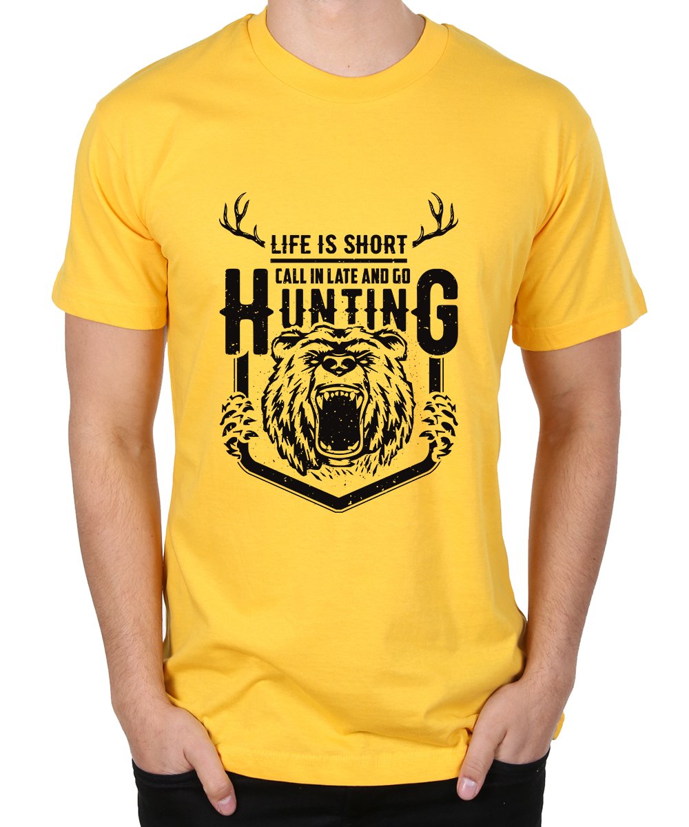 Caseria Men's Round Neck Cotton Half Sleeved T-Shirt With Printed Graphics - Life Is Short Hunting