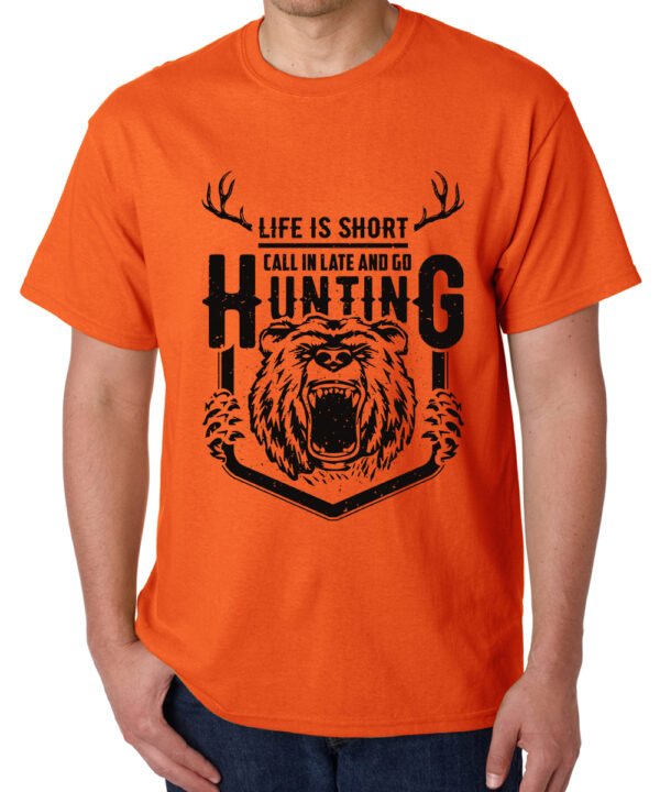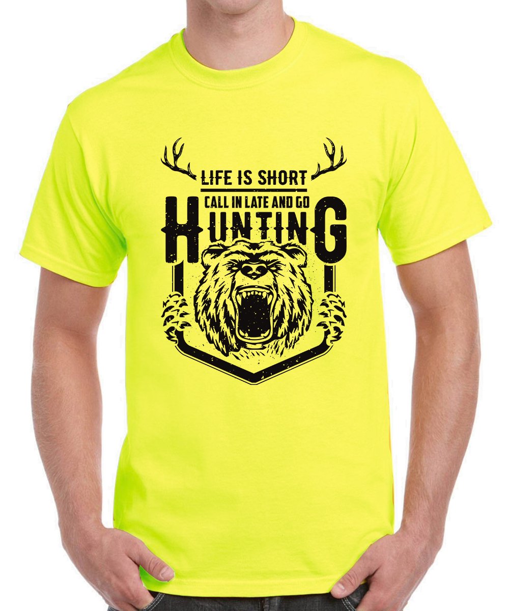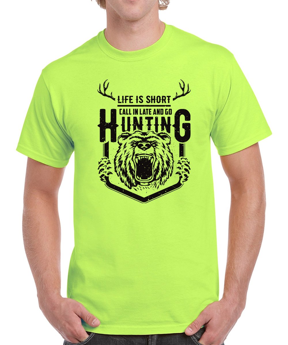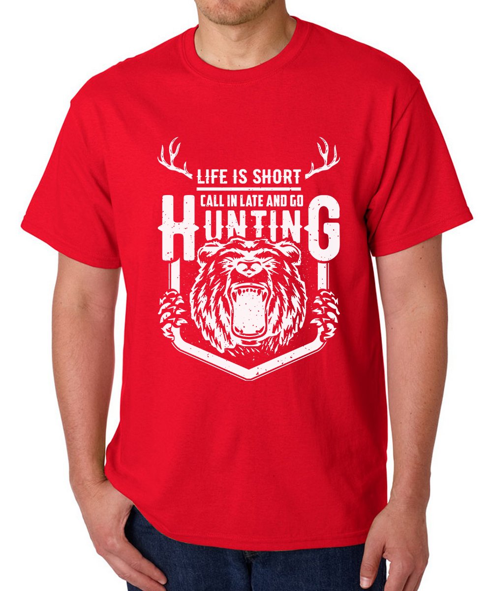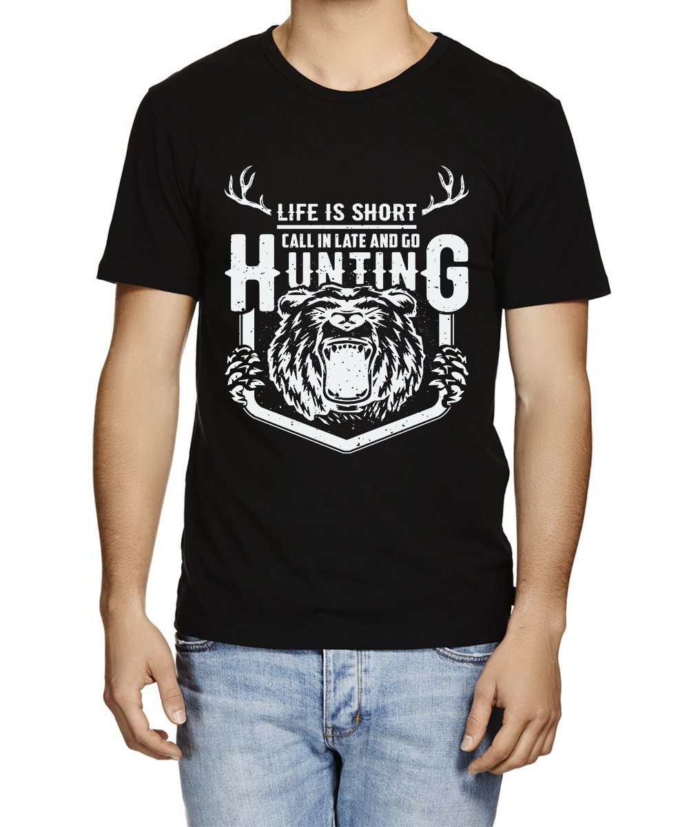 Caseria Men's Round Neck Cotton Half Sleeved T-Shirt With Printed Graphics - Life Is Short Hunting