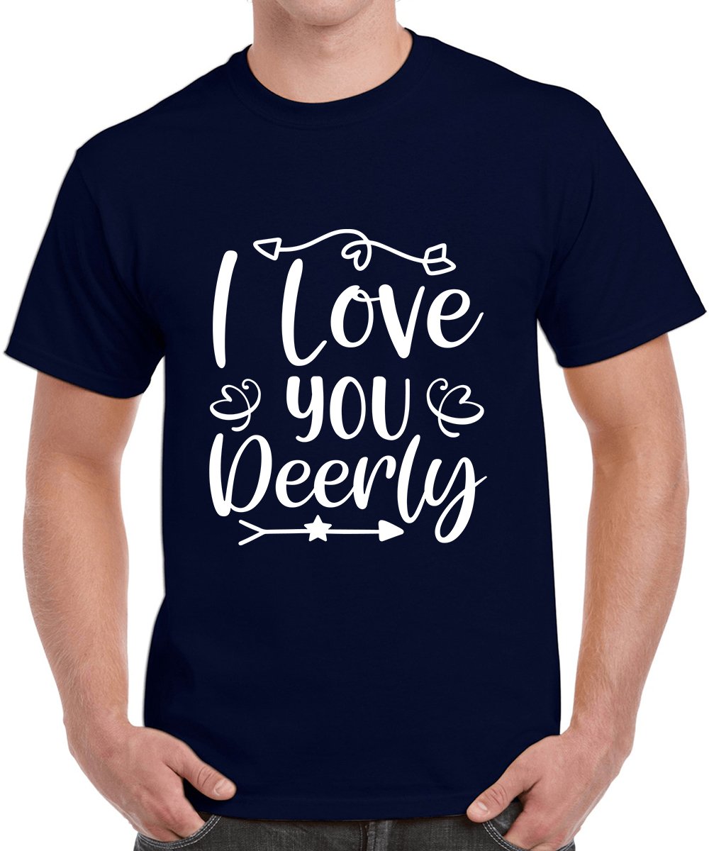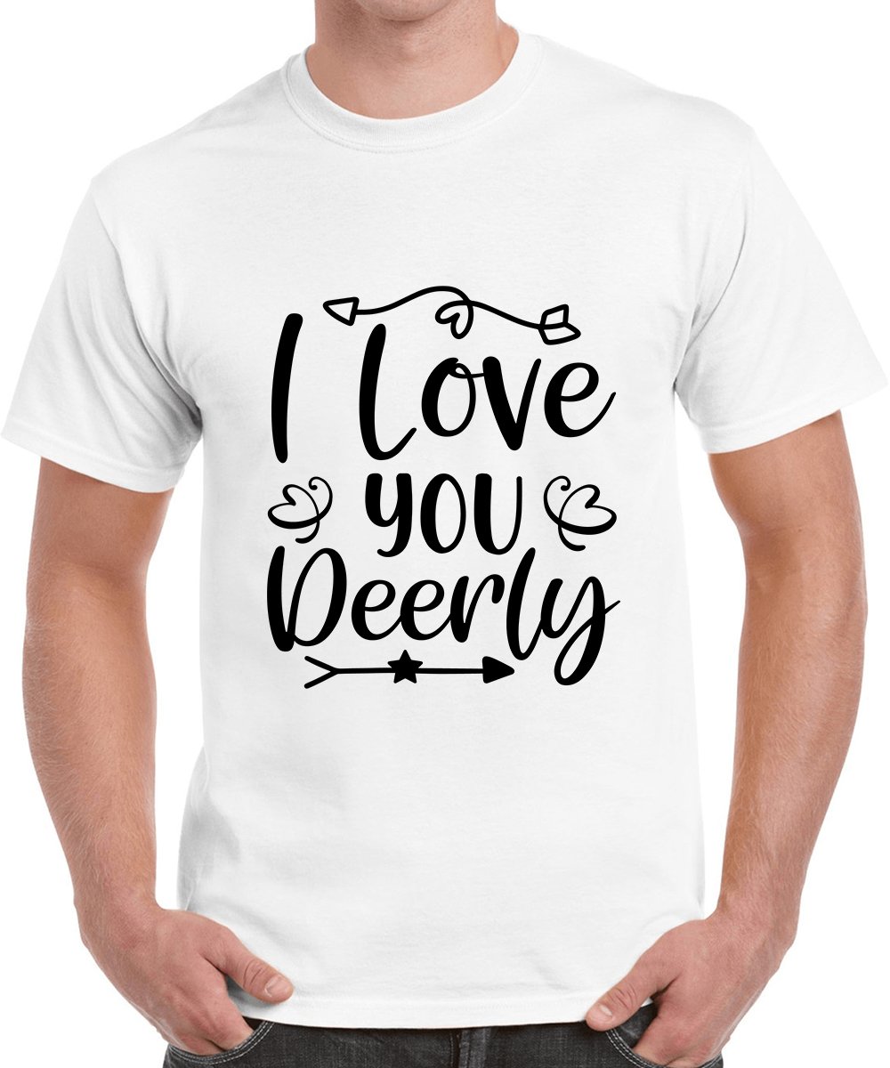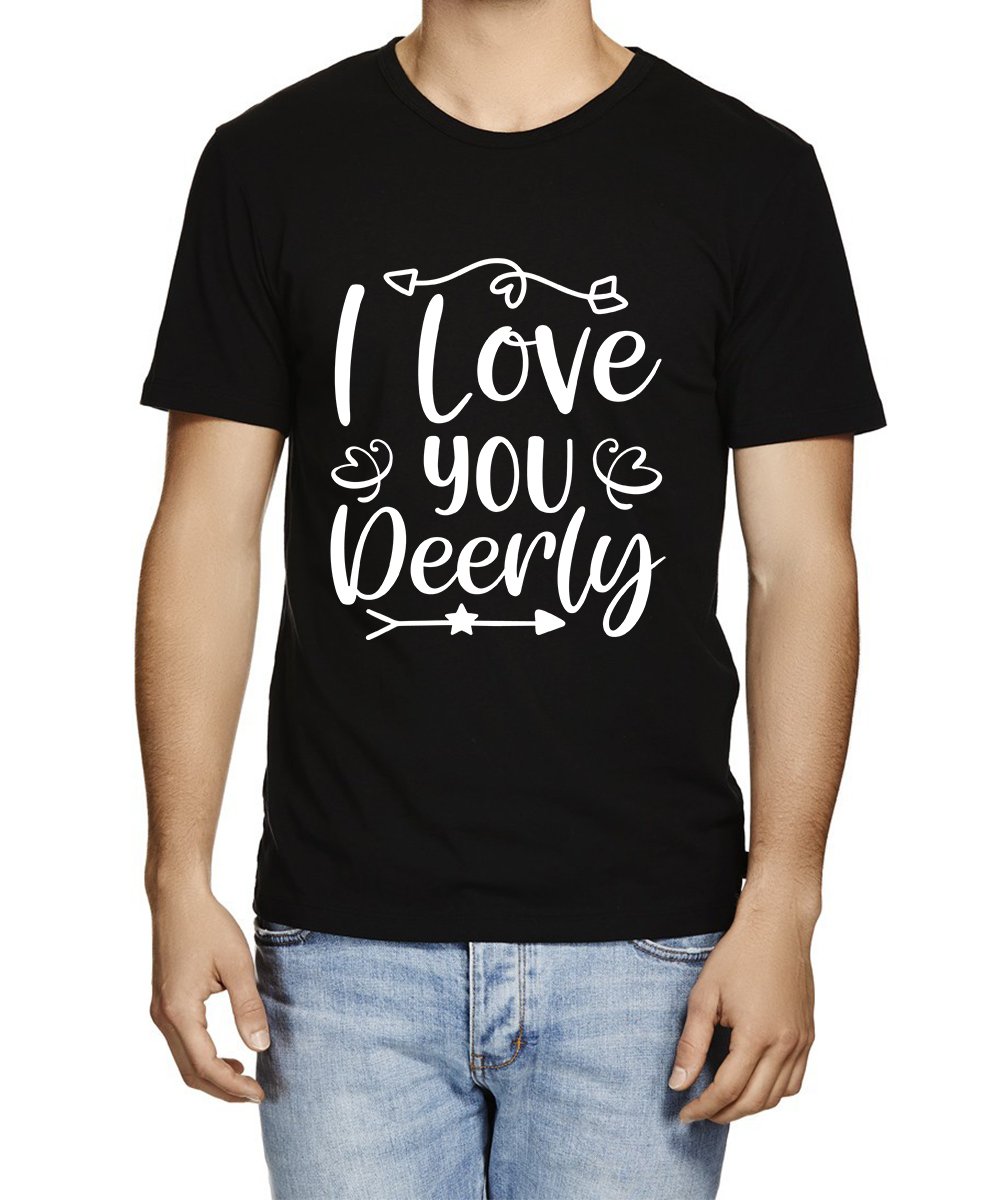 Caseria Men's Round Neck Cotton Half Sleeved T-Shirt With Printed Graphics - Love You I Deerly