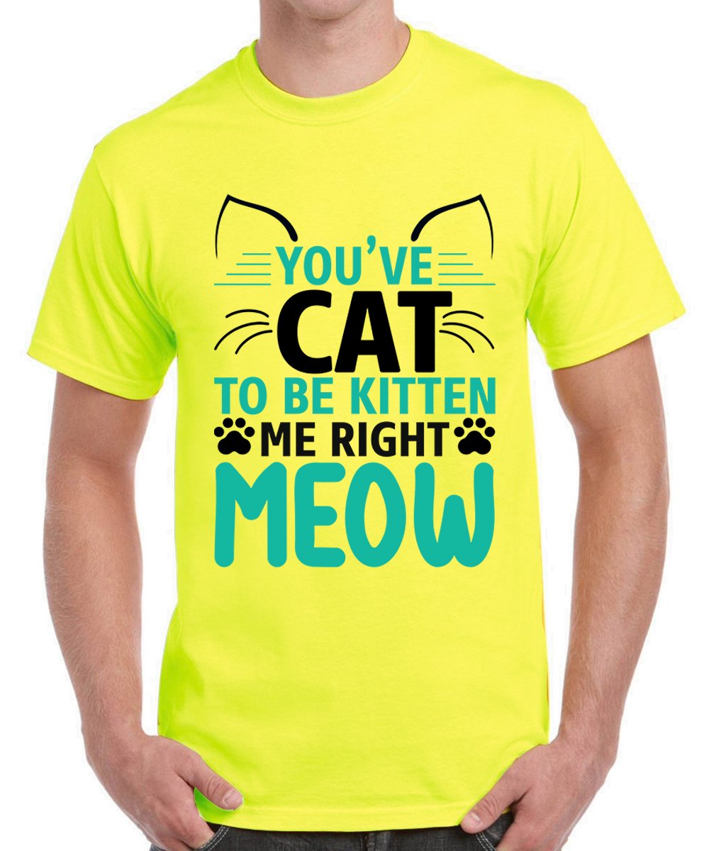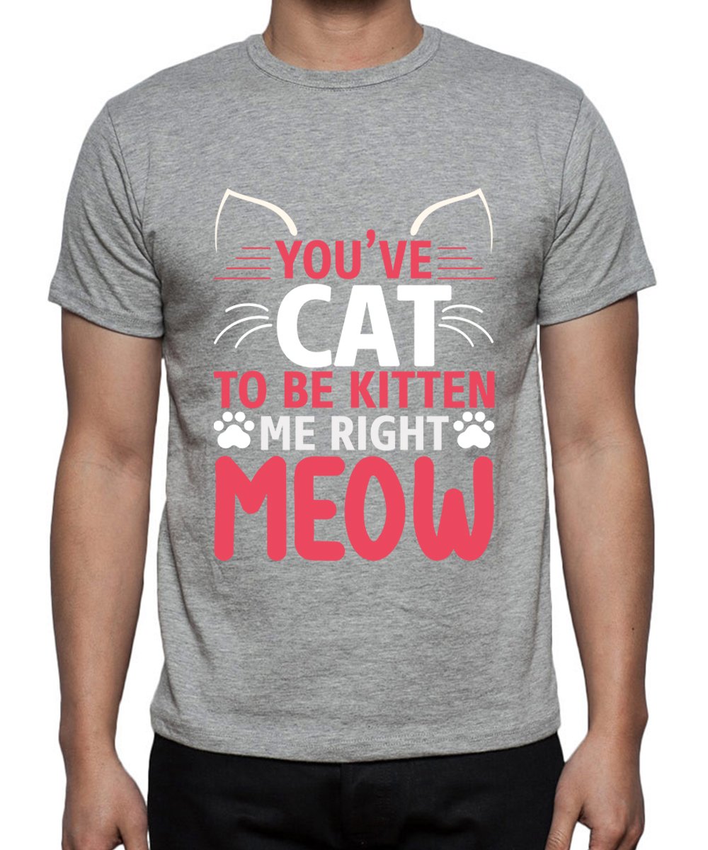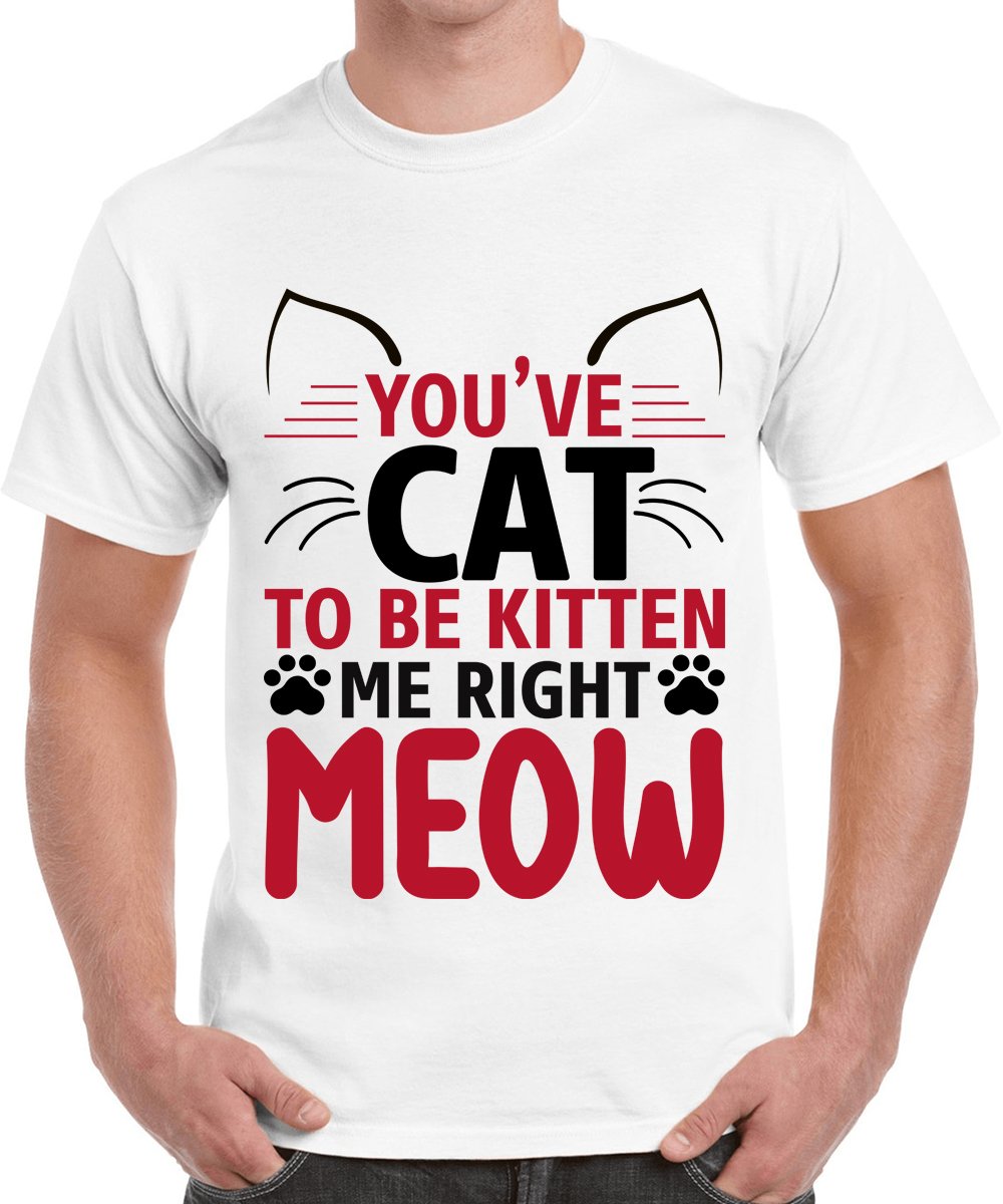 Caseria Men's Round Neck Cotton Half Sleeved T-Shirt With Printed Graphics - Me Right Meow