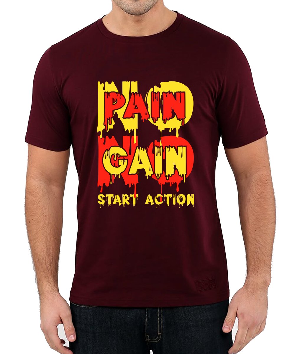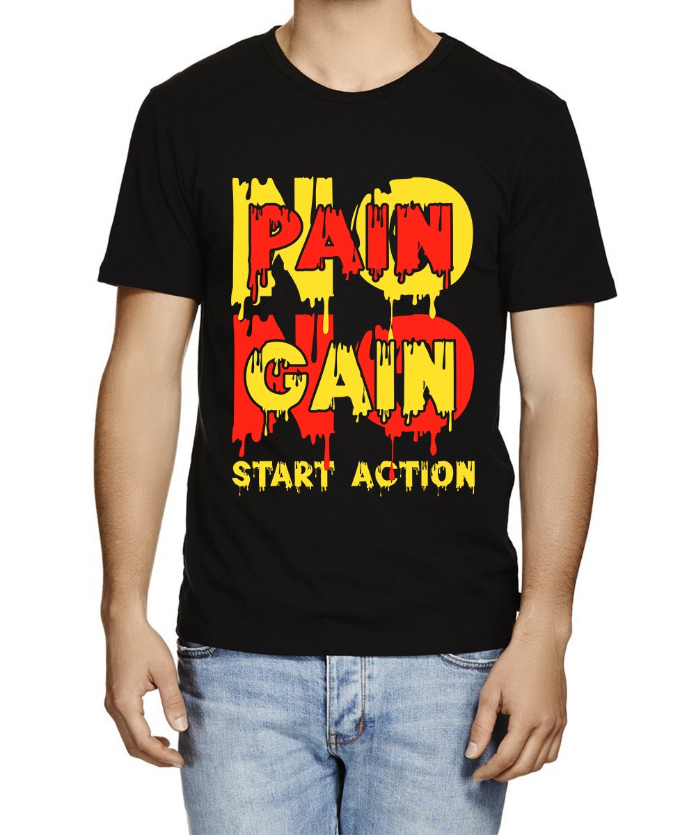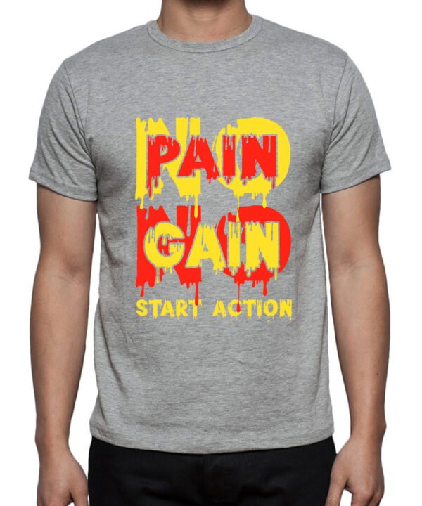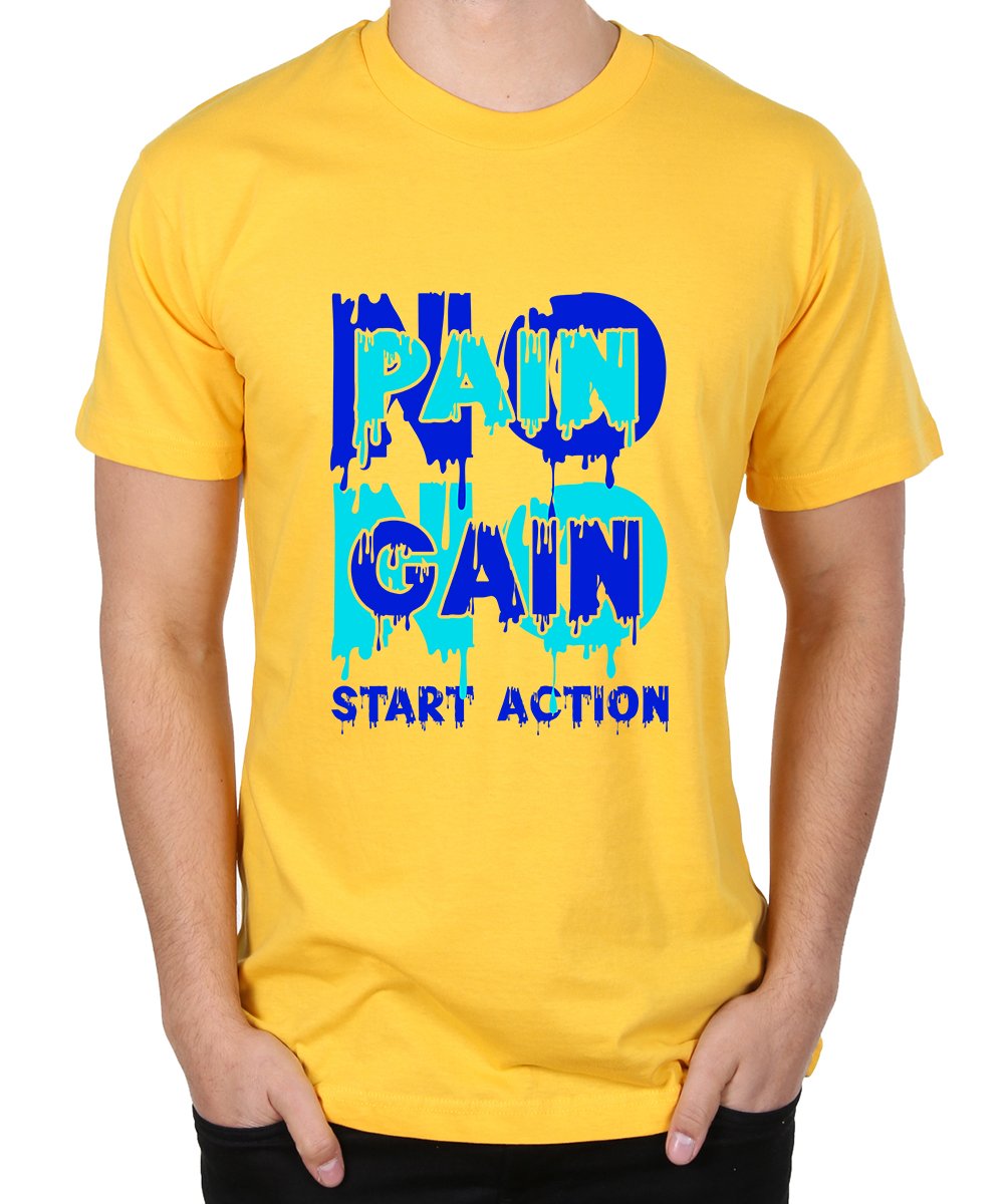Caseria Men's Round Neck Cotton Half Sleeved T-Shirt With Printed Graphics - Pain Gain Start Action