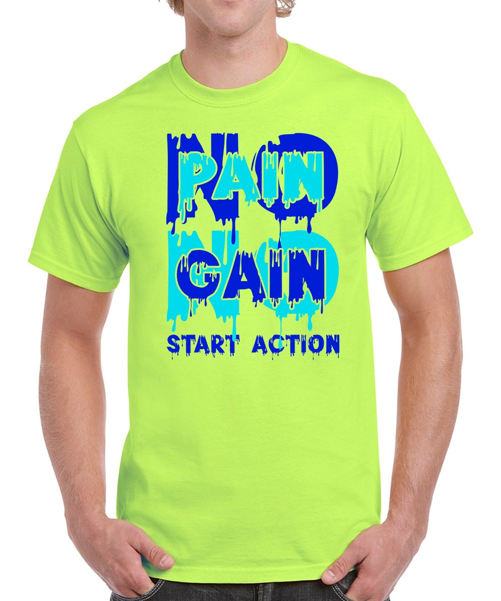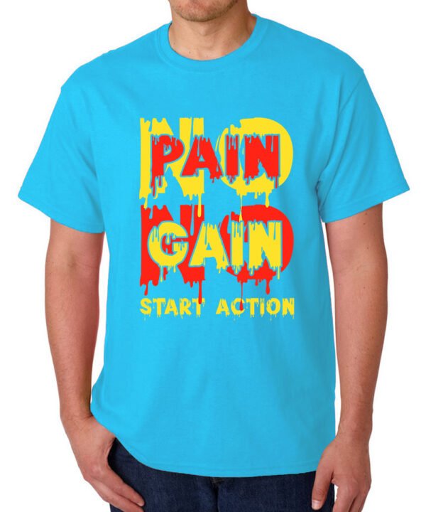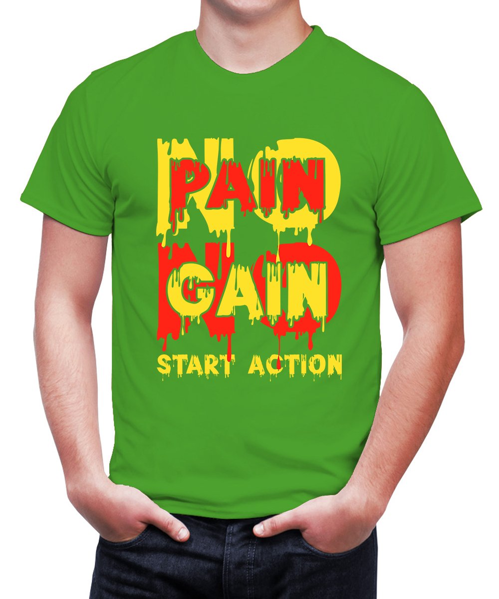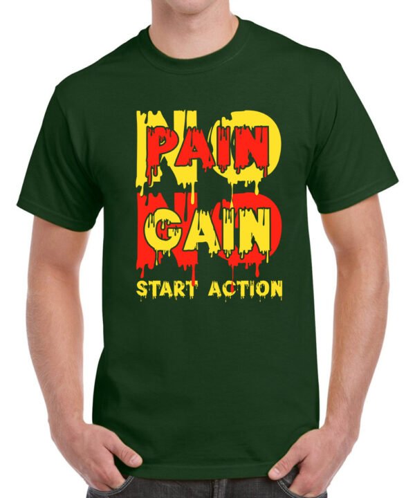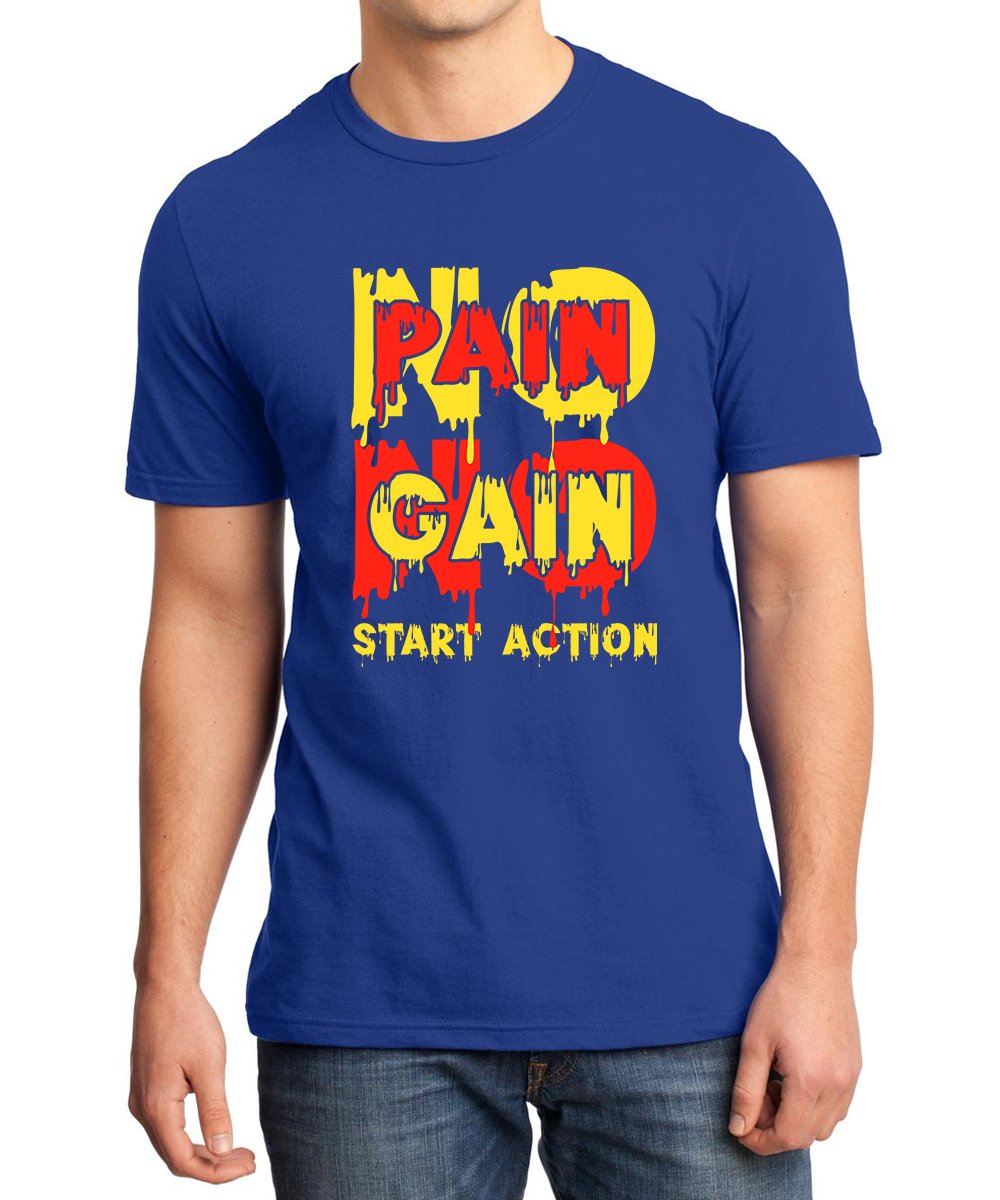 Caseria Men's Round Neck Cotton Half Sleeved T-Shirt With Printed Graphics - Pain Gain Start Action