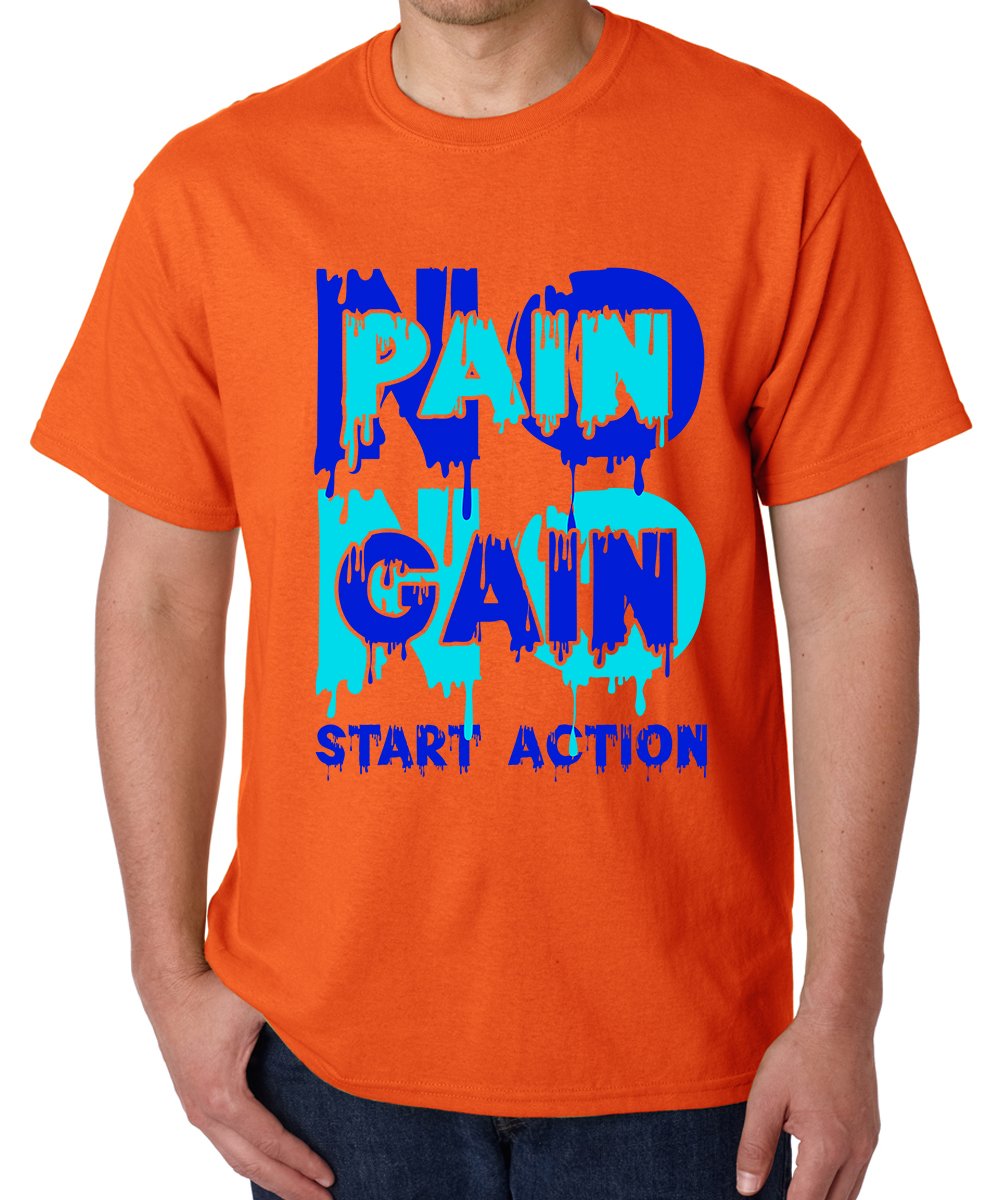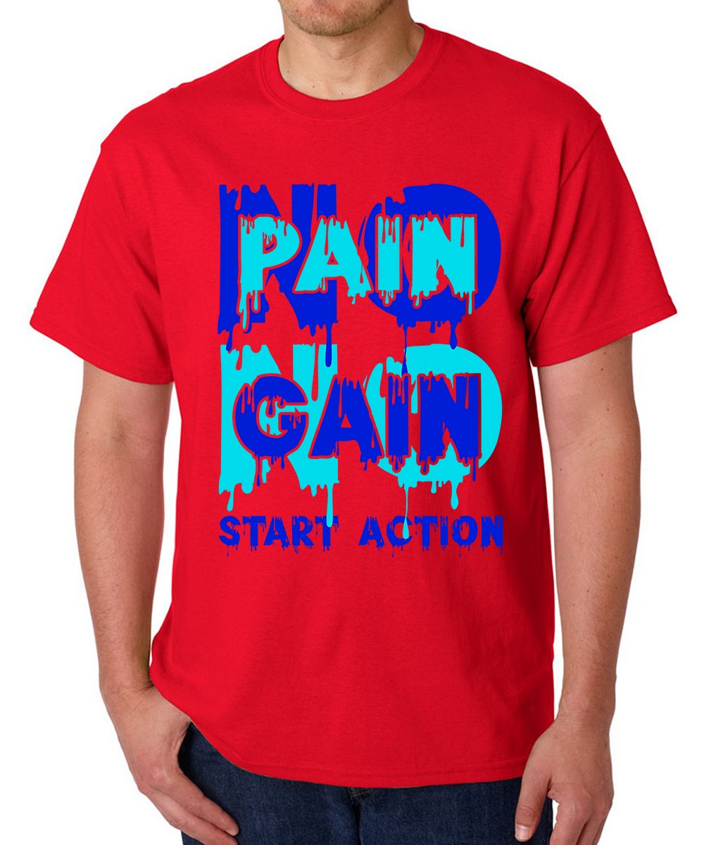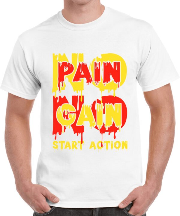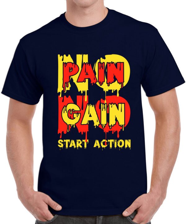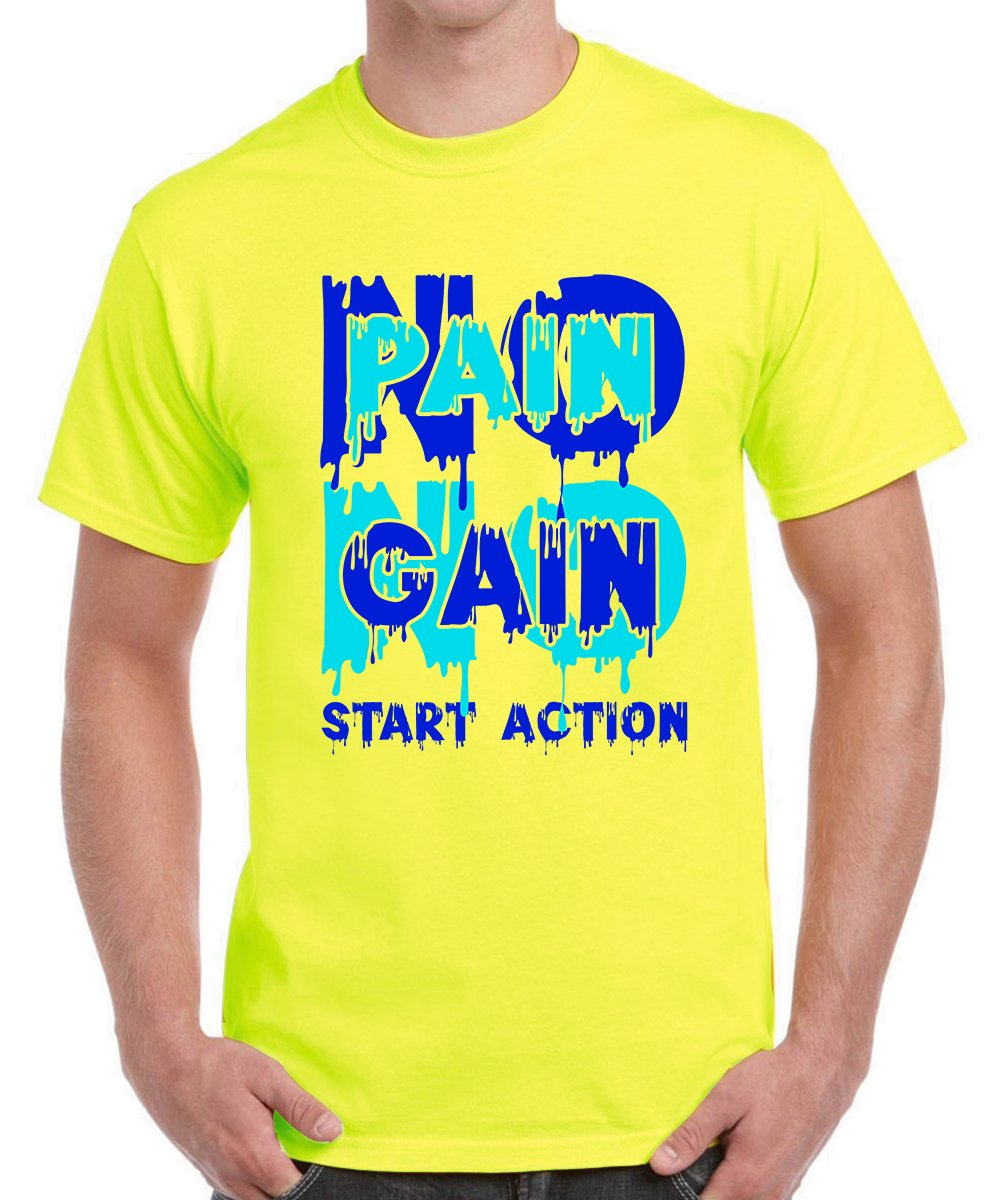 Caseria Men's Round Neck Cotton Half Sleeved T-Shirt With Printed Graphics - Pain Gain Start Action