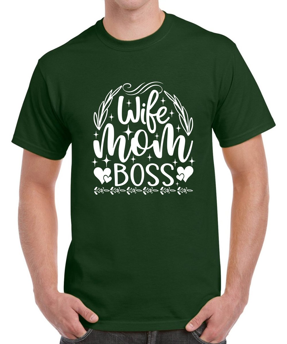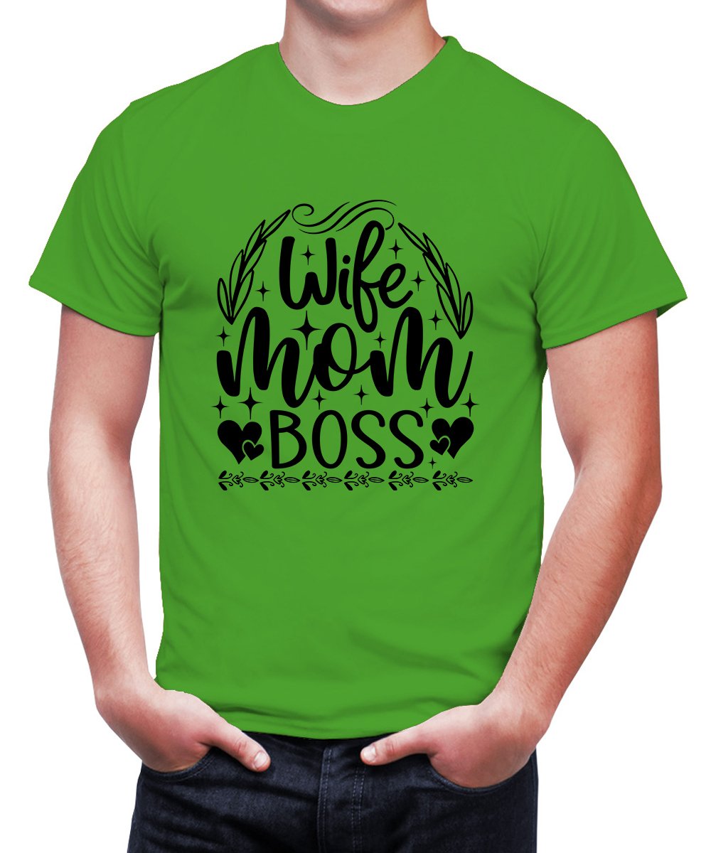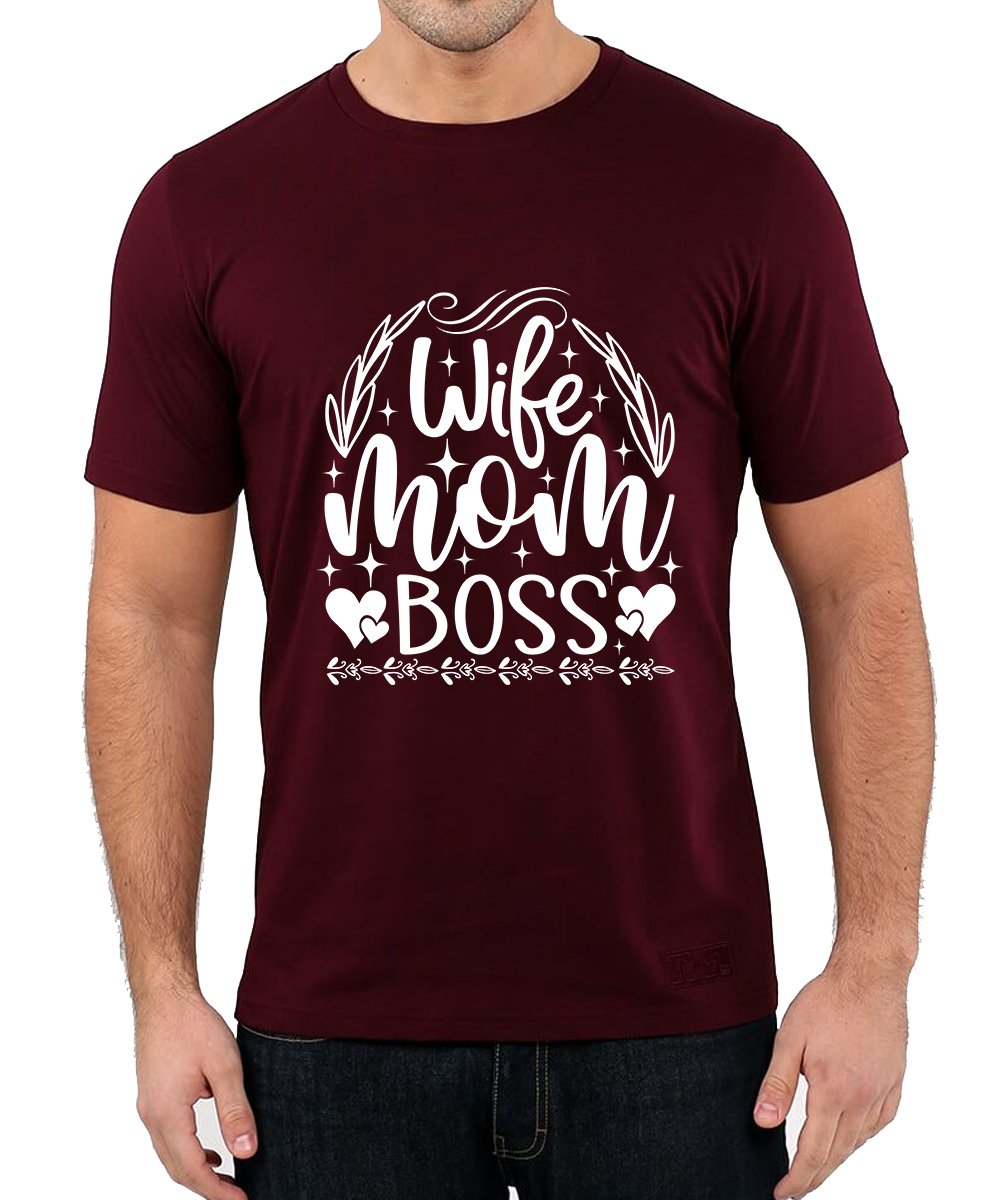 Caseria Men's Round Neck Cotton Half Sleeved T-Shirt With Printed Graphics - Wife Mom Boss