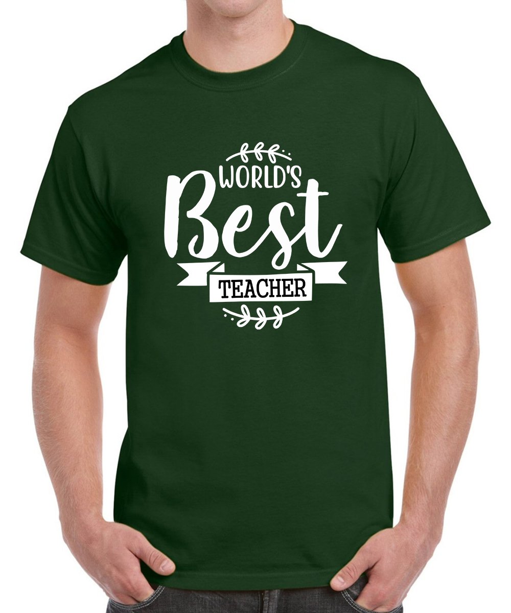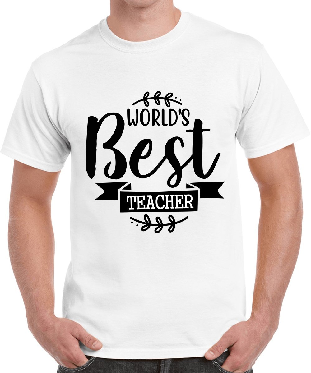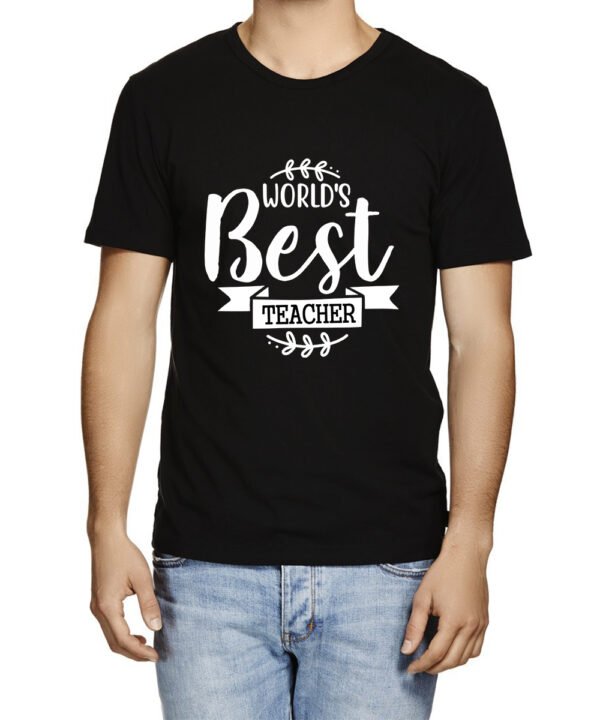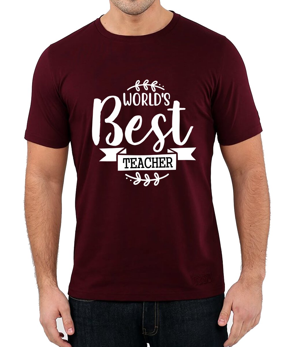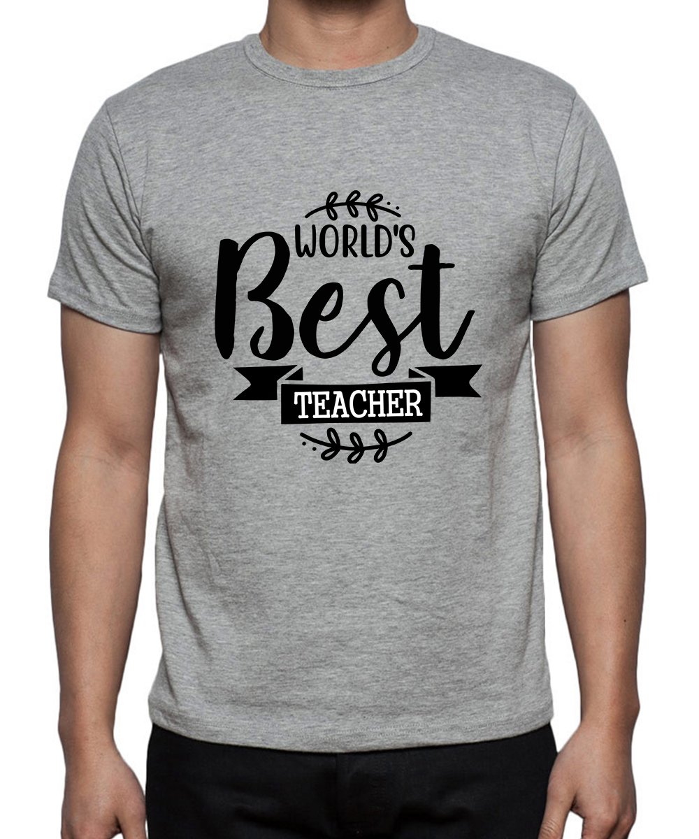 Caseria Men's Round Neck Cotton Half Sleeved T-Shirt With Printed Graphics - World Best Teacher