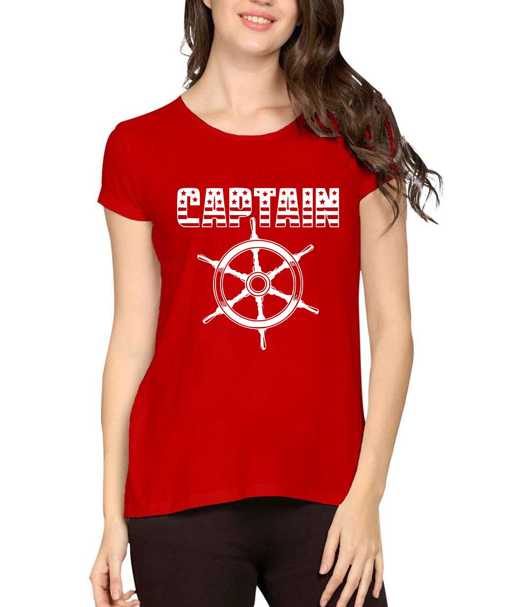 Caseria Women's Cotton Biowash Graphic Printed Half Sleeve T-Shirt - Captain Ship
