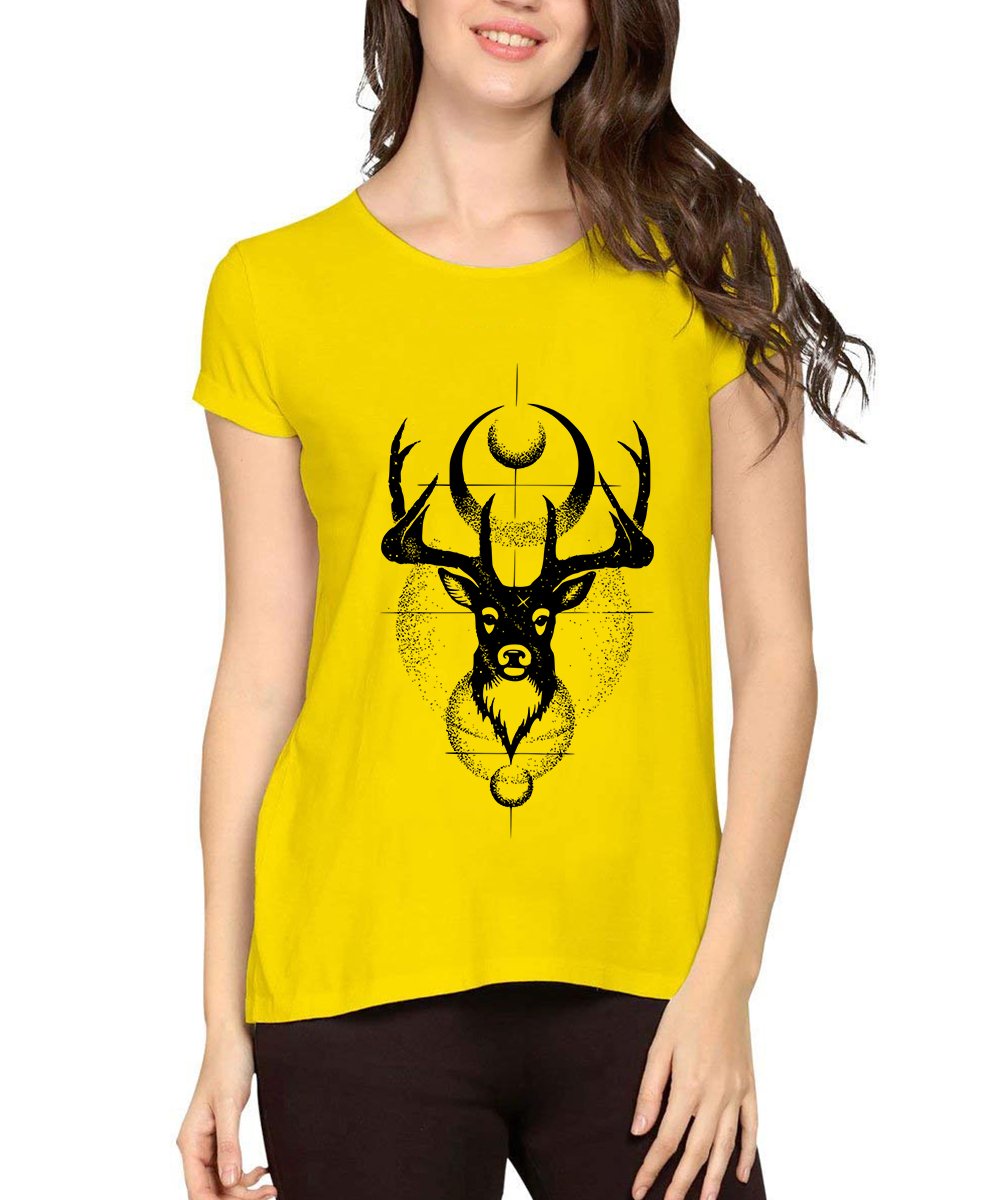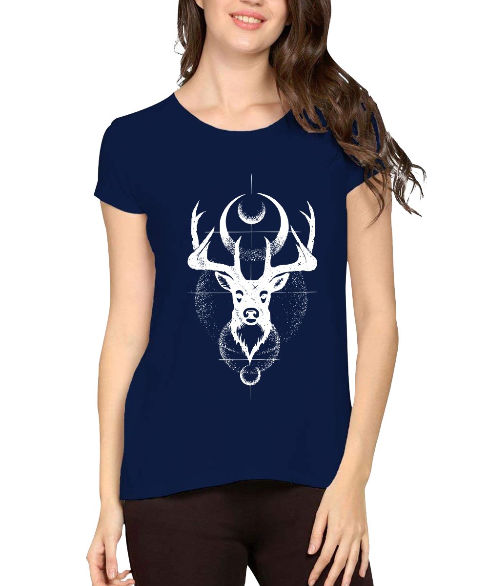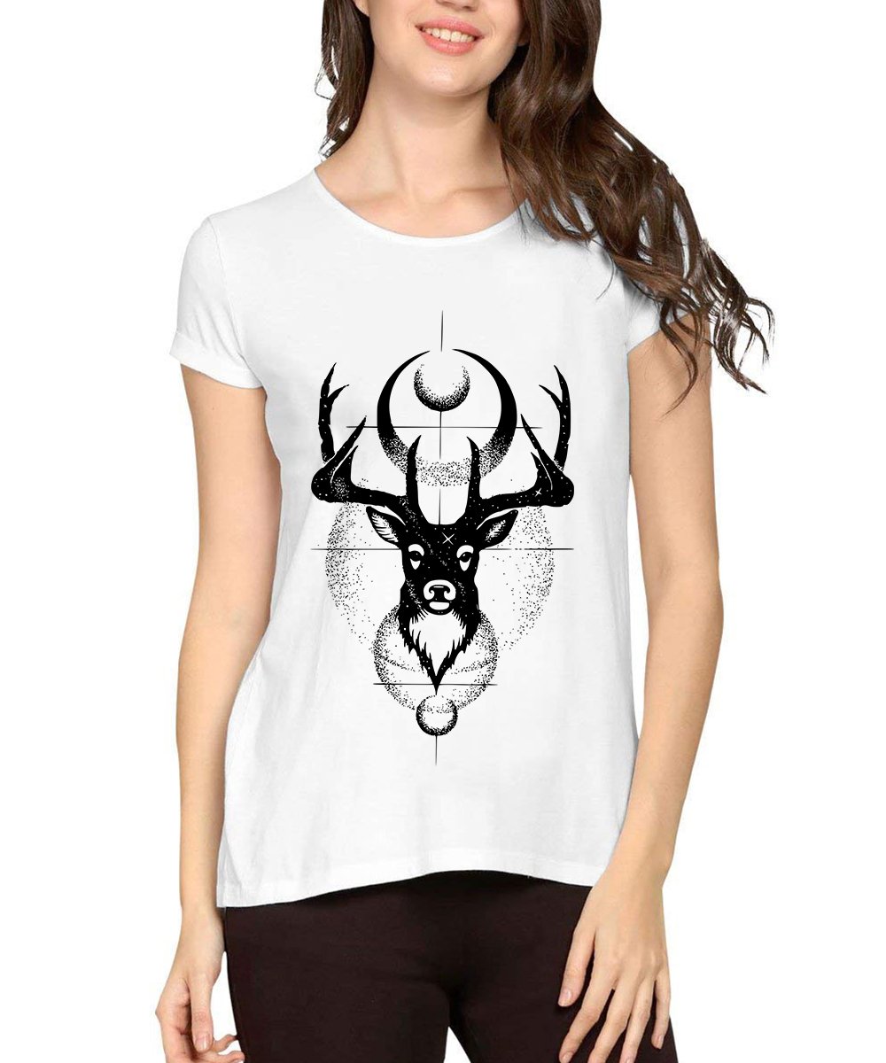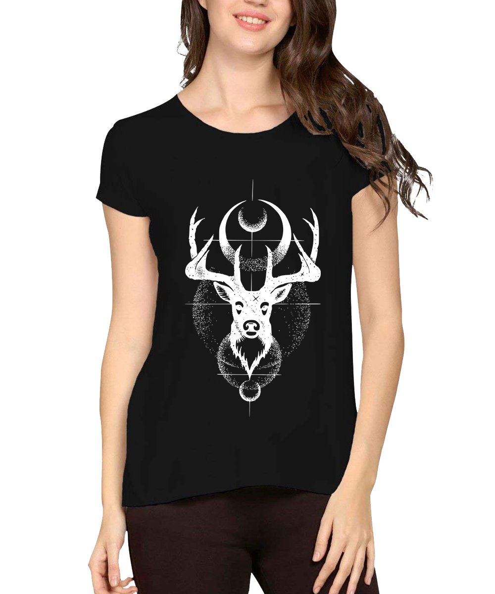 Caseria Women's Cotton Biowash Graphic Printed Half Sleeve T-Shirt - Deer Moon