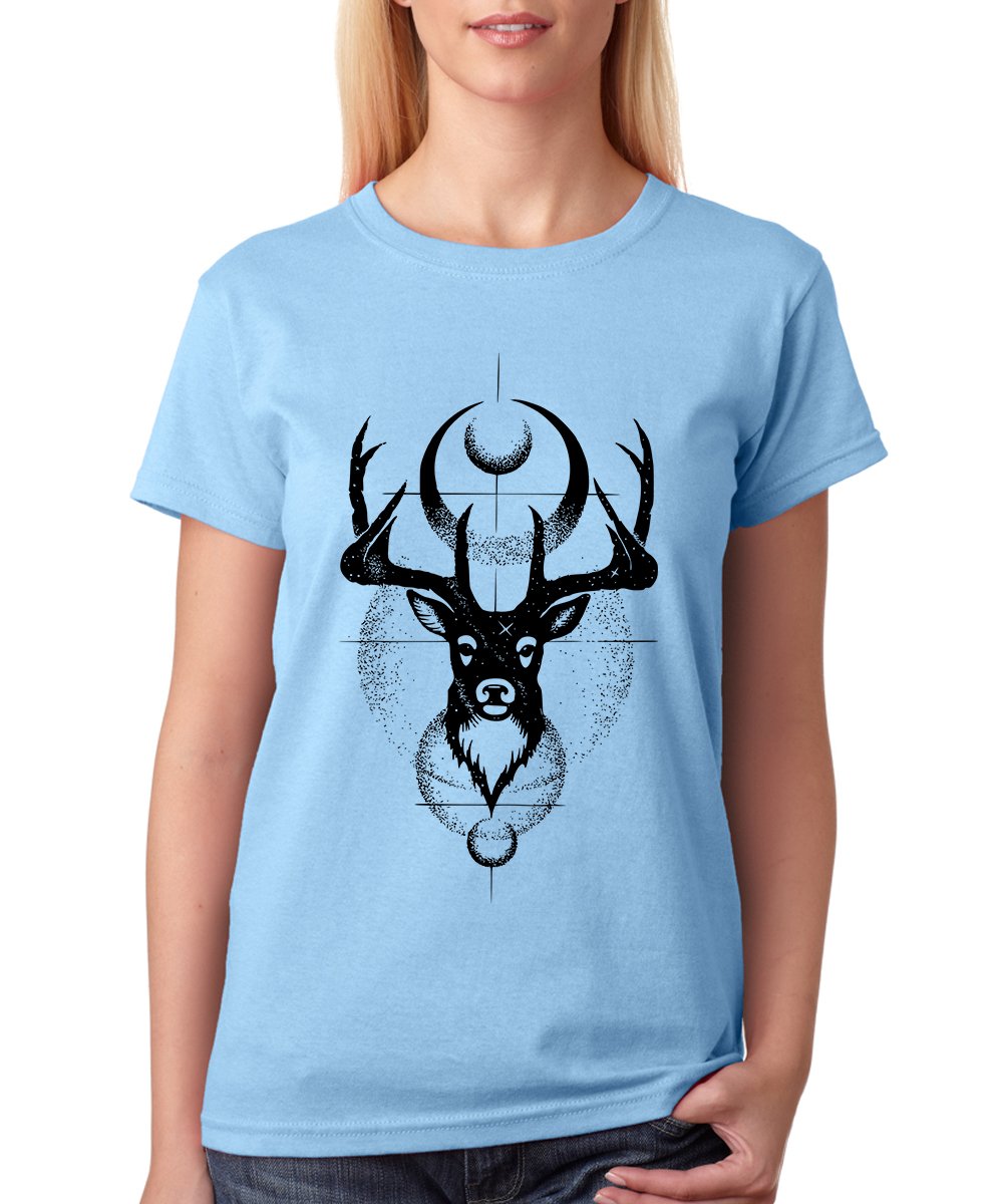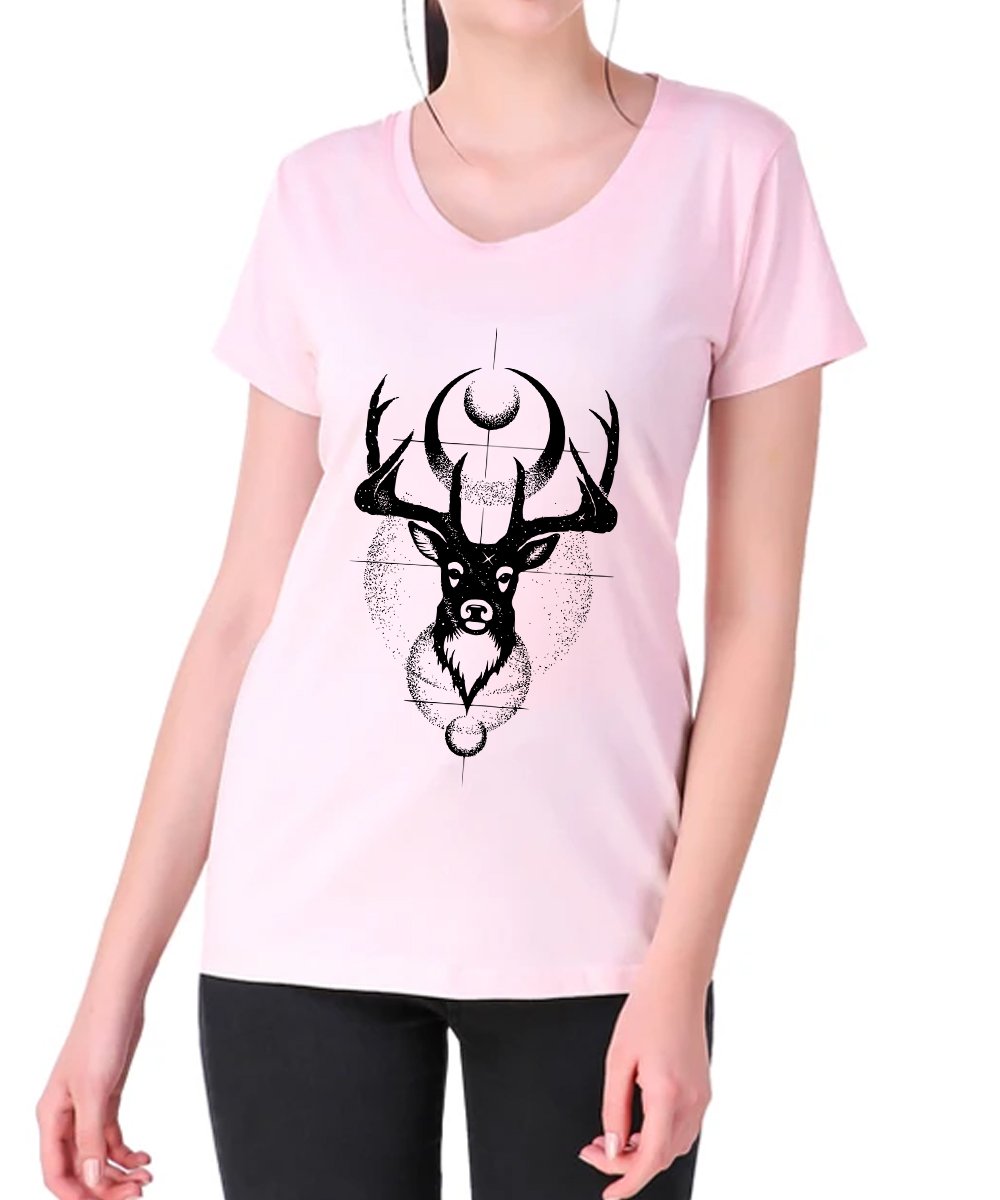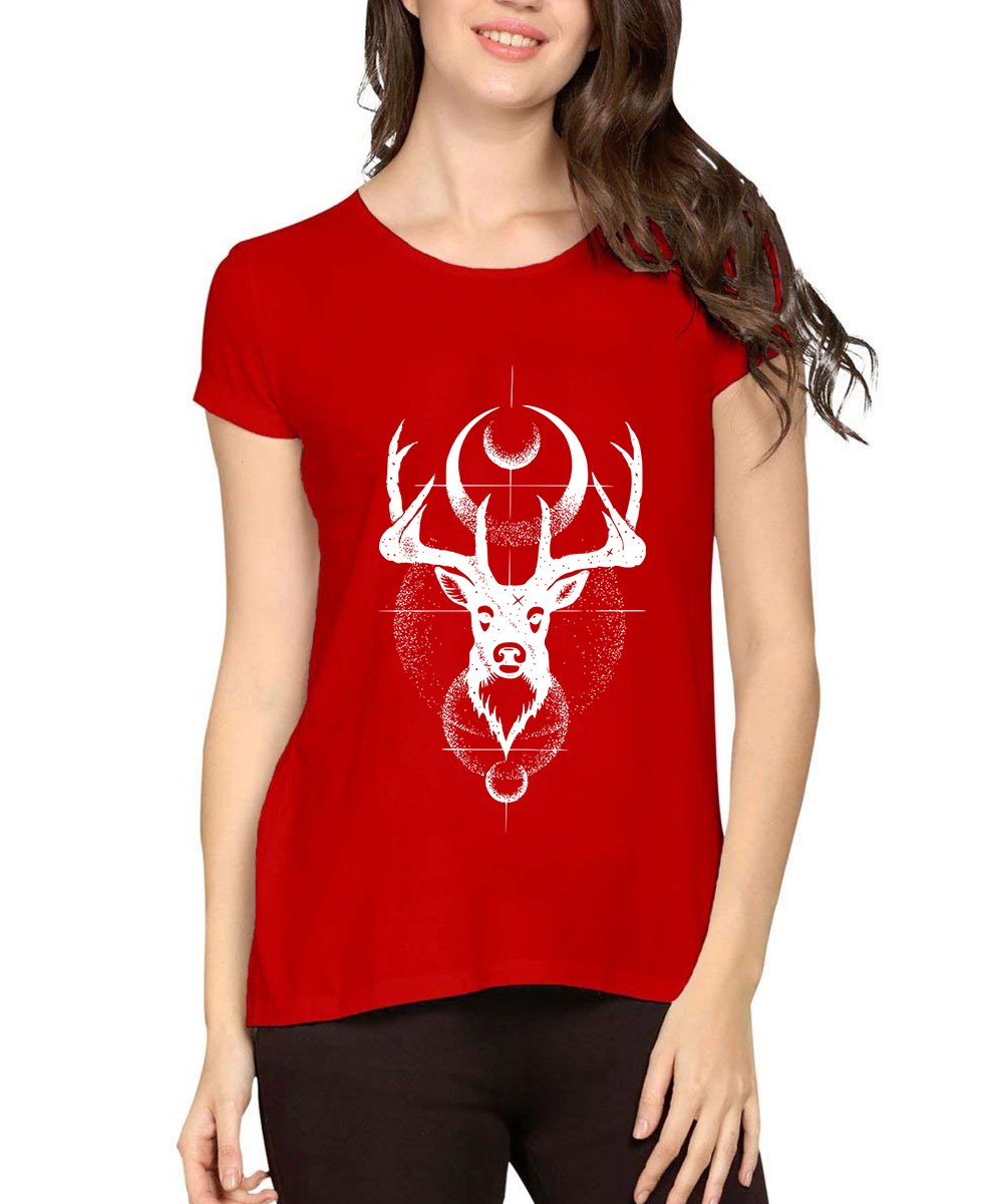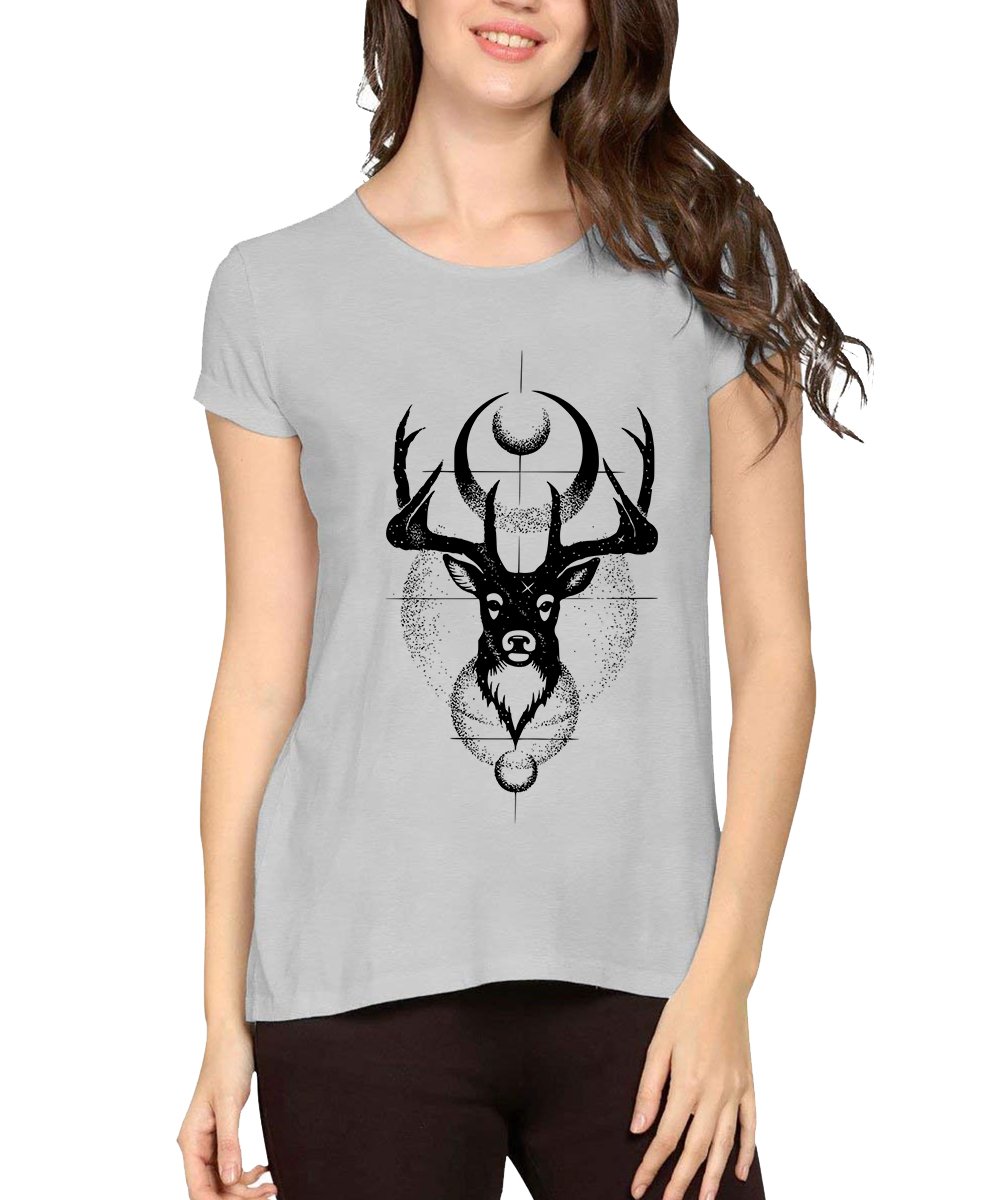 Caseria Women's Cotton Biowash Graphic Printed Half Sleeve T-Shirt - Deer Moon