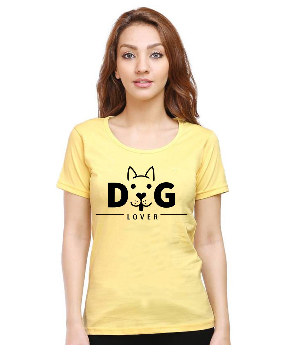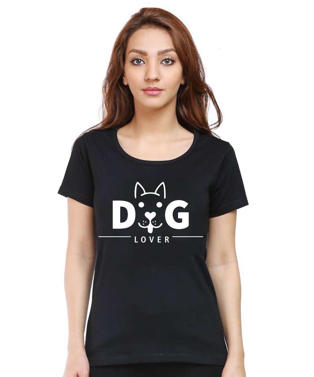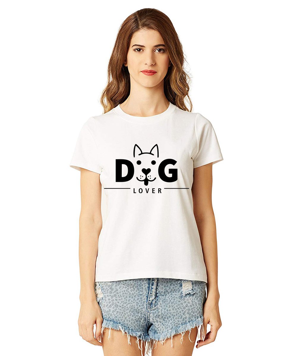 Caseria Women's Cotton Biowash Graphic Printed Half Sleeve T-Shirt - Dog Lover Pattern