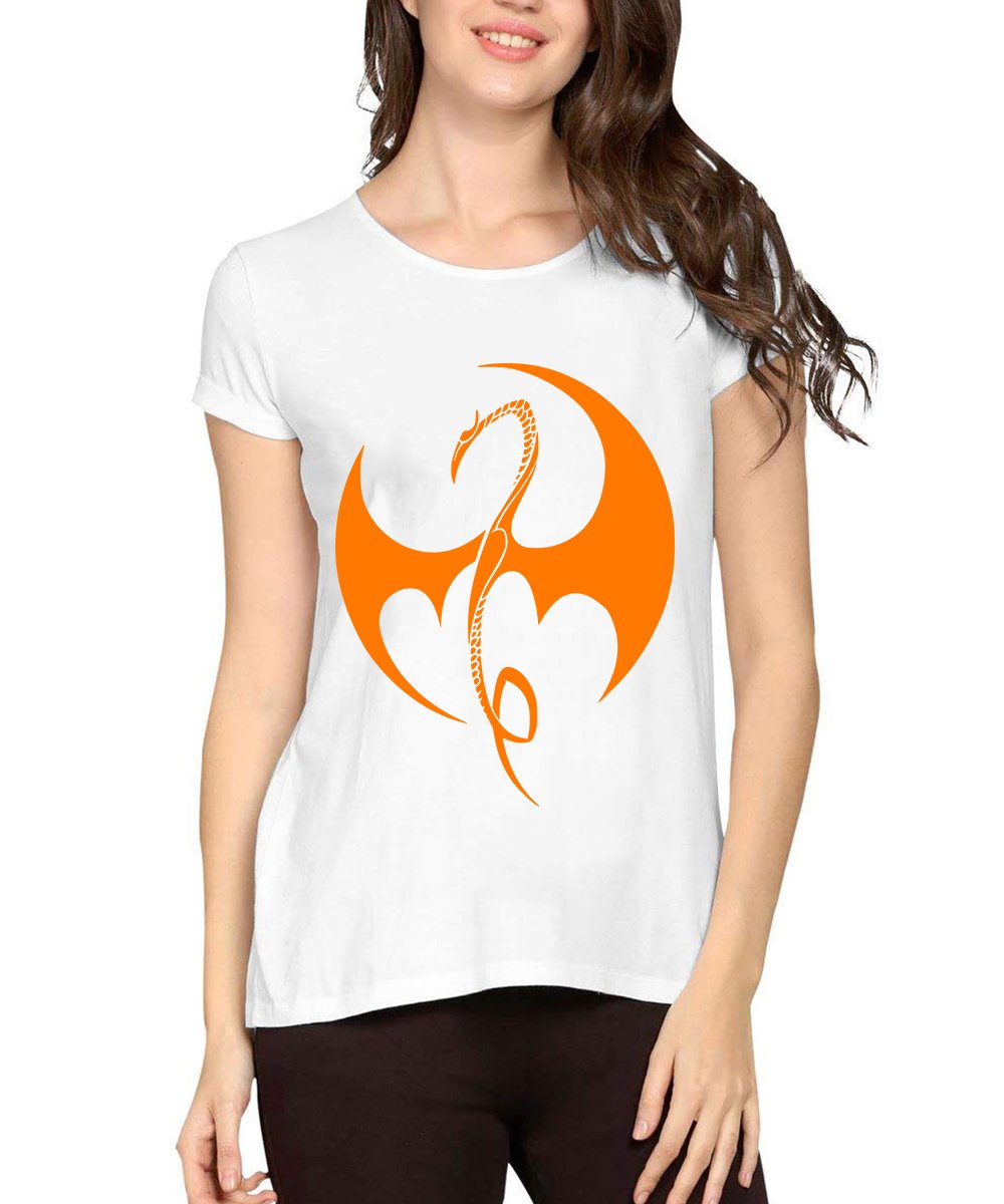 Caseria Women's Cotton Biowash Graphic Printed Half Sleeve T-Shirt - Dragon Power