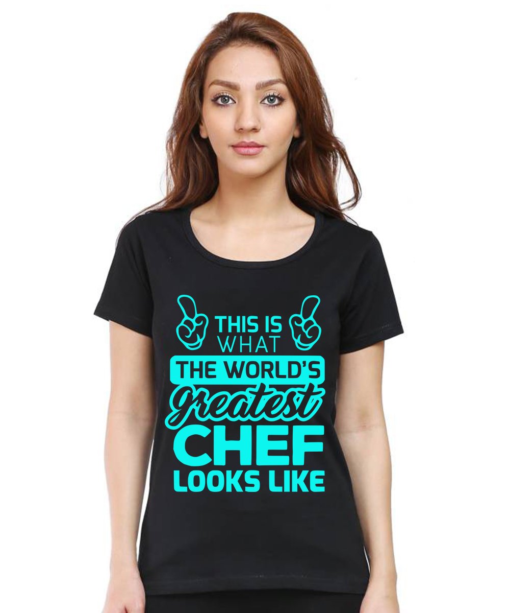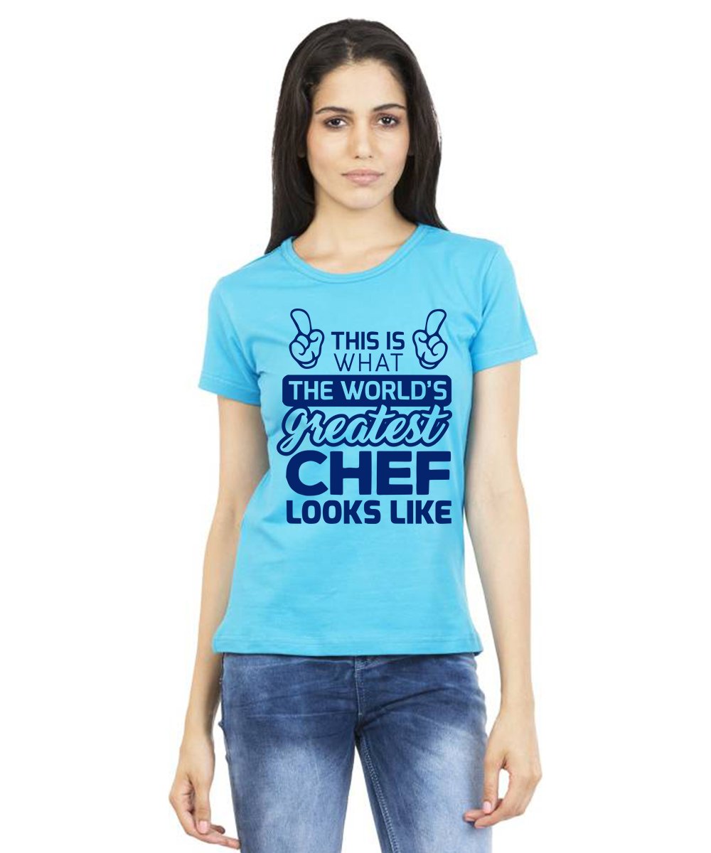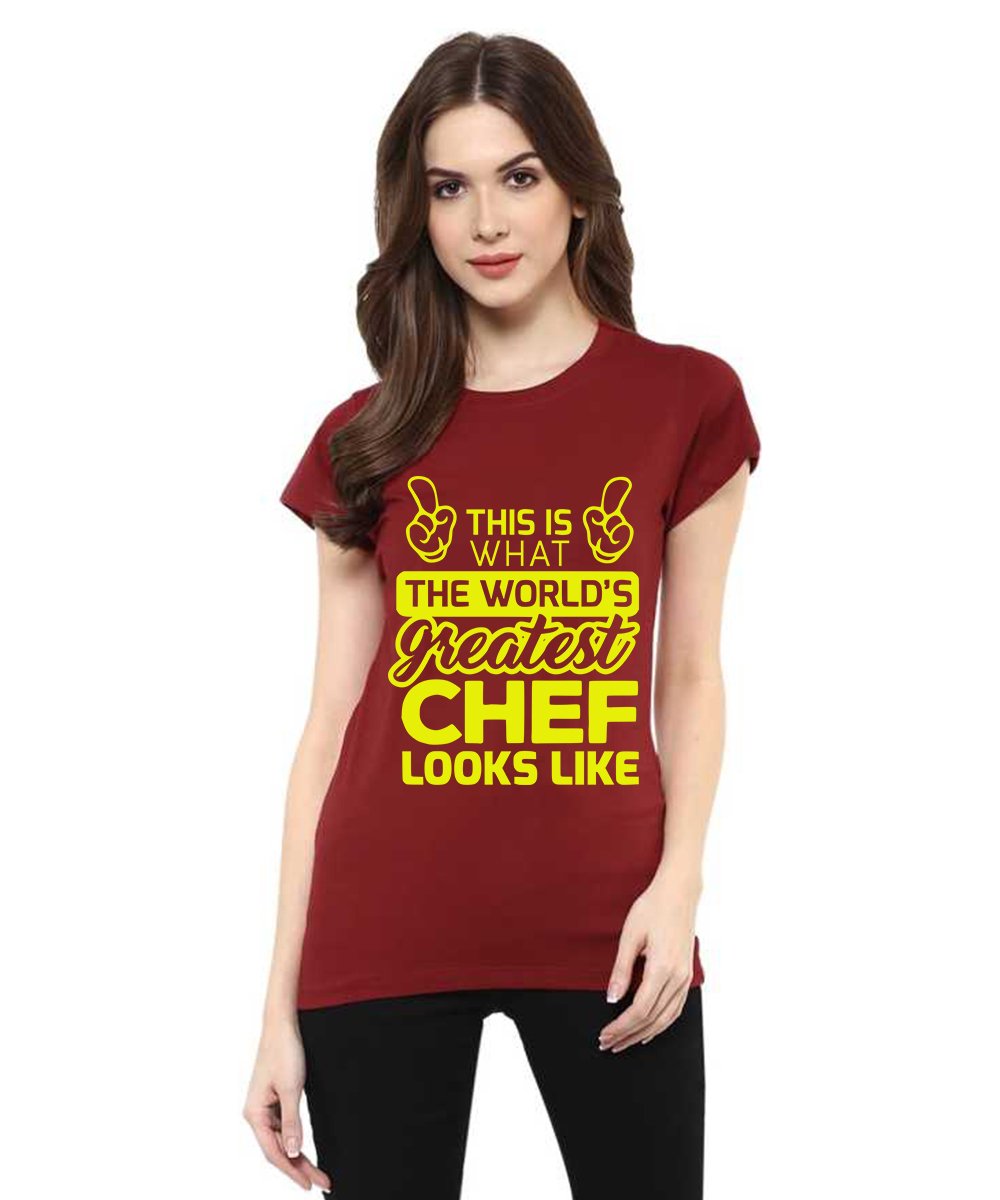 Caseria Women's Cotton Biowash Graphic Printed Half Sleeve T-Shirt - Greatest Chef Looks Like