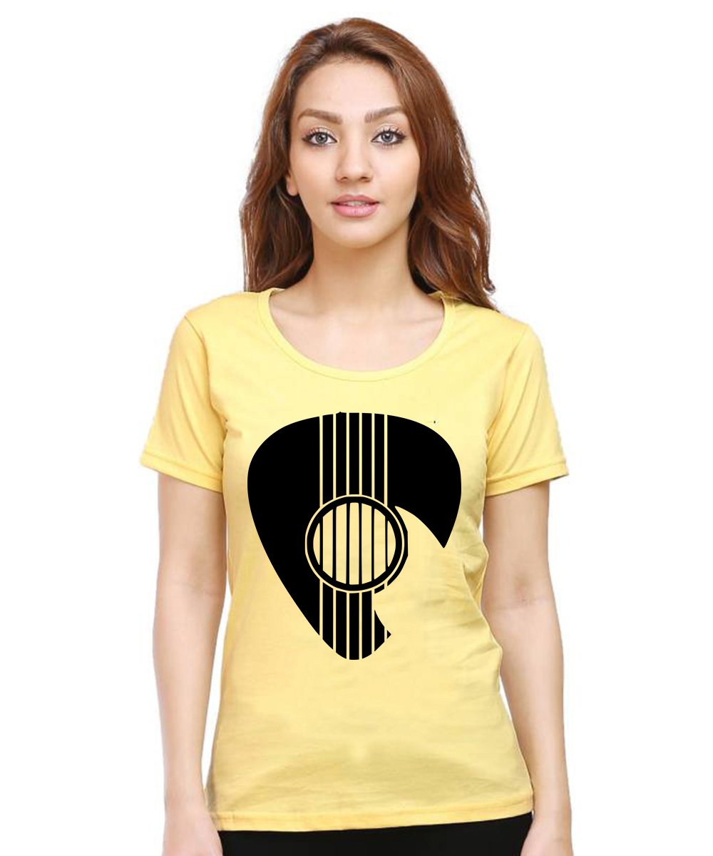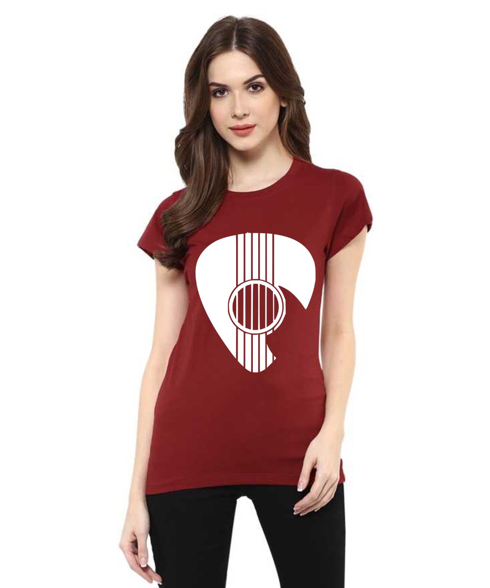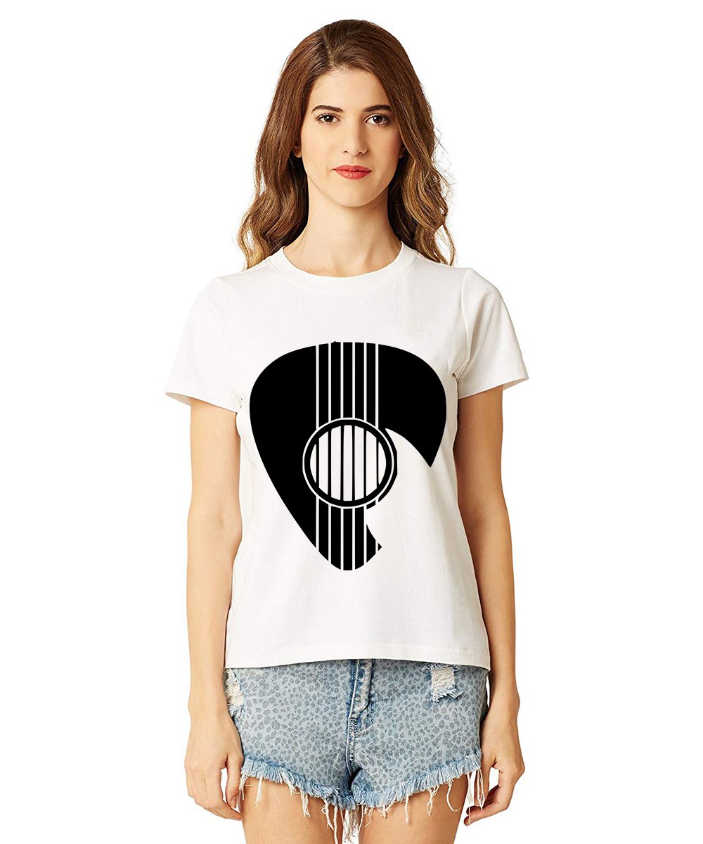 Caseria Women's Cotton Biowash Graphic Printed Half Sleeve T-Shirt - Guitar Coin
