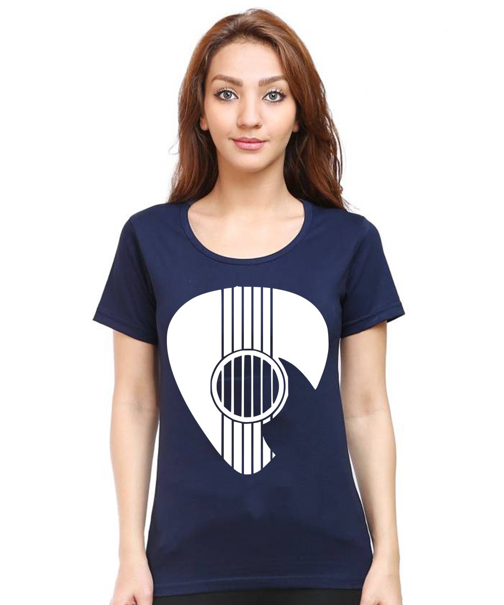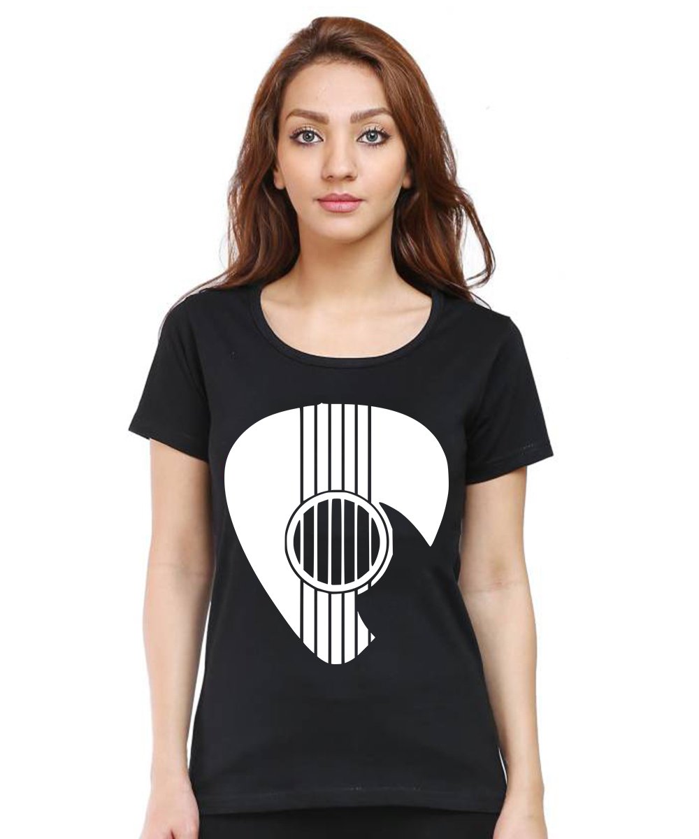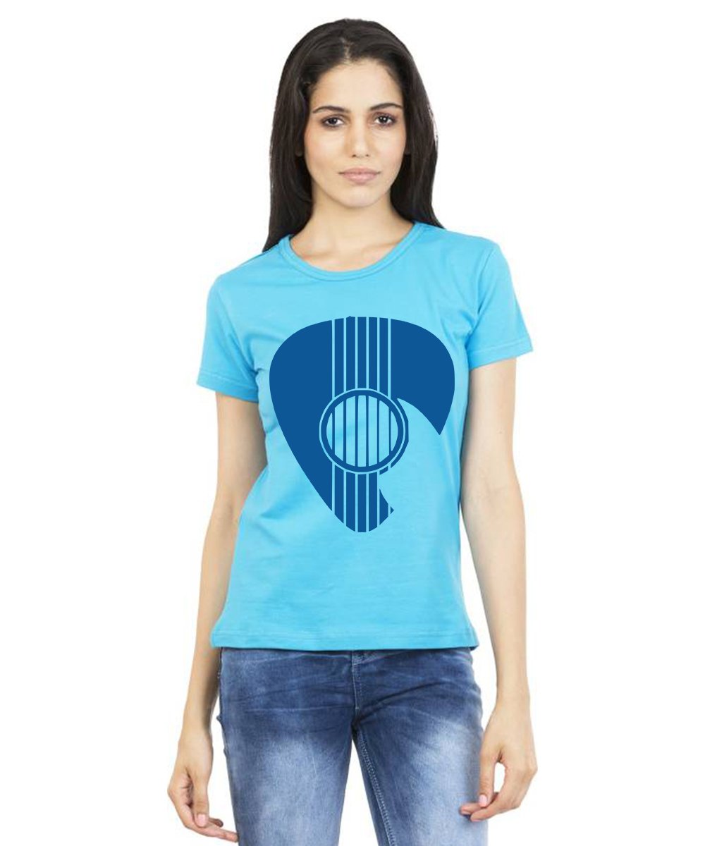 Caseria Women's Cotton Biowash Graphic Printed Half Sleeve T-Shirt - Guitar Coin