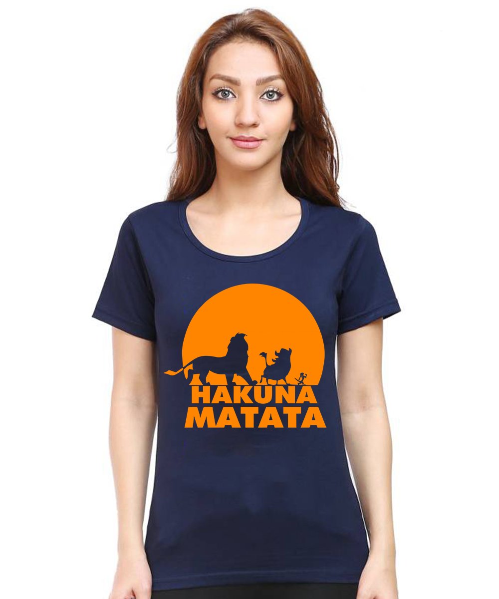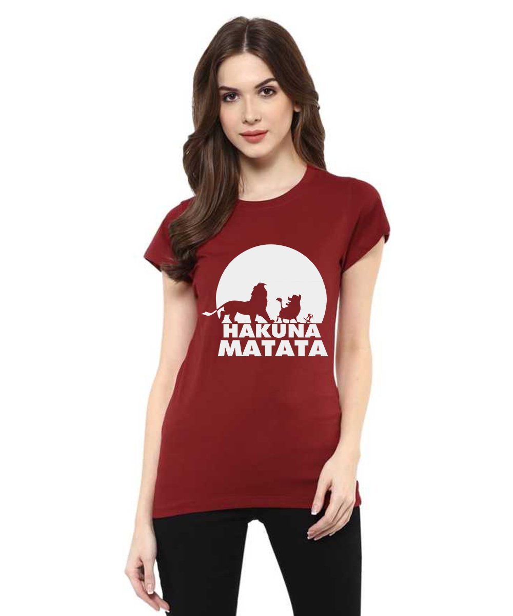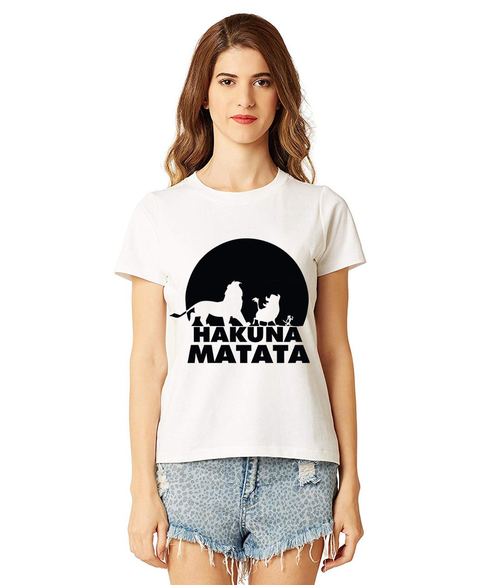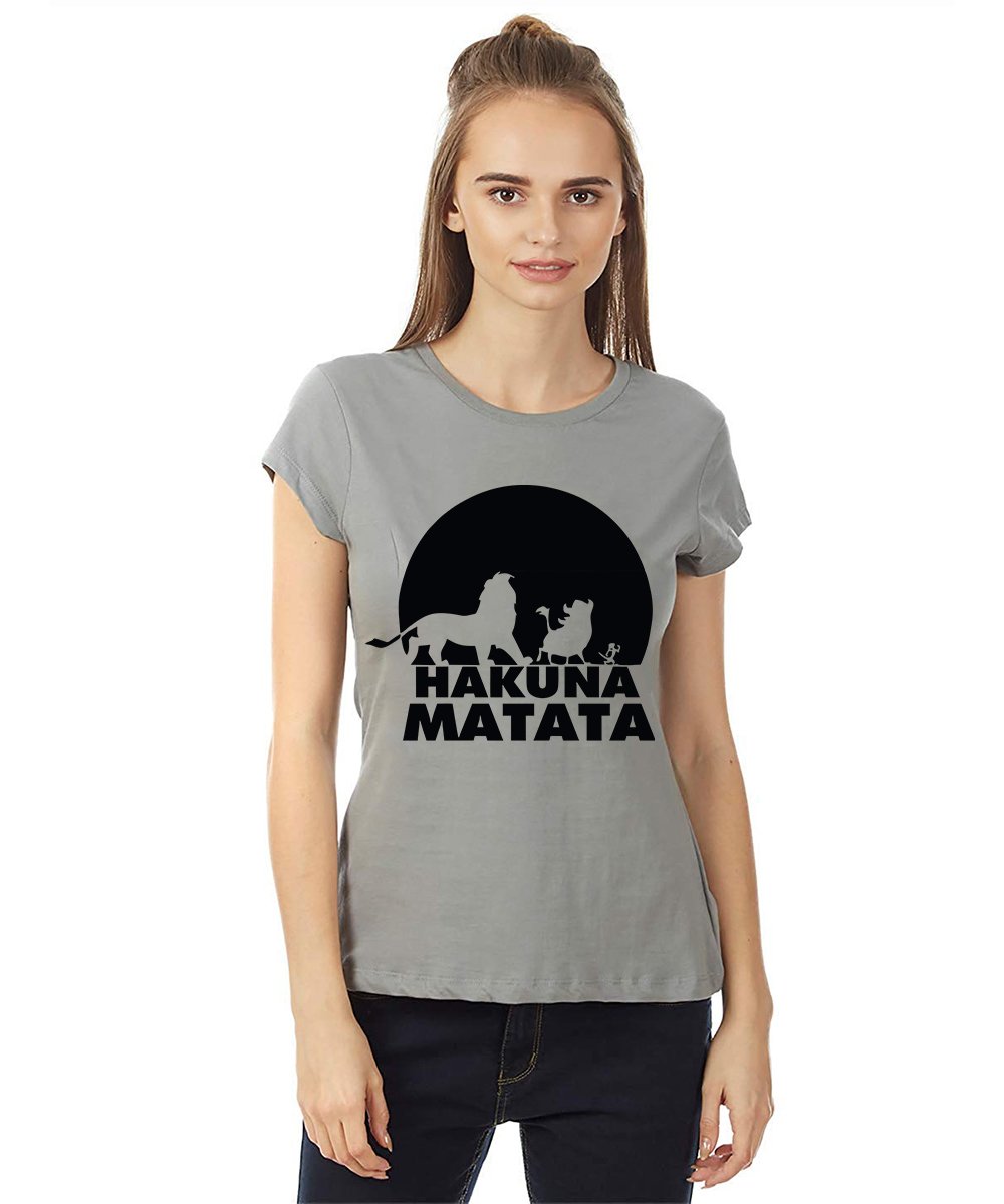 Caseria Women's Cotton Biowash Graphic Printed Half Sleeve T-Shirt - Hakuna Matata