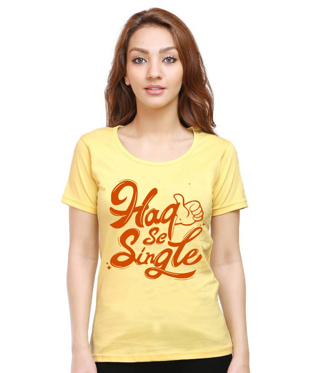 Caseria Women's Cotton Biowash Graphic Printed Half Sleeve T-Shirt - Haq Se Single