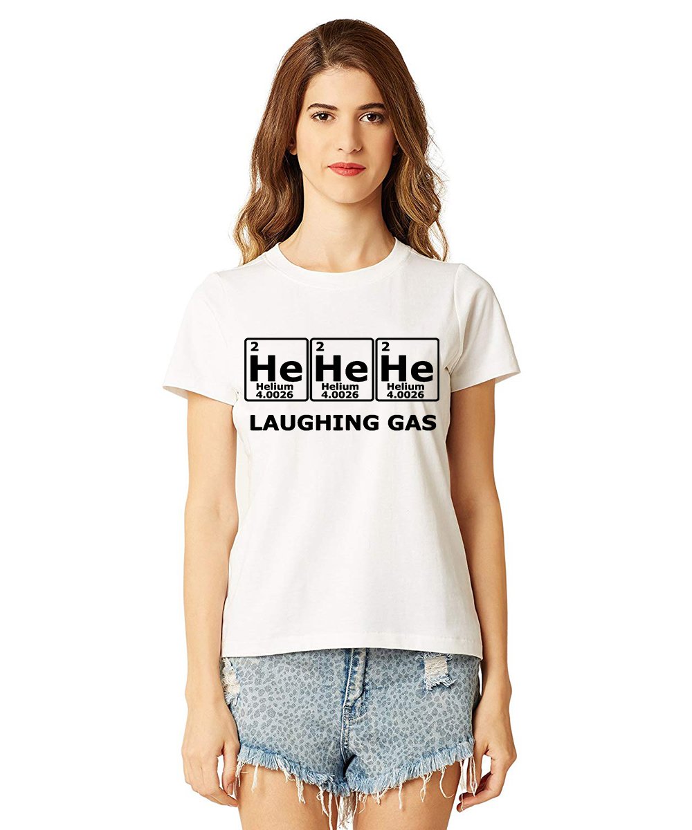 Caseria Women's Cotton Biowash Graphic Printed Half Sleeve T-Shirt - He Laughing Gas