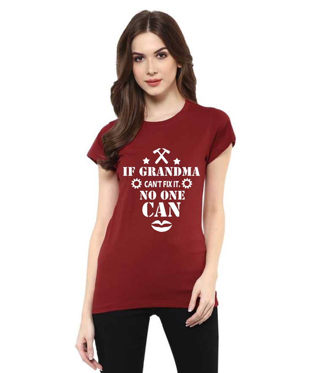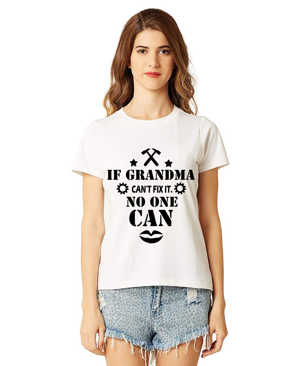 Caseria Women's Cotton Biowash Graphic Printed Half Sleeve T-Shirt - If Grandma…… Can