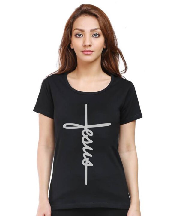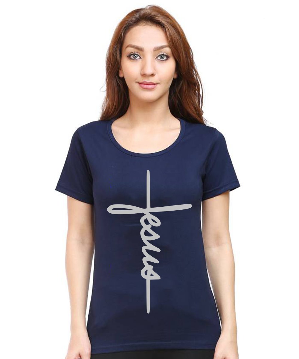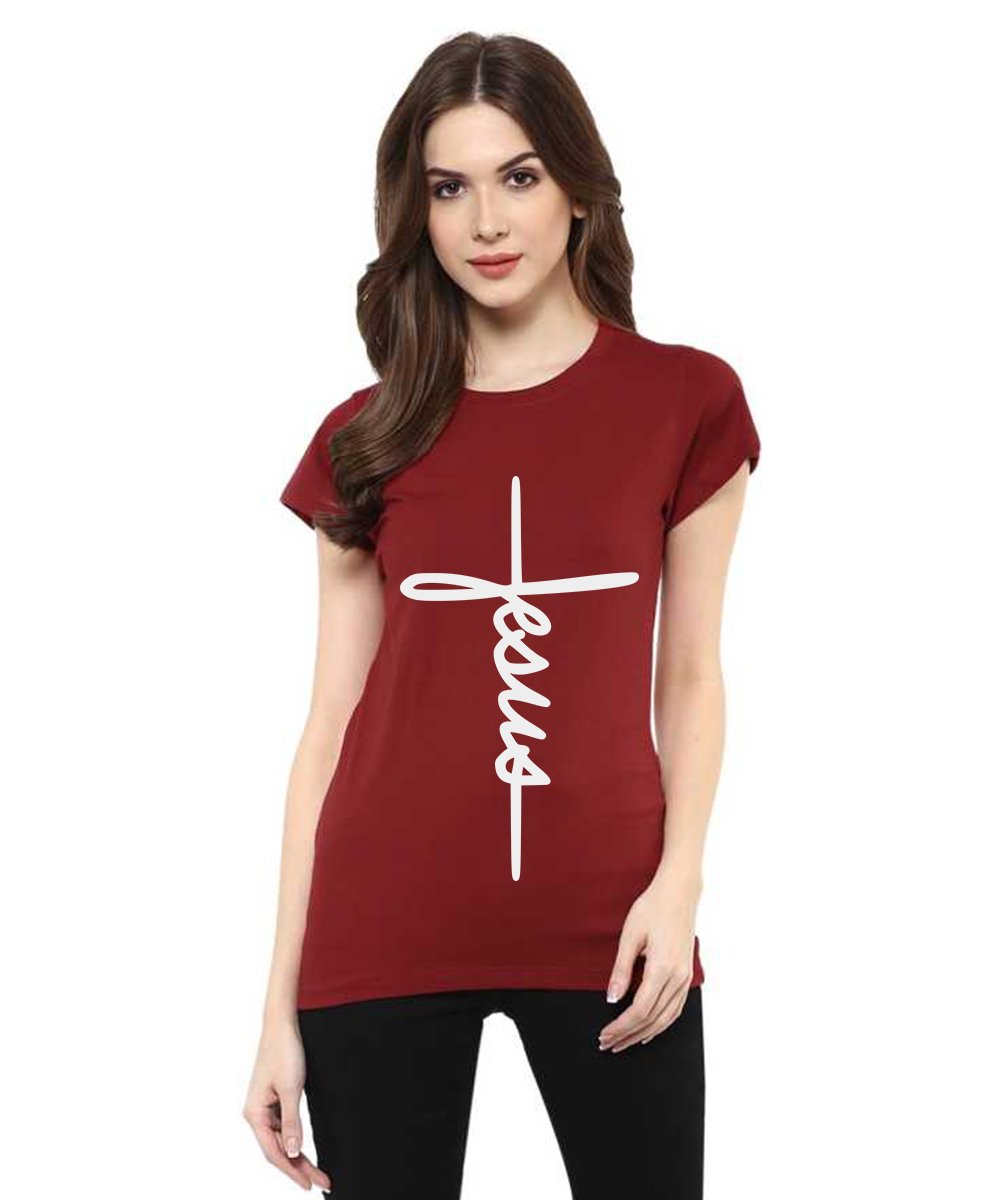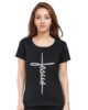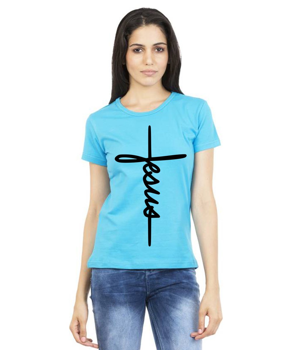 Caseria Women's Cotton Biowash Graphic Printed Half Sleeve T-Shirt - Jesus Cross Calligraphy