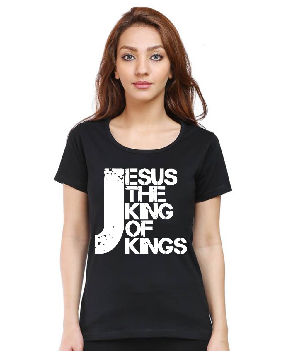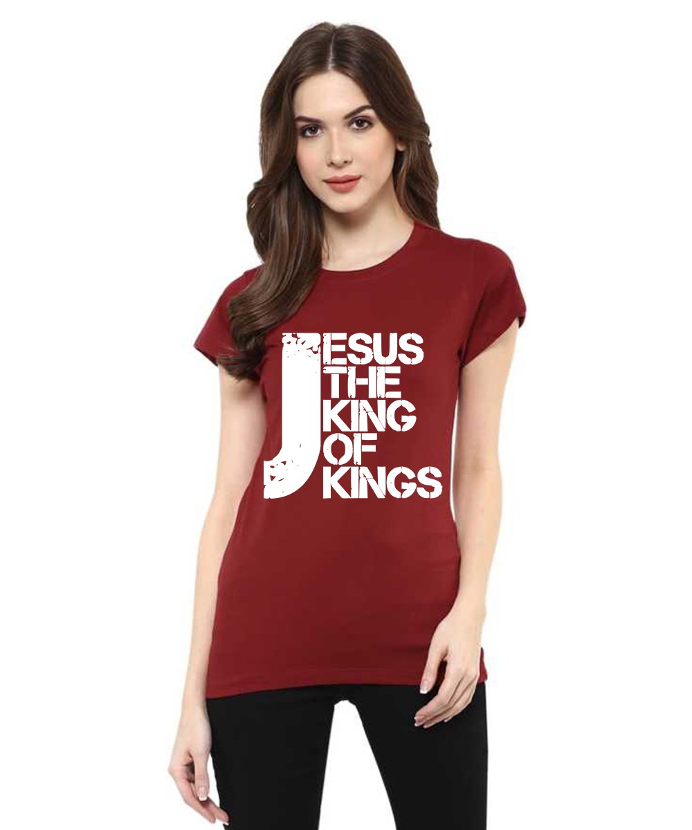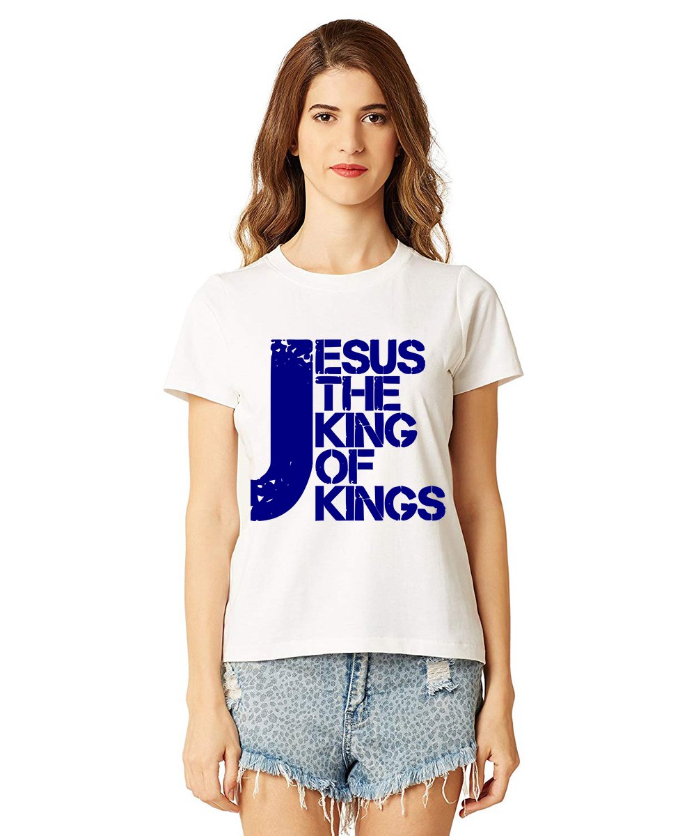 Caseria Women's Cotton Biowash Graphic Printed Half Sleeve T-Shirt - Jesus The King Of Kings
