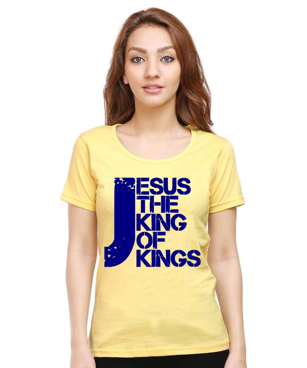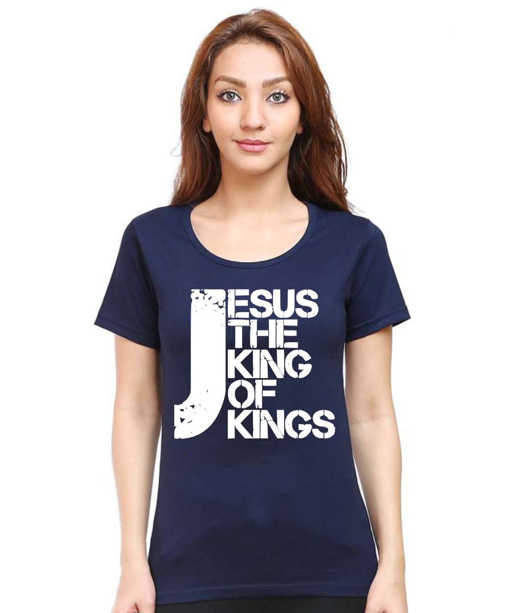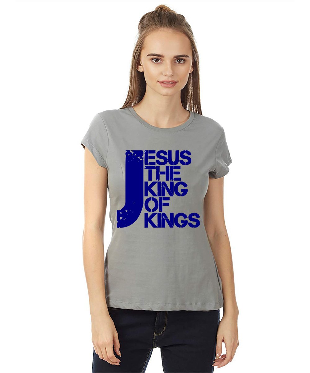 Caseria Women's Cotton Biowash Graphic Printed Half Sleeve T-Shirt - Jesus The King Of Kings