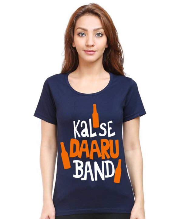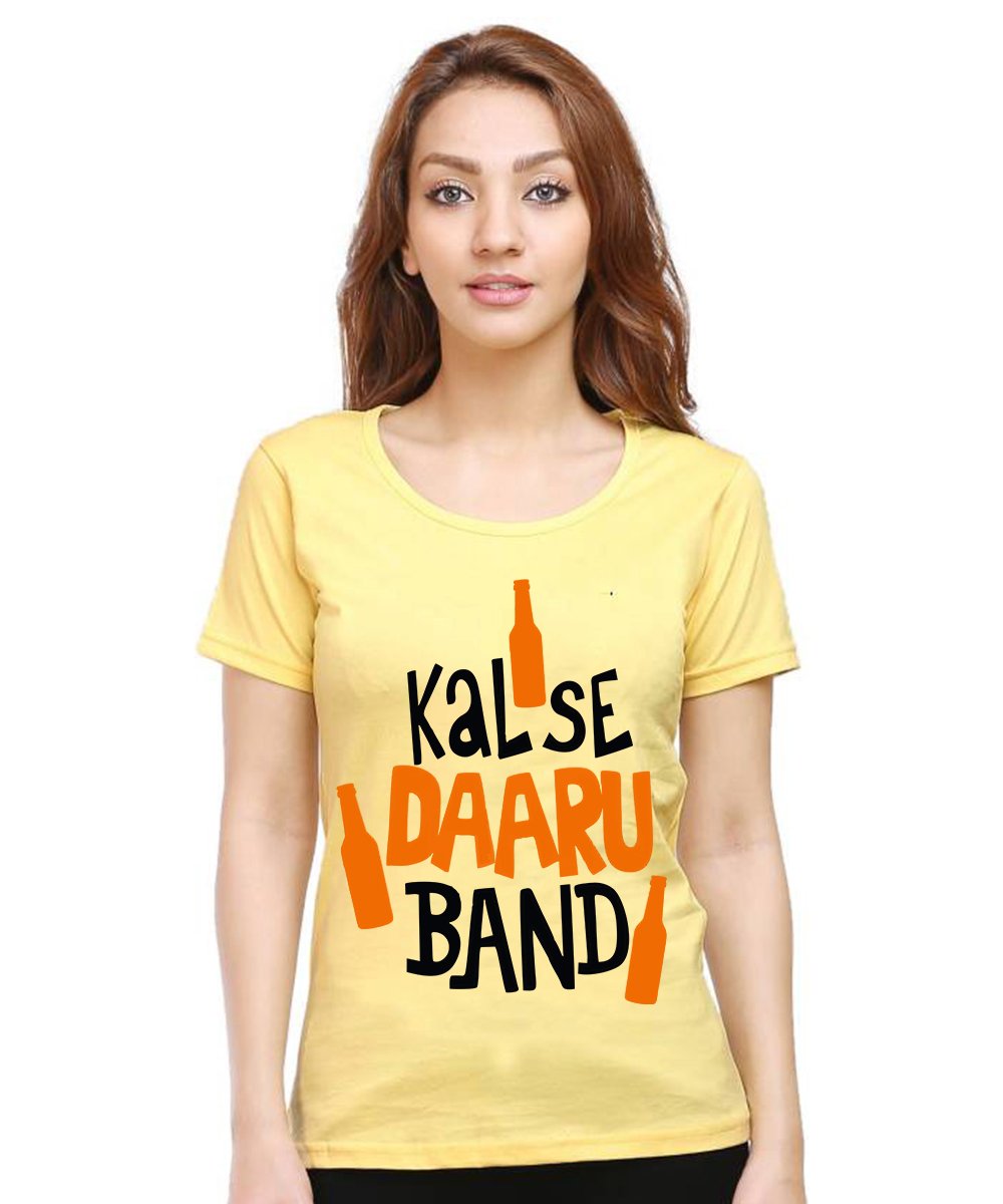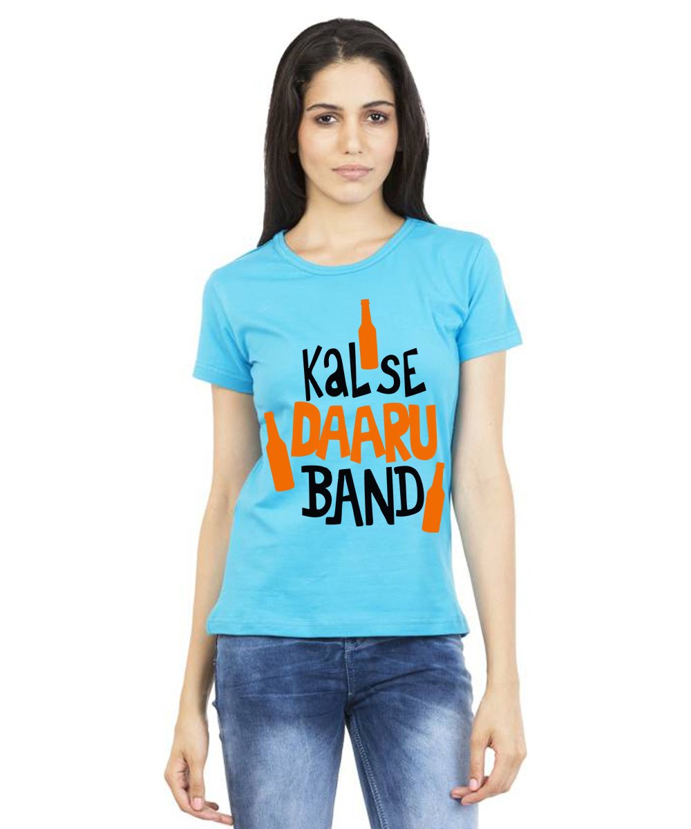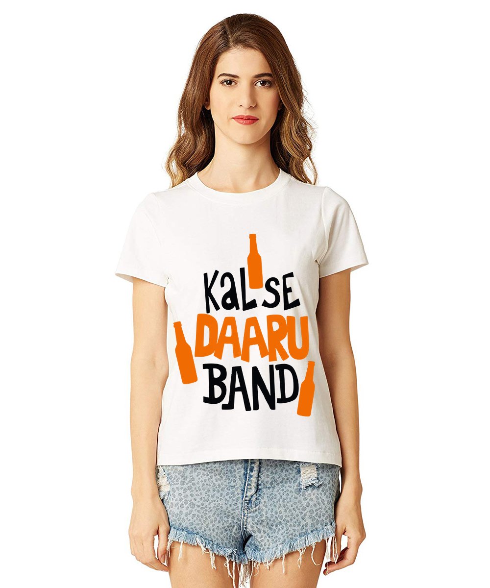 Caseria Women's Cotton Biowash Graphic Printed Half Sleeve T-Shirt - Kal Se Daaru Band