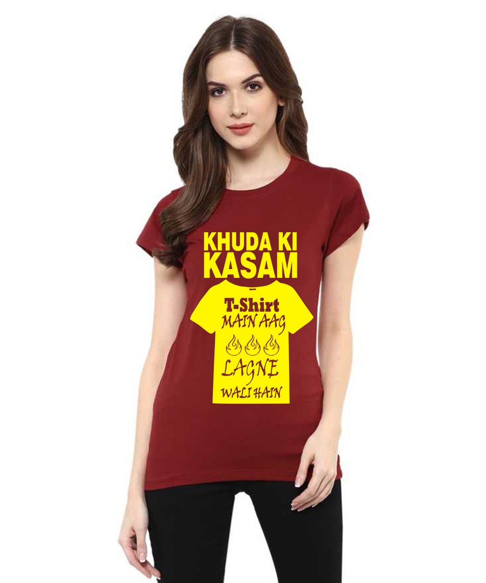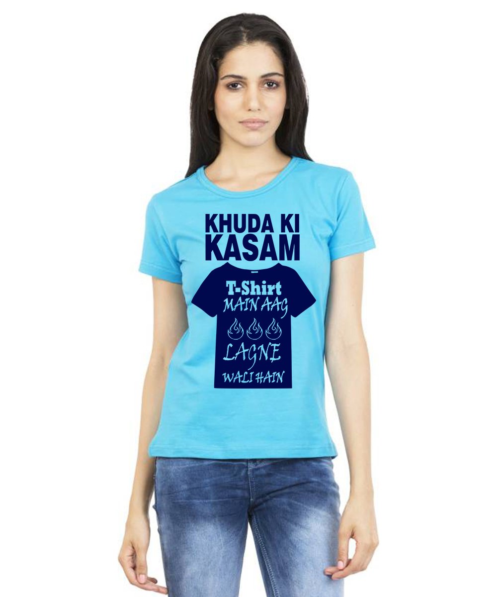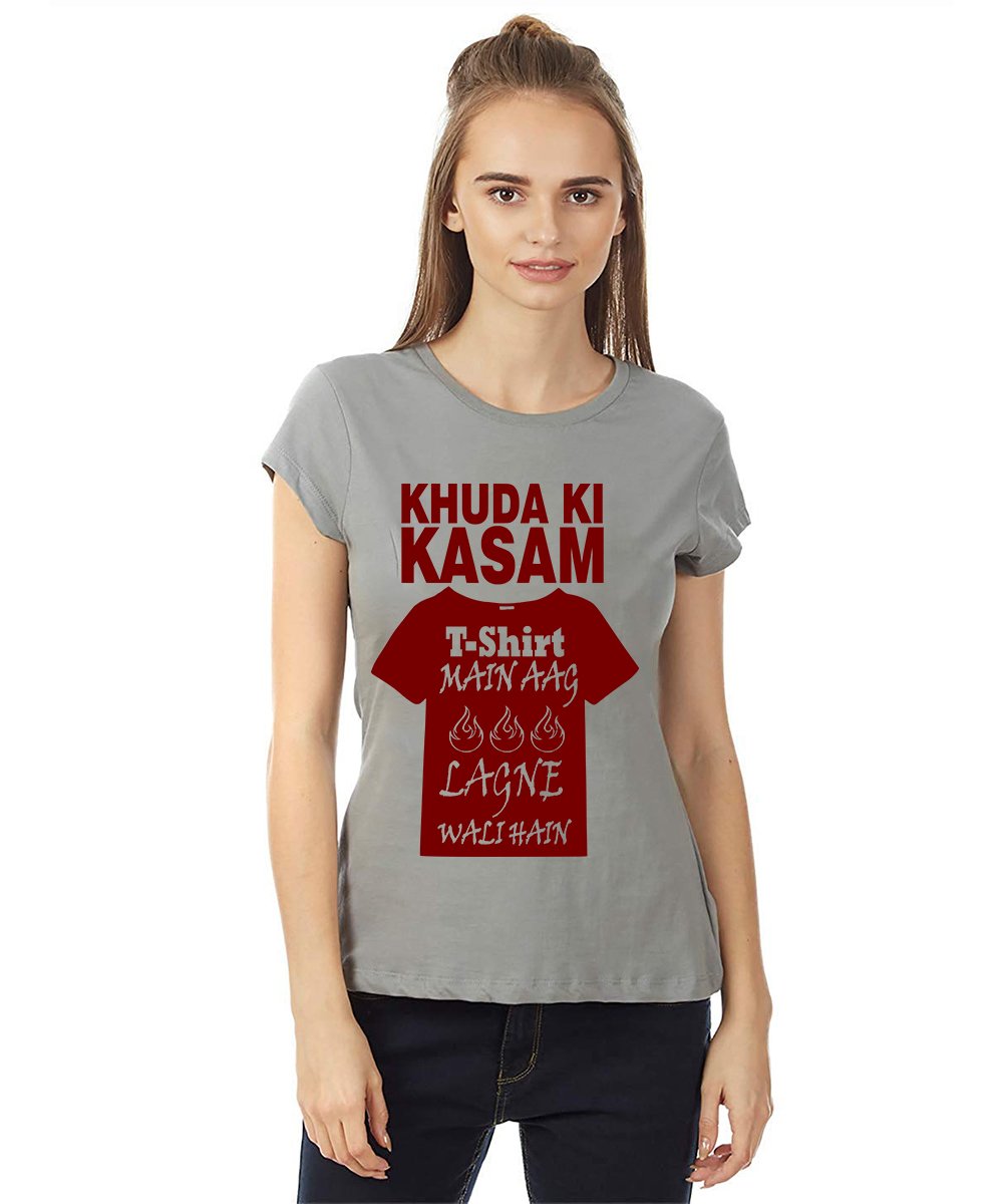 Caseria Women's Cotton Biowash Graphic Printed Half Sleeve T-Shirt - Khuda Kasam Tshirt