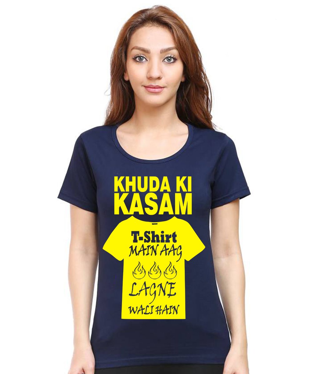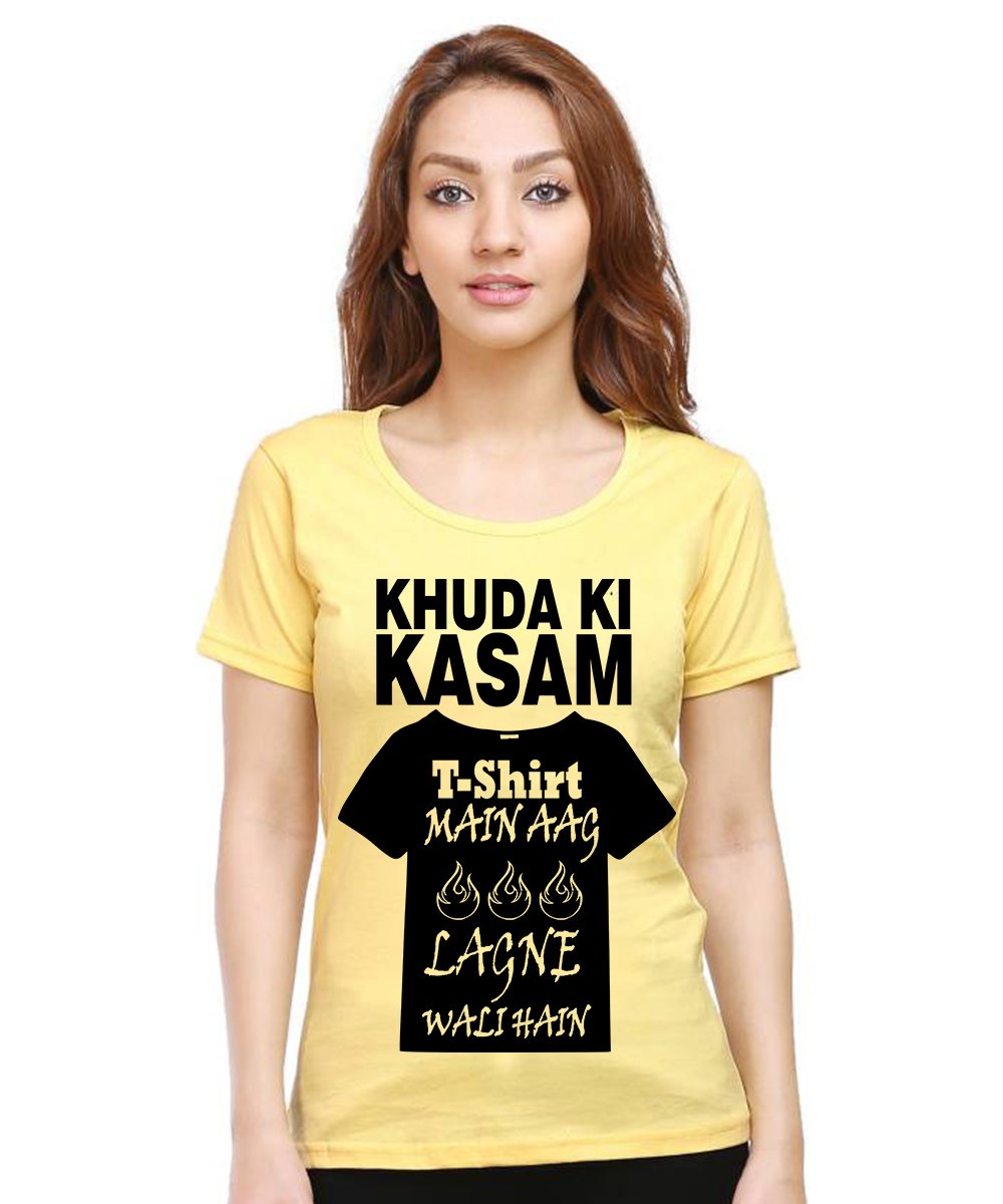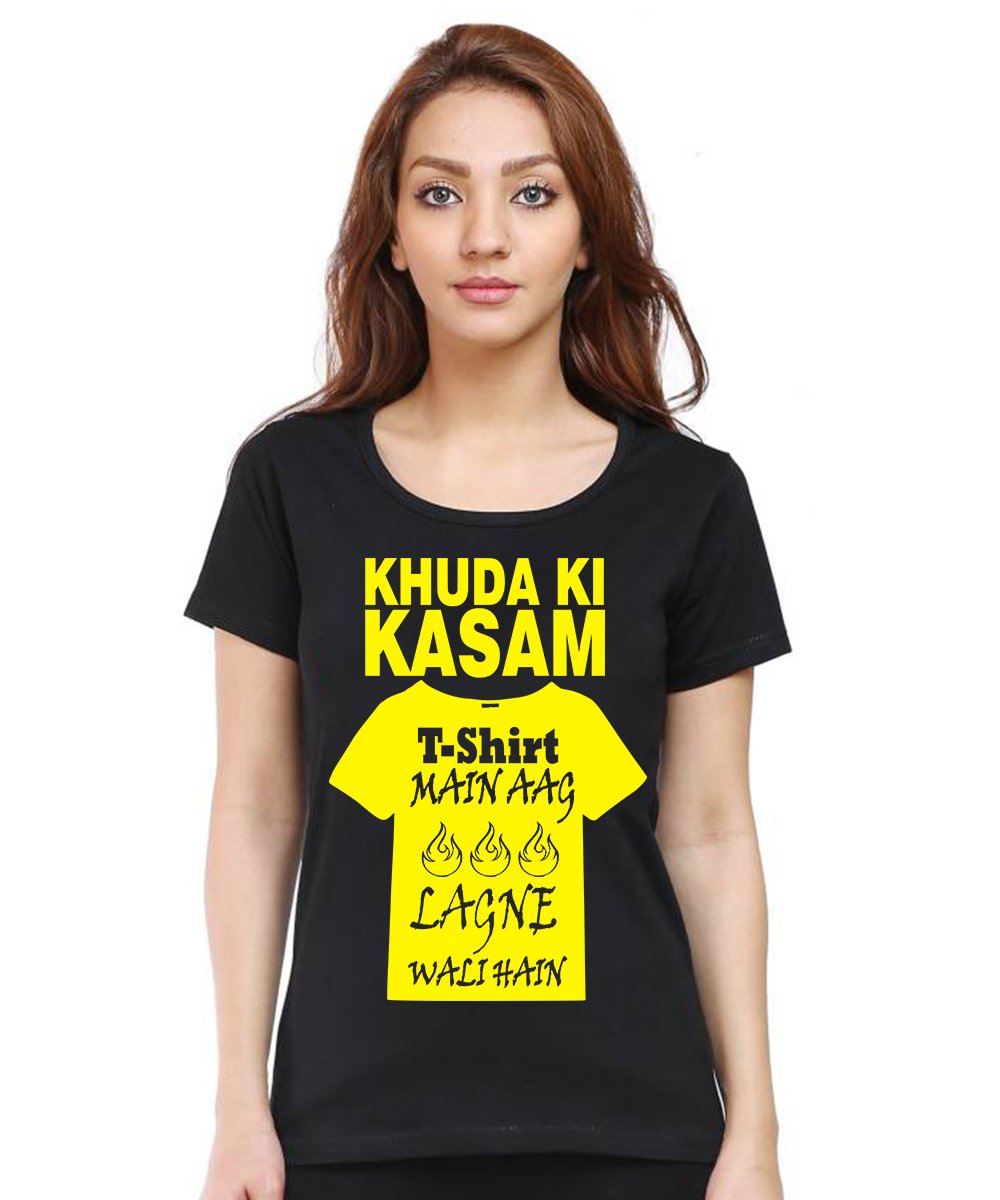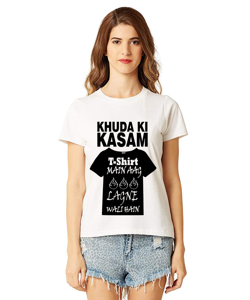 Caseria Women's Cotton Biowash Graphic Printed Half Sleeve T-Shirt - Khuda Kasam Tshirt