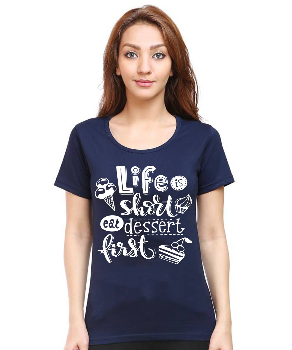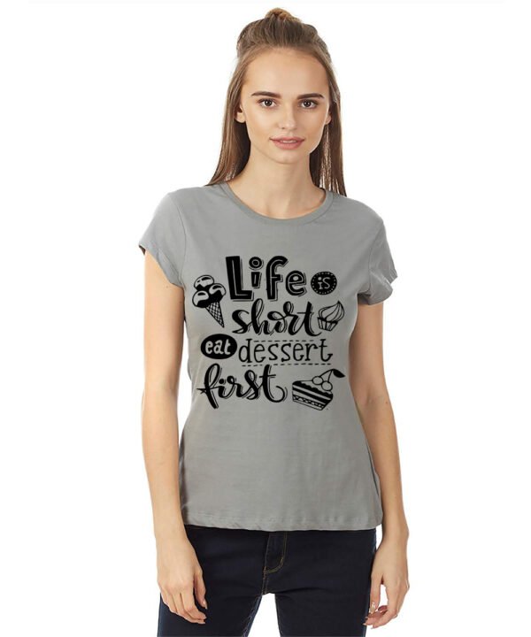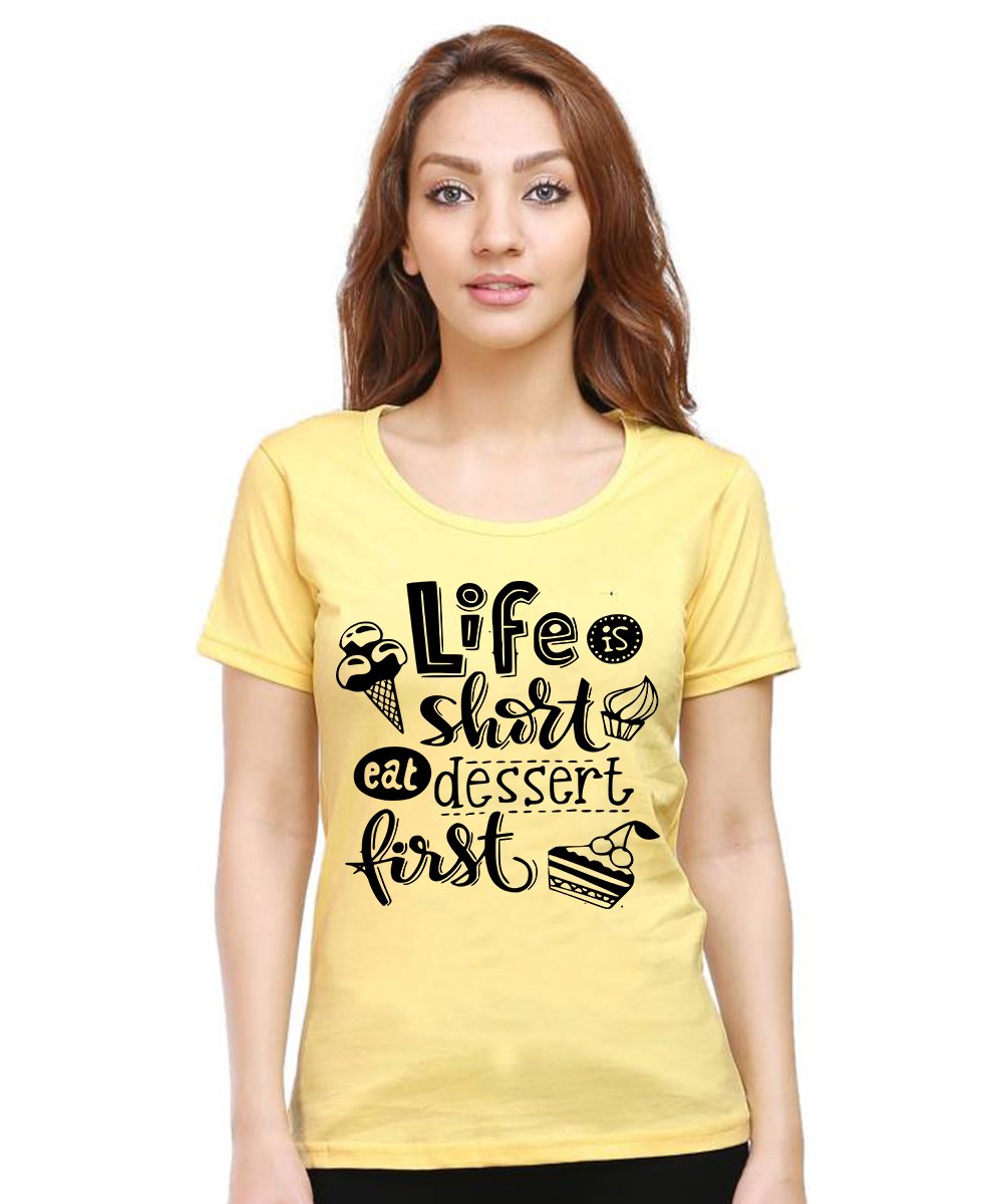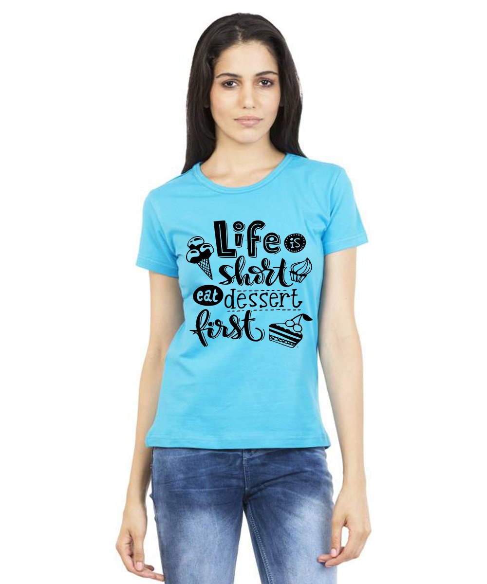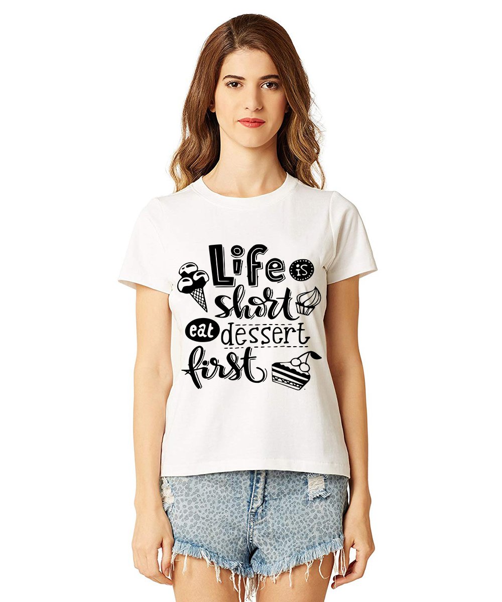 Caseria Women's Cotton Biowash Graphic Printed Half Sleeve T-Shirt - Life Short Eat Dessert