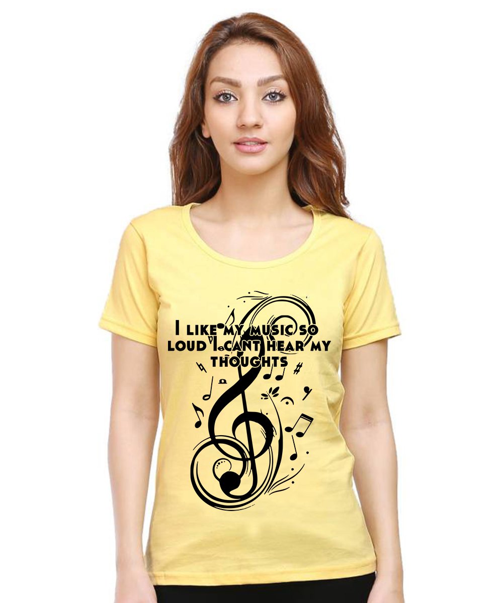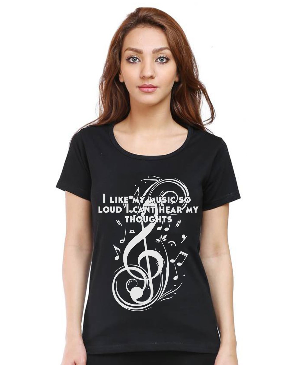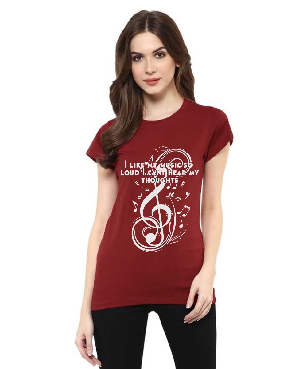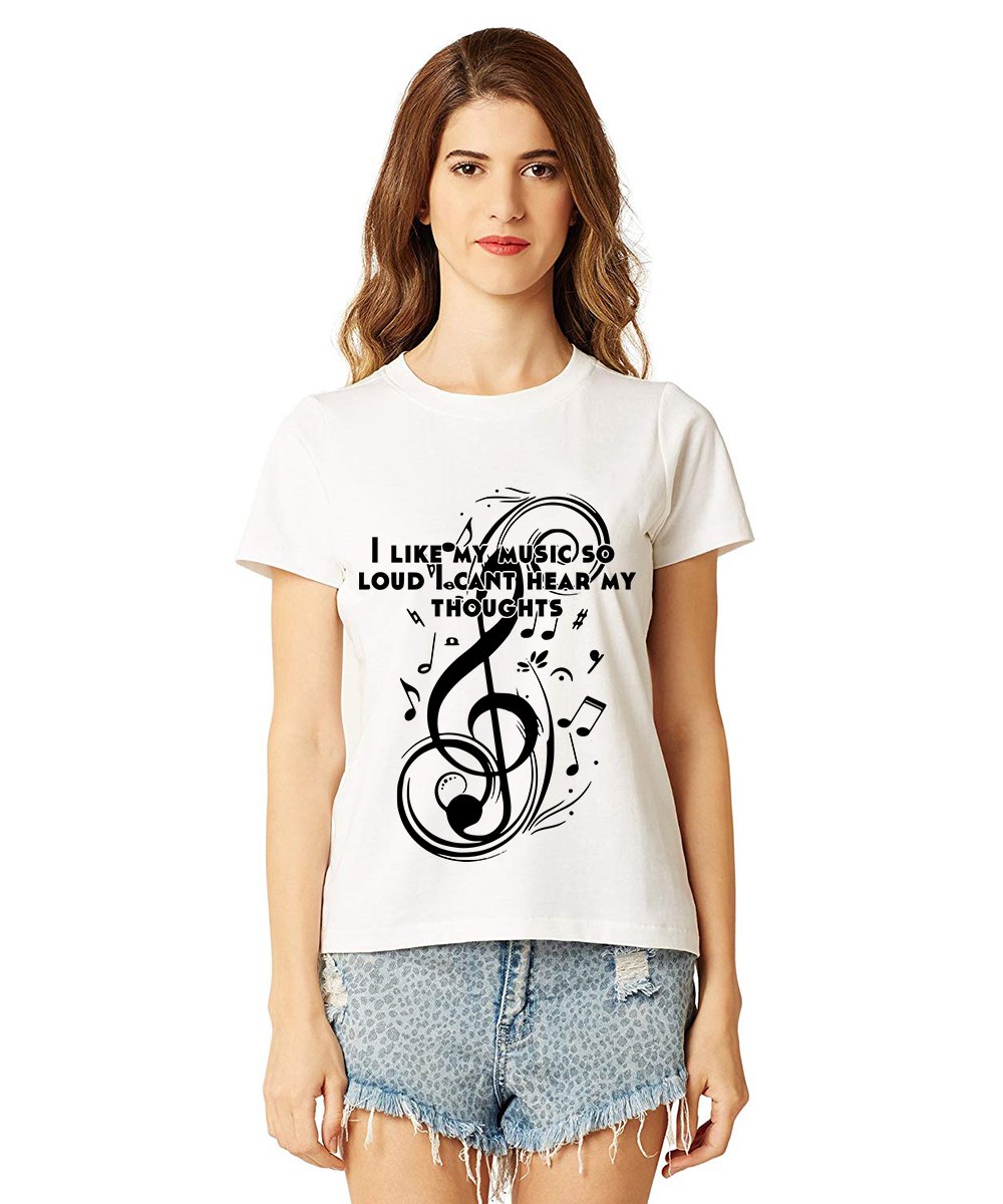 Caseria Women's Cotton Biowash Graphic Printed Half Sleeve T-Shirt - Like Music Loud