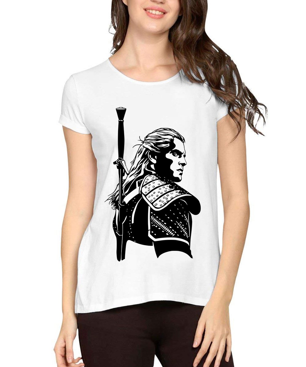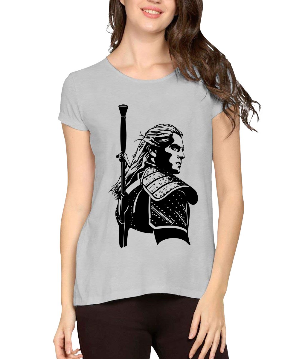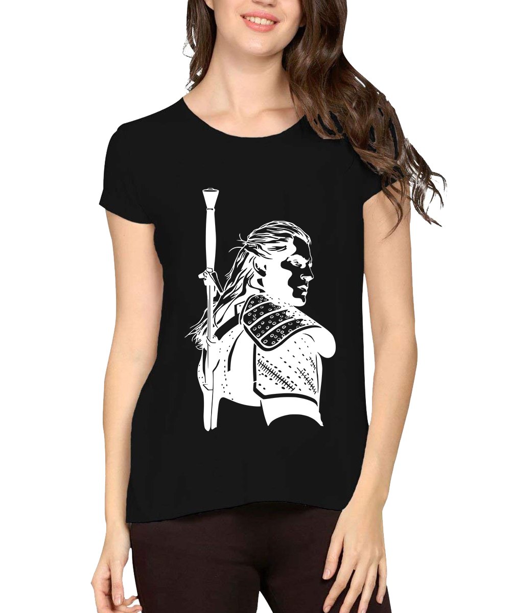 Caseria Women's Cotton Biowash Graphic Printed Half Sleeve T-Shirt - Man Witcher