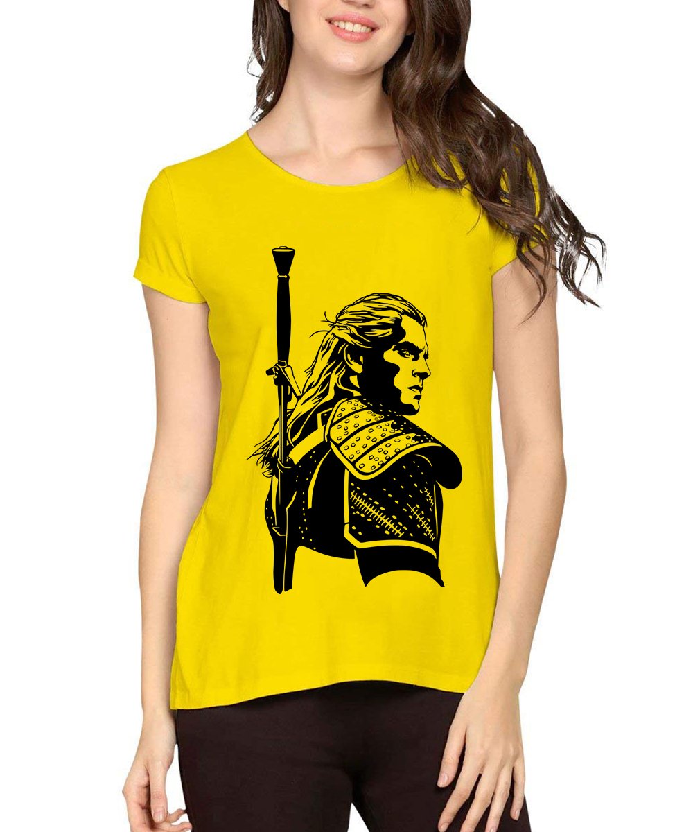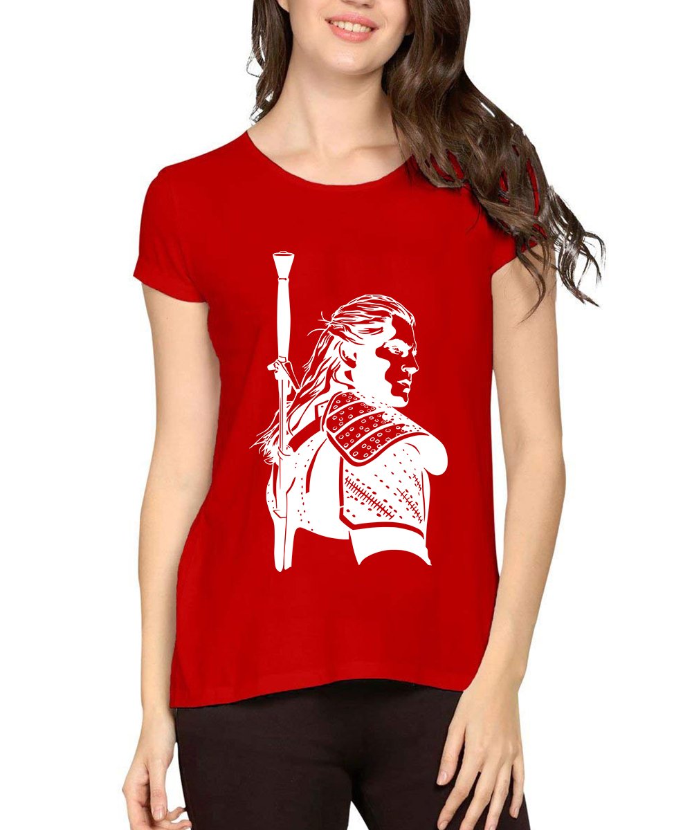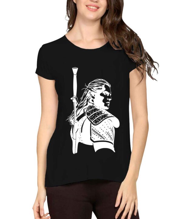 Caseria Women's Cotton Biowash Graphic Printed Half Sleeve T-Shirt - Man Witcher