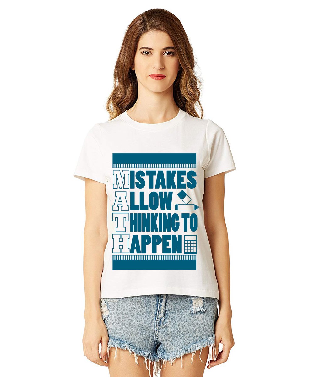 Caseria Women's Cotton Biowash Graphic Printed Half Sleeve T-Shirt - Math