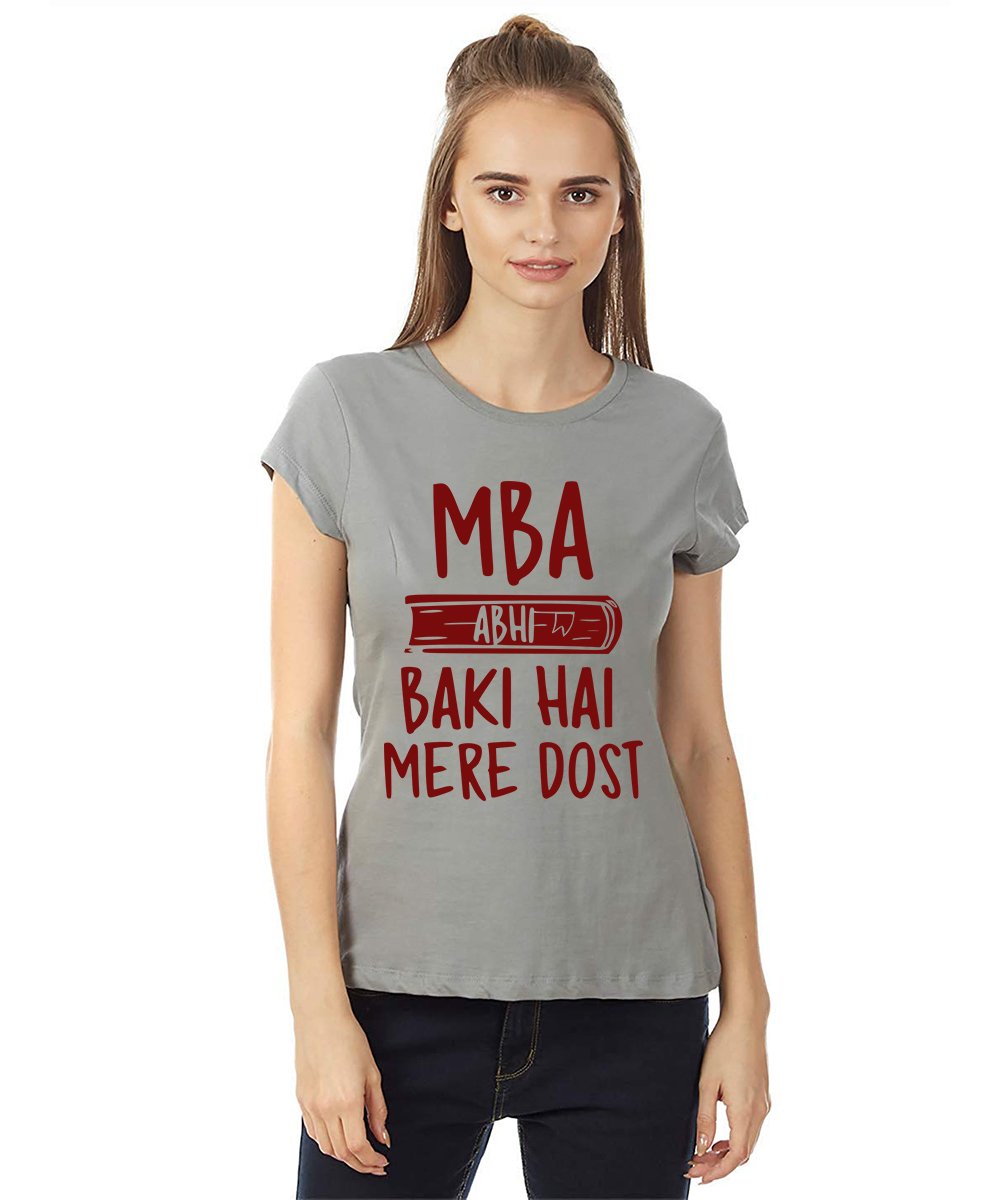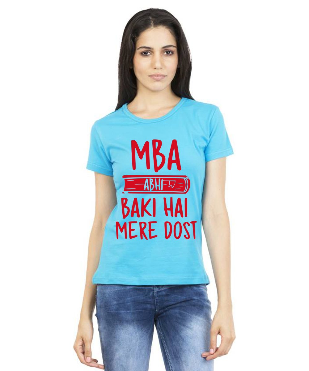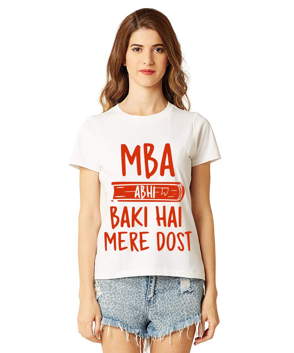Caseria Women's Cotton Biowash Graphic Printed Half Sleeve T-Shirt - Mba Abhi Baki Hai