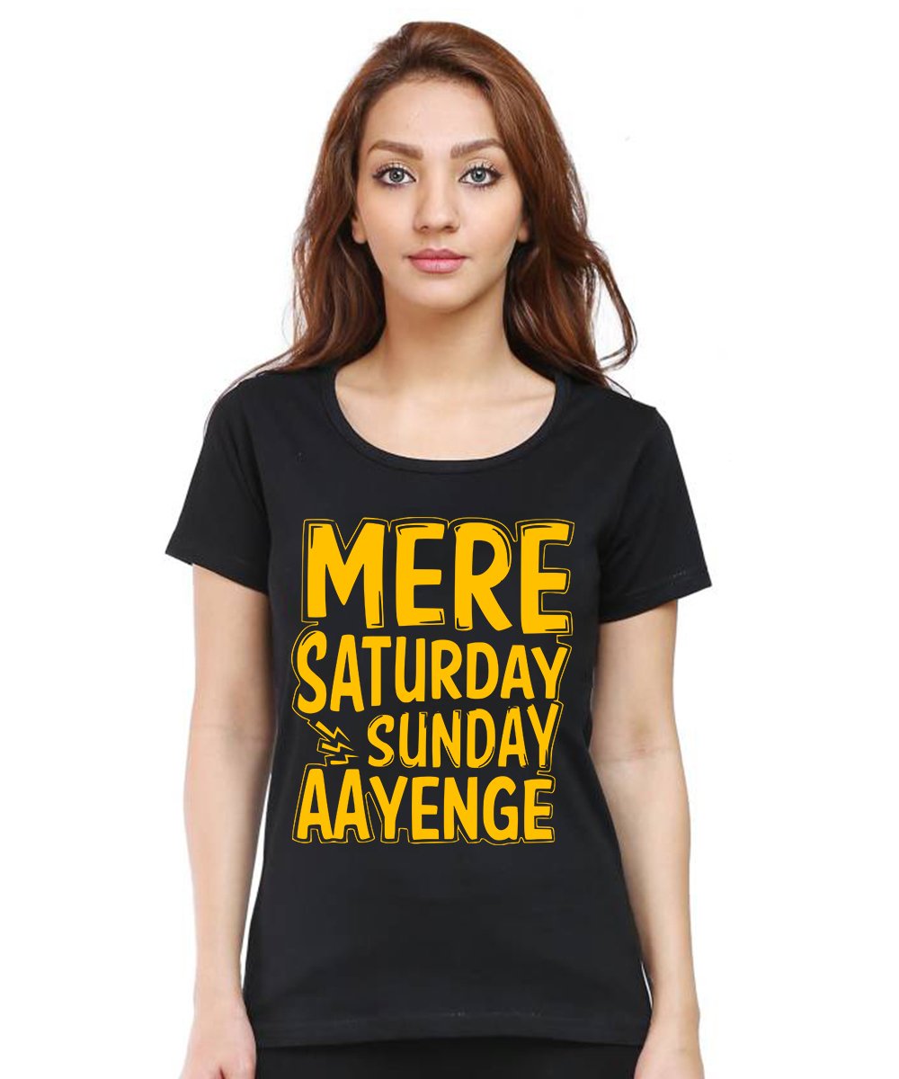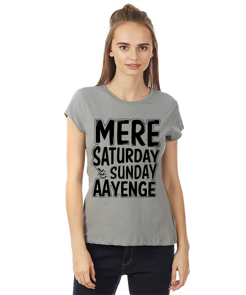 Caseria Women's Cotton Biowash Graphic Printed Half Sleeve T-Shirt - Mere Saturday Sunday Aayenge