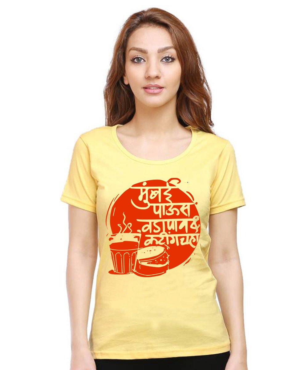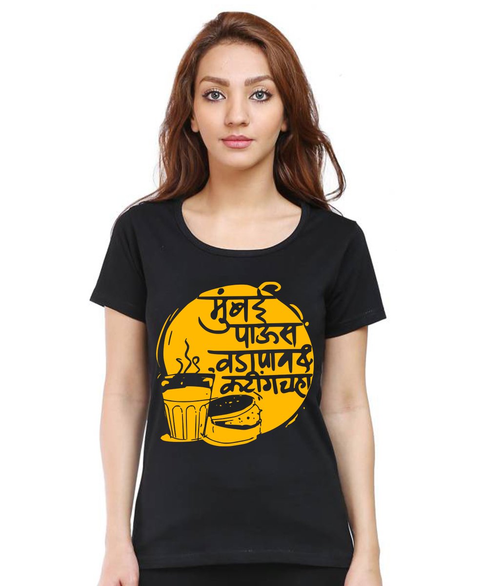Caseria Women's Cotton Biowash Graphic Printed Half Sleeve T-Shirt - Mumbai Vadapav Tea