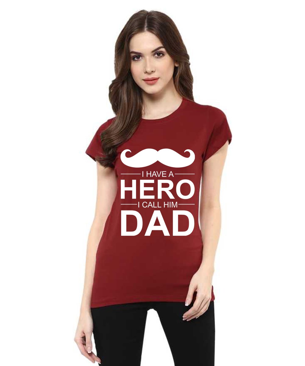Caseria Women's Cotton Biowash Graphic Printed Half Sleeve T-Shirt - My Hero - My Dad Pattern