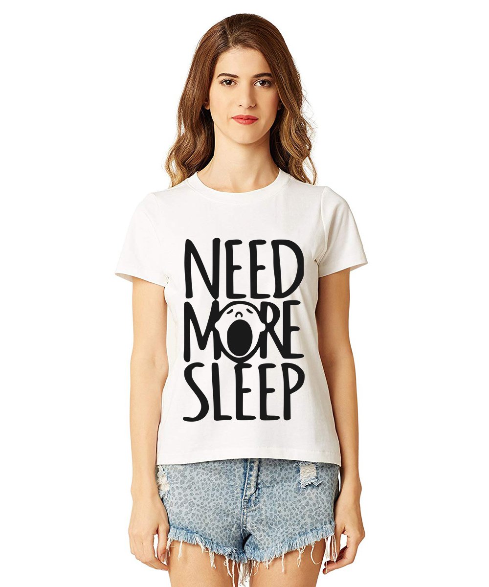 Caseria Women's Cotton Biowash Graphic Printed Half Sleeve T-Shirt - Need More Sleep