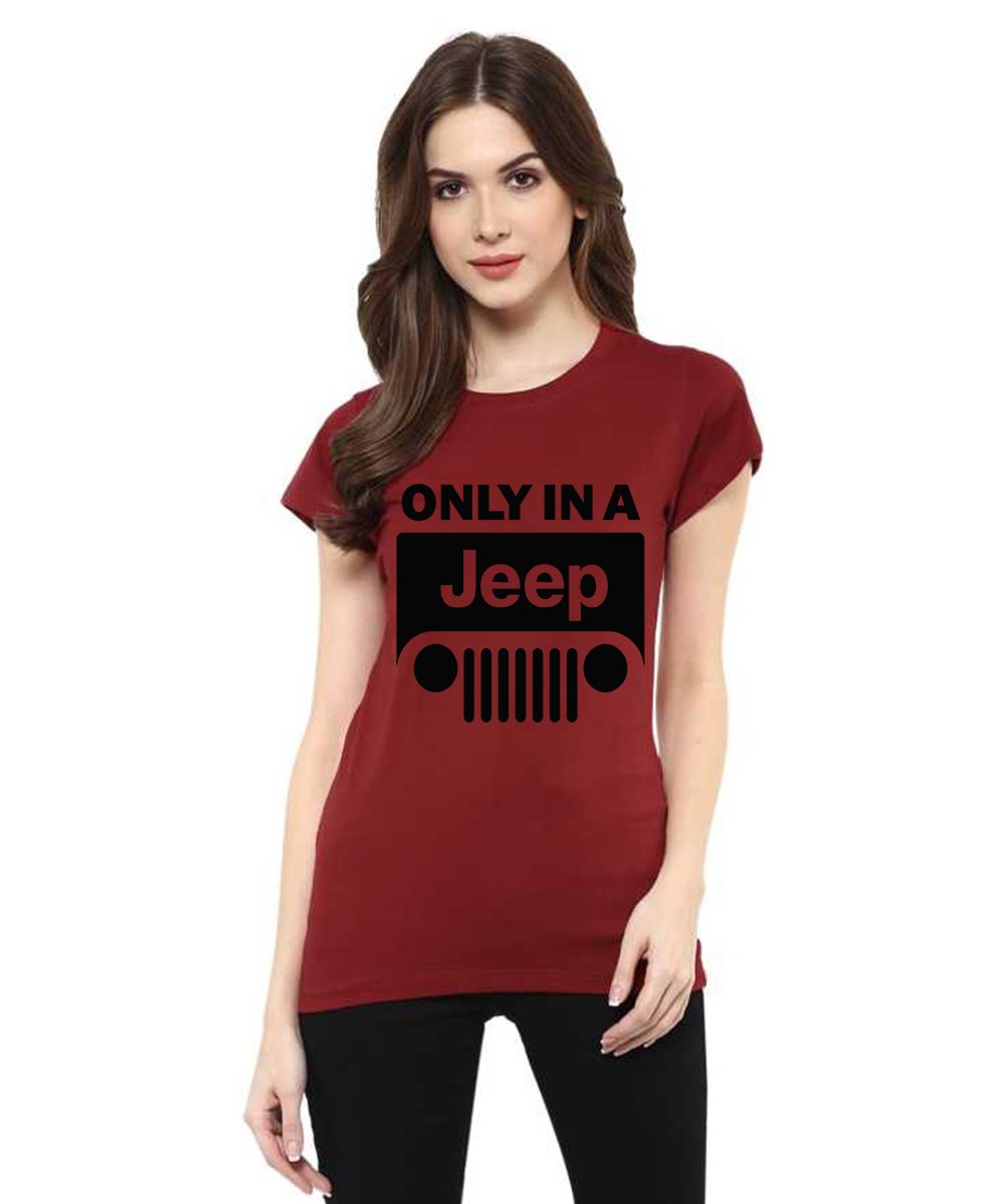 Caseria Women's Cotton Biowash Graphic Printed Half Sleeve T-Shirt - Only In A Jeep