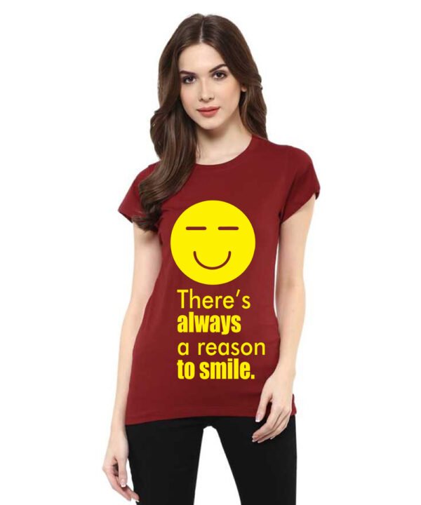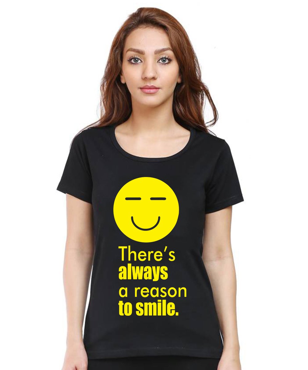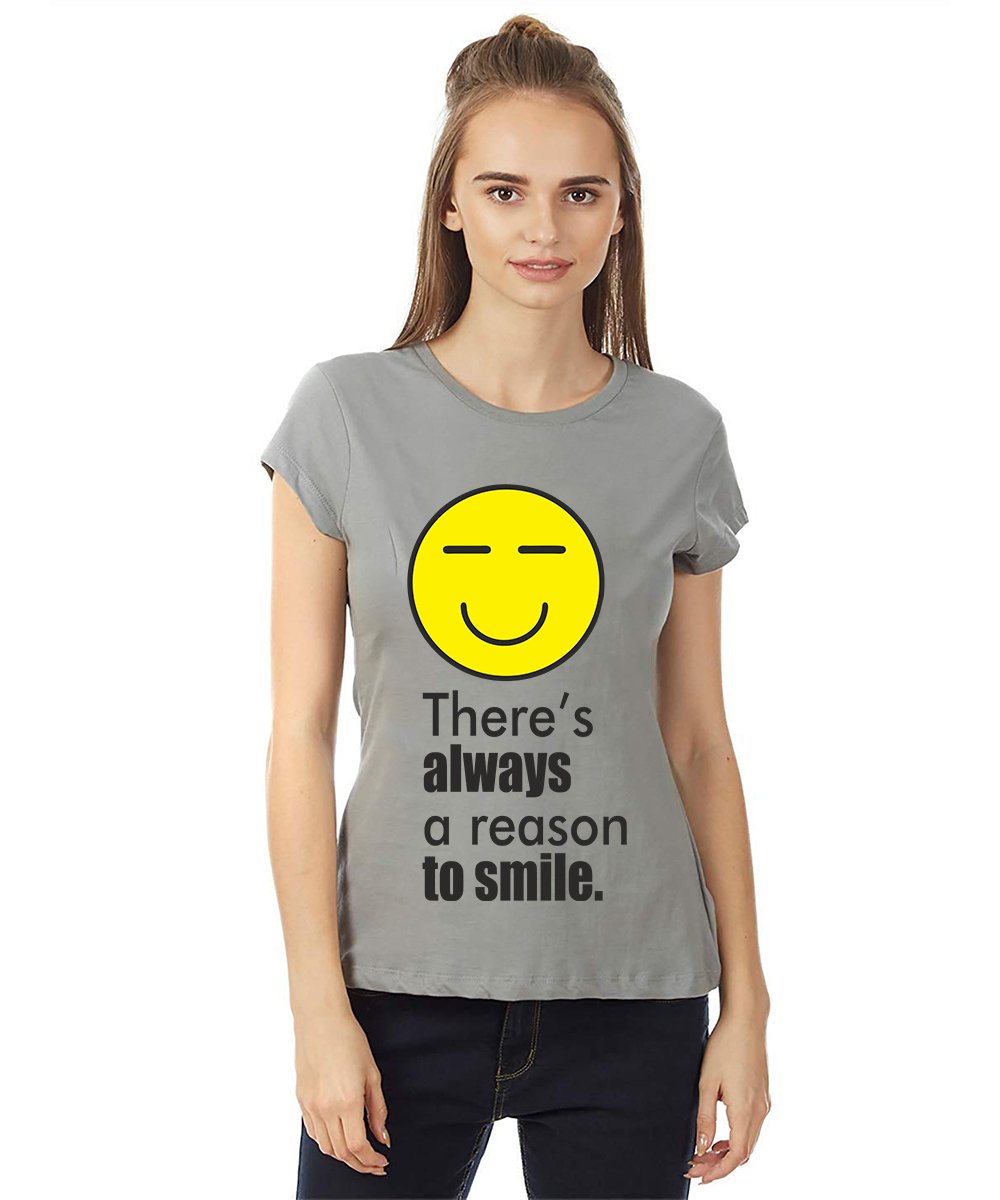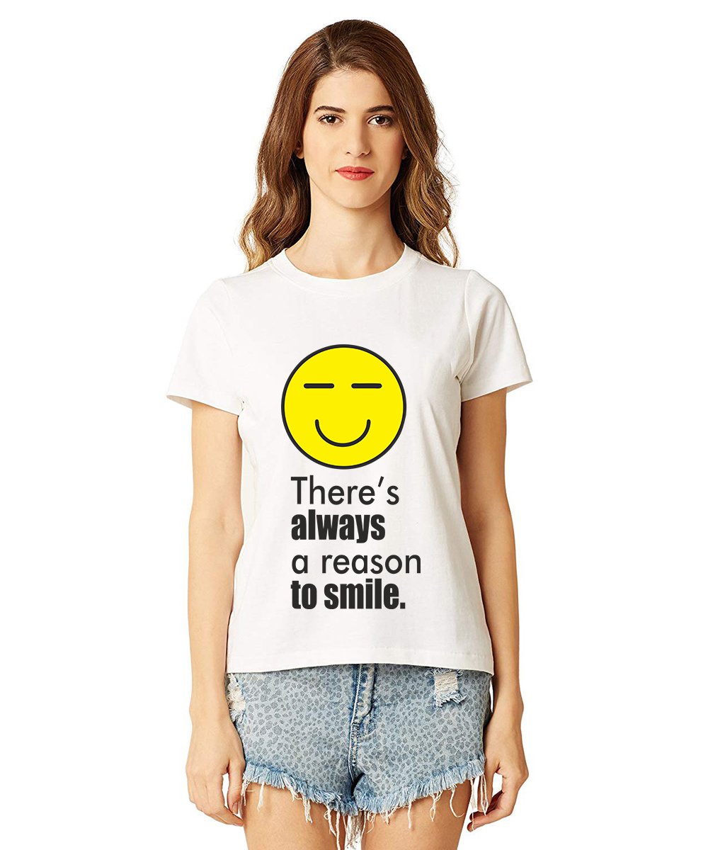 Caseria Women's Cotton Biowash Graphic Printed Half Sleeve T-Shirt - Reason To Smile Pattern