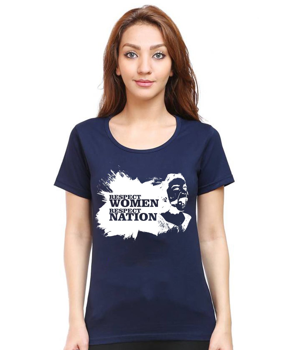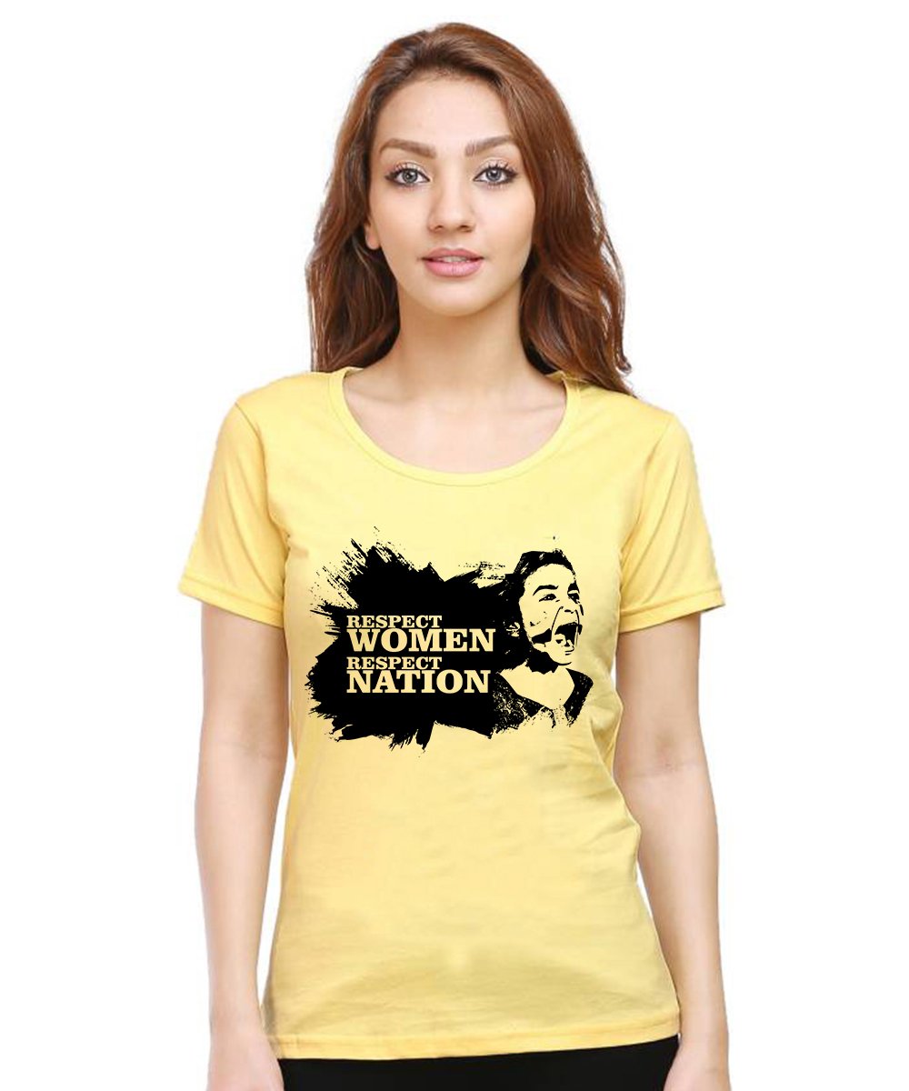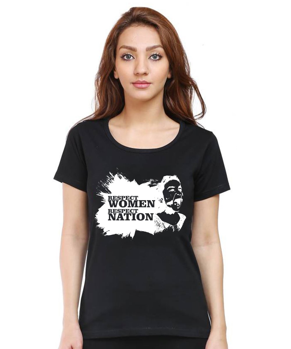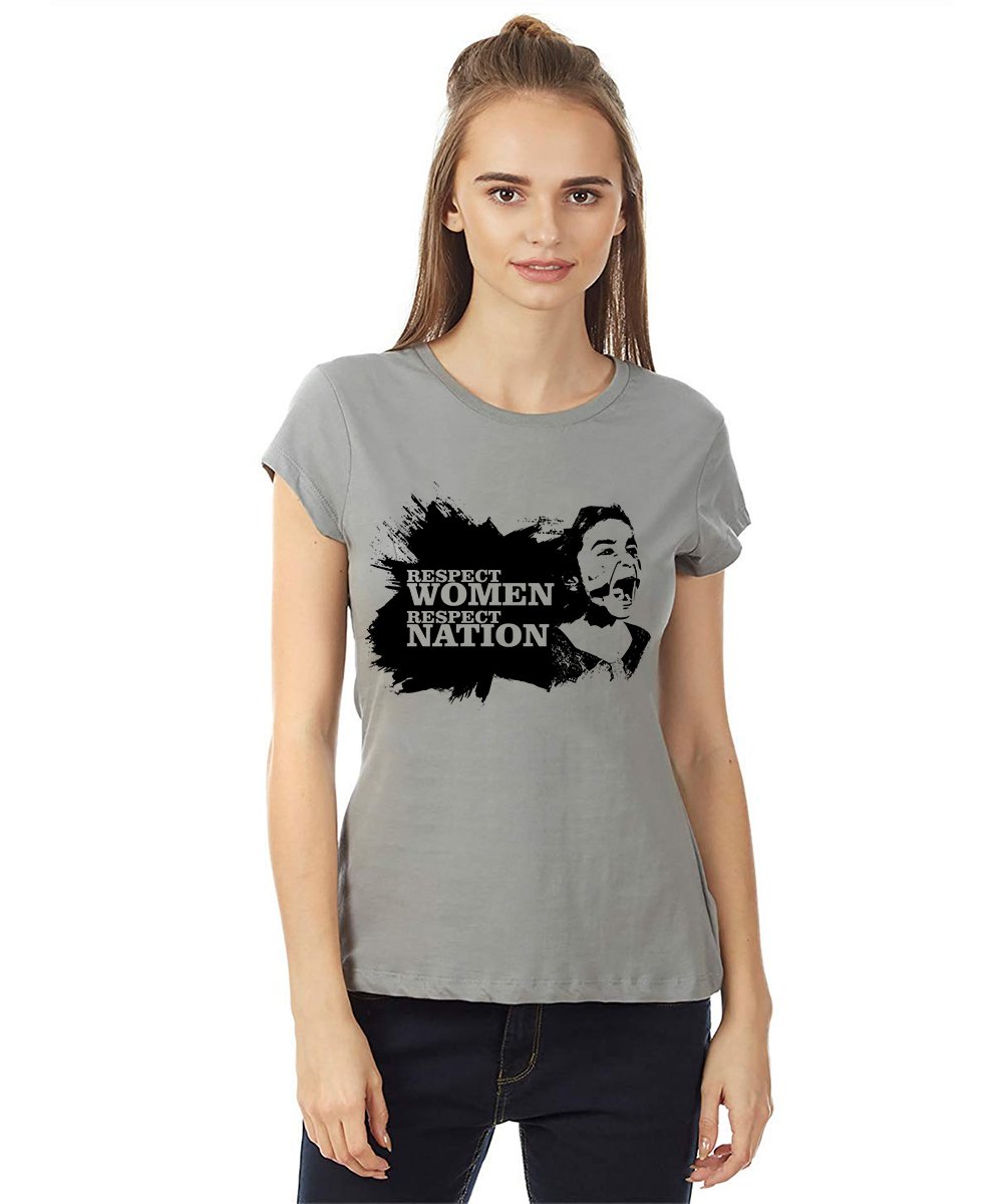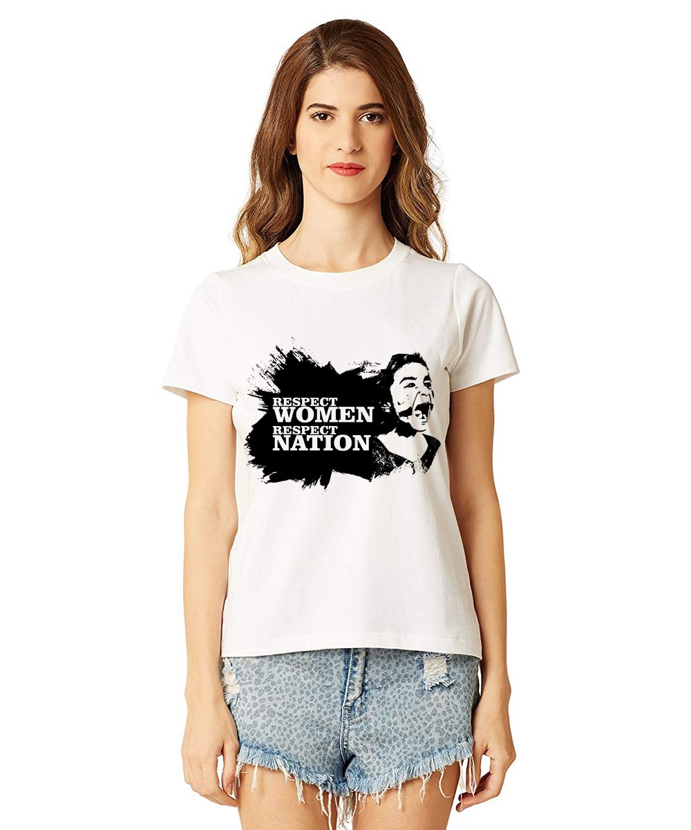 Caseria Women's Cotton Biowash Graphic Printed Half Sleeve T-Shirt - Respect Women Respect Nation