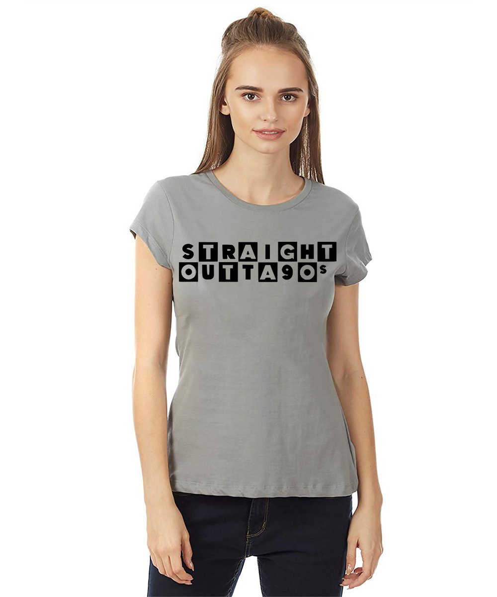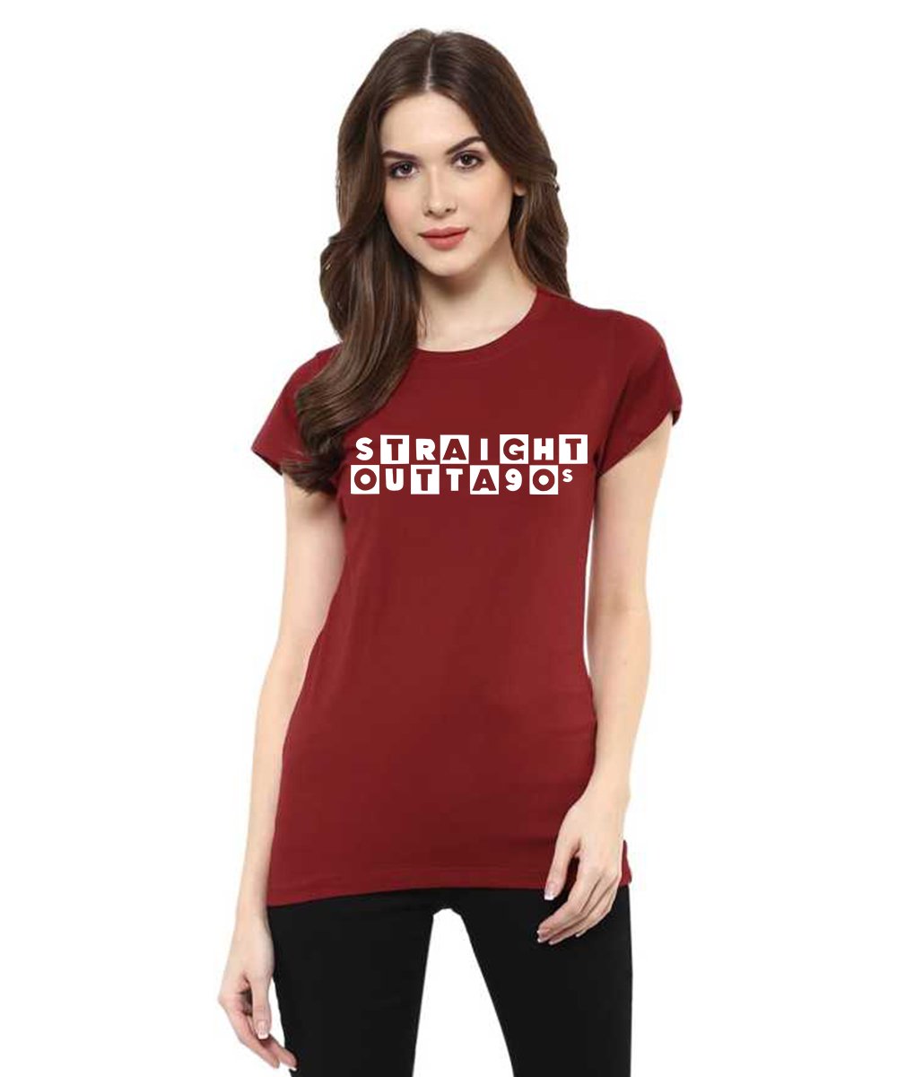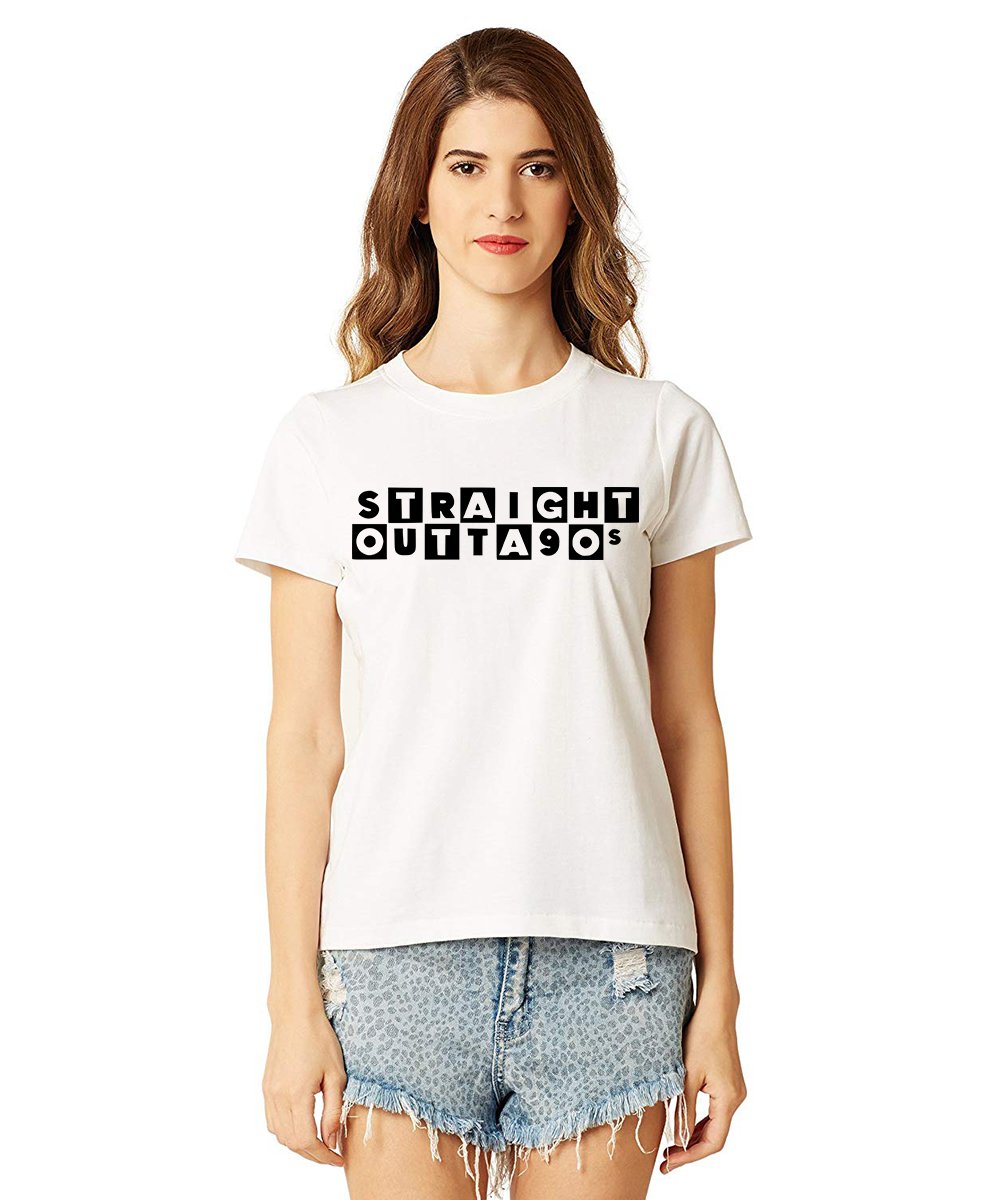 Caseria Women's Cotton Biowash Graphic Printed Half Sleeve T-Shirt - Straight Outta 90s