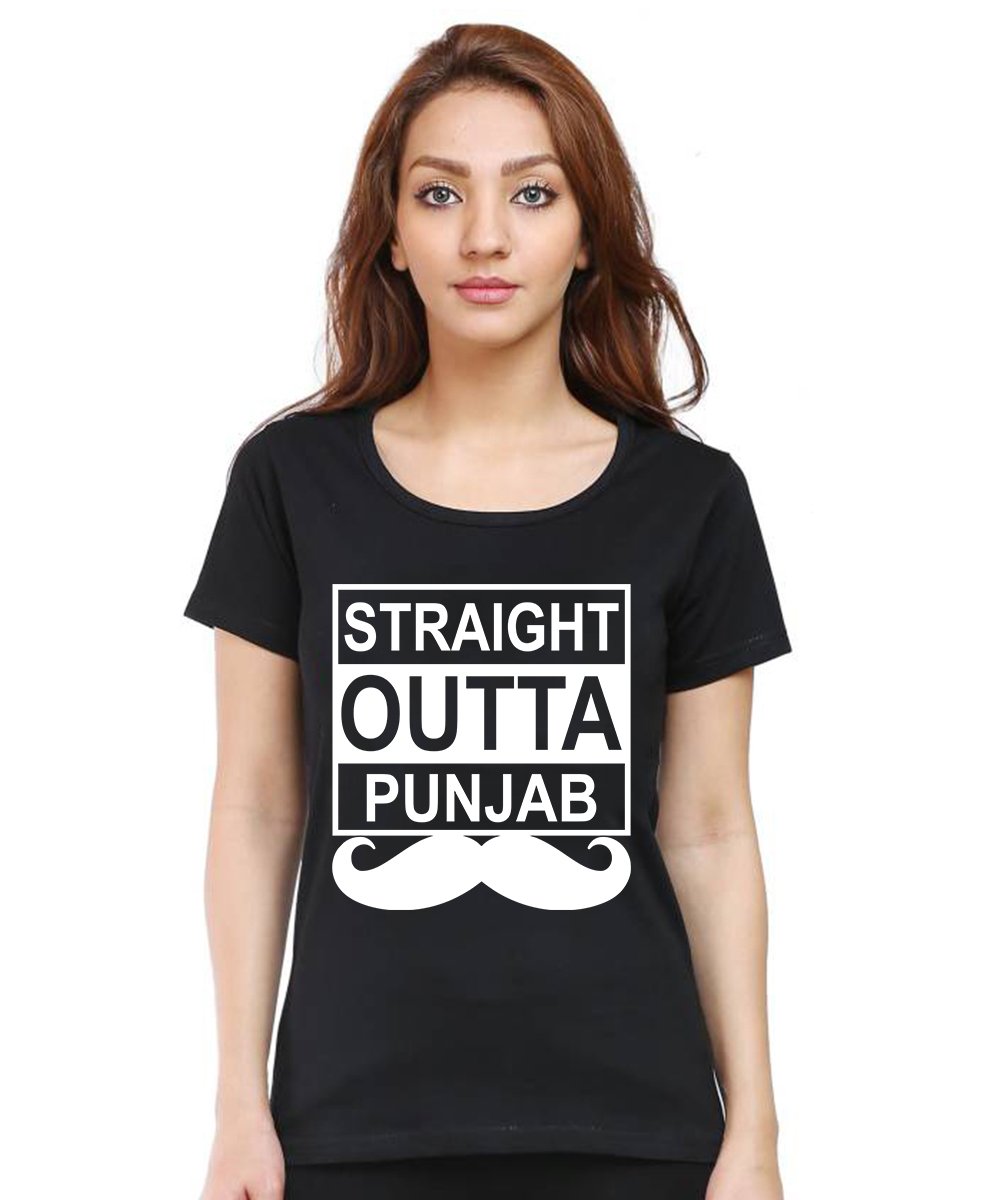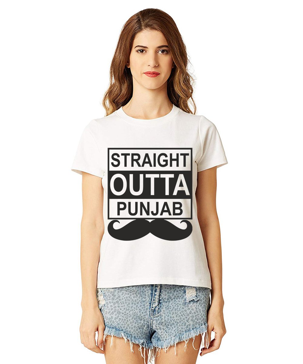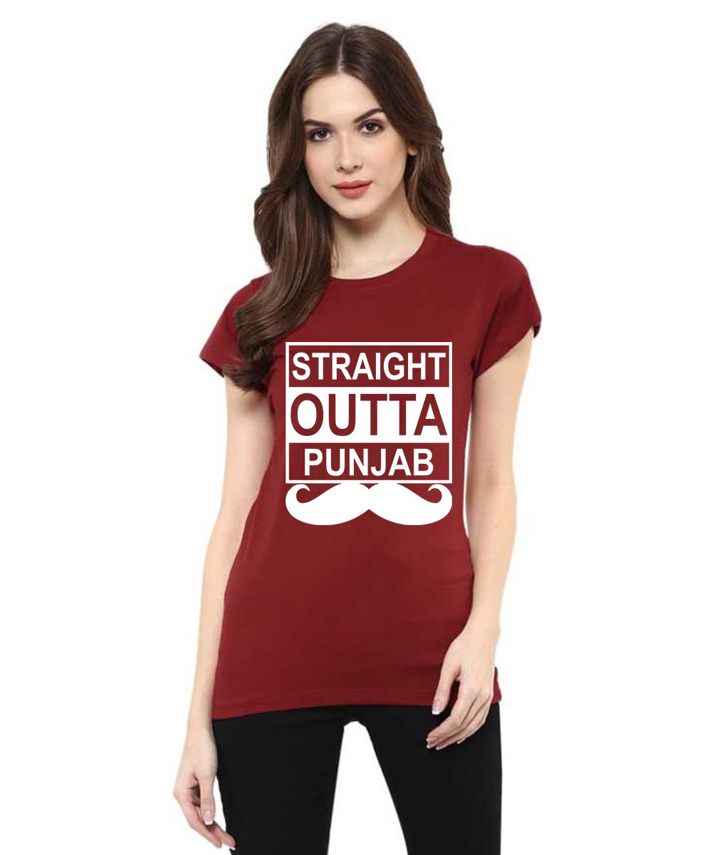 Caseria Women's Cotton Biowash Graphic Printed Half Sleeve T-Shirt - Straight Outta Punjab