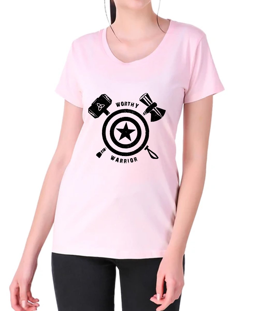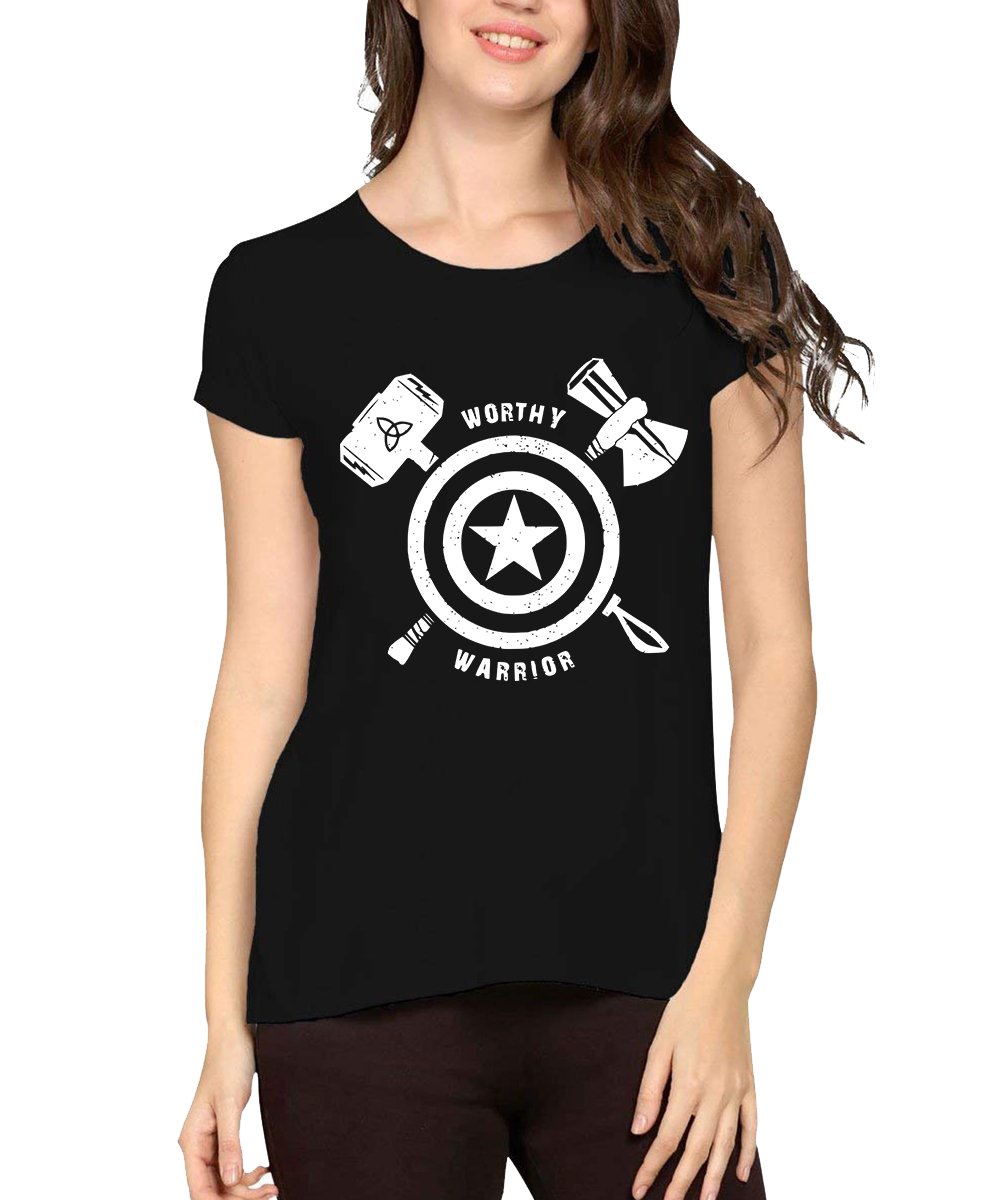 Caseria Women's Cotton Biowash Graphic Printed Half Sleeve T-Shirt - Worthy Warrior