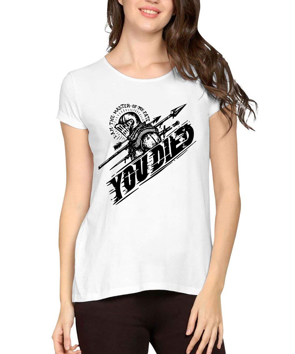 Caseria Women's Cotton Biowash Graphic Printed Half Sleeve T-Shirt - You Died